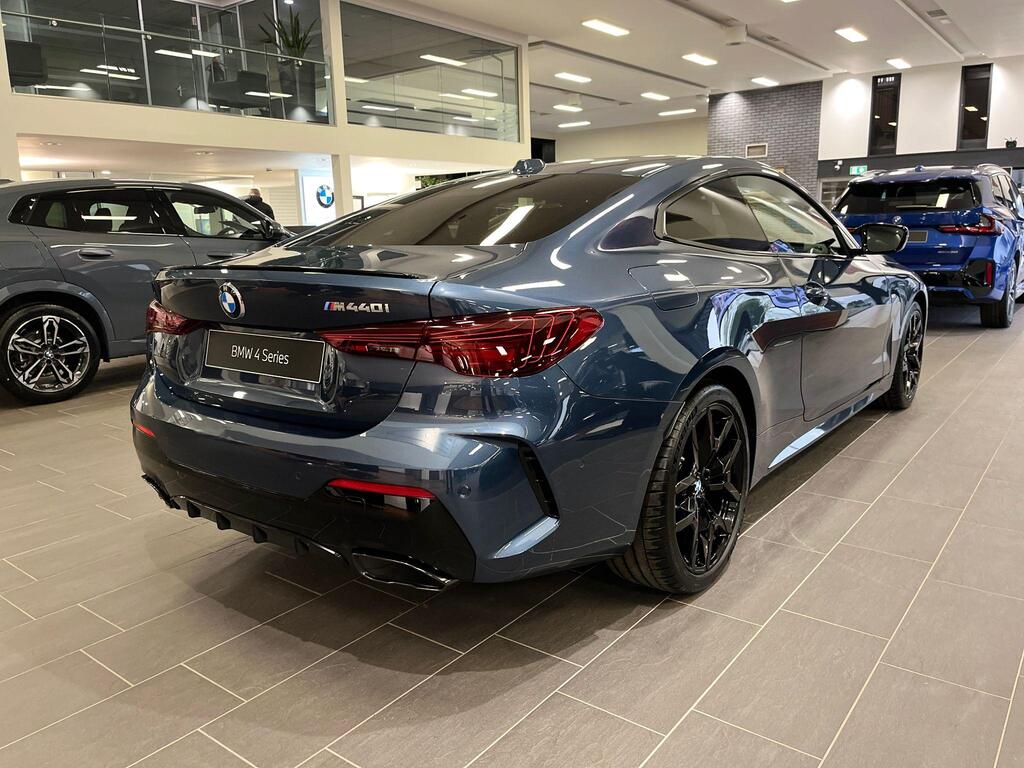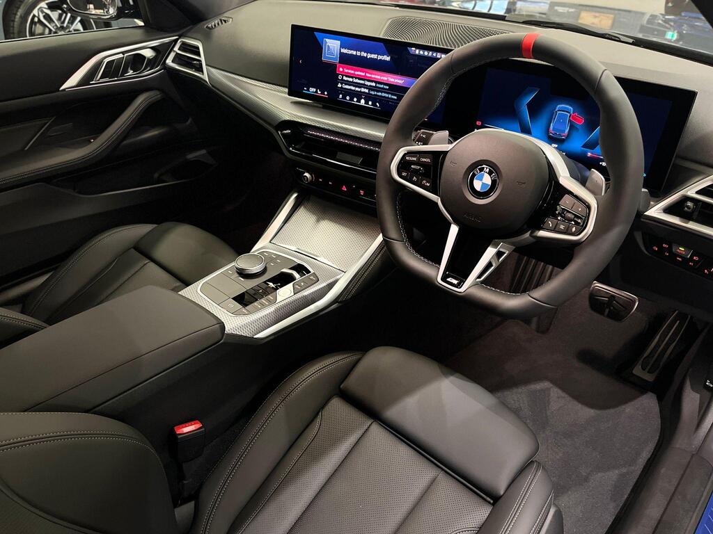 BMW 4 Series 3.0 M440i MHT Auto xDrive на 19-дюймовых легкосплавных дисках M Light Double Spoke Style цвета 995 M Jet Black с разноразмерными и спортивными шинами, пакет Comfort, передняя поясничная поддержка, помощник по управлению дальним светом, пакет M Sport Pro, рулевое колесо с подогревом, Active Guard Plus, сигнализация, круиз-контроль, сиденья с электроприводом и памятью положений, теплозащита — солнцезащитное остекление, подогрев передних сидений, помощь при парковке, розетки, спортивные сиденья — передние, широкоэкранный дисплей, солнцезащитное стекло, солнцезащитные козырьки с подсветкой, зеркальцами и держателем для билетов.