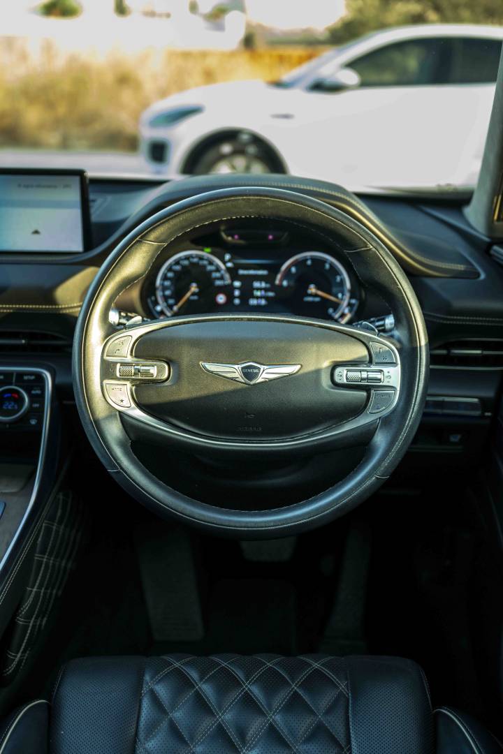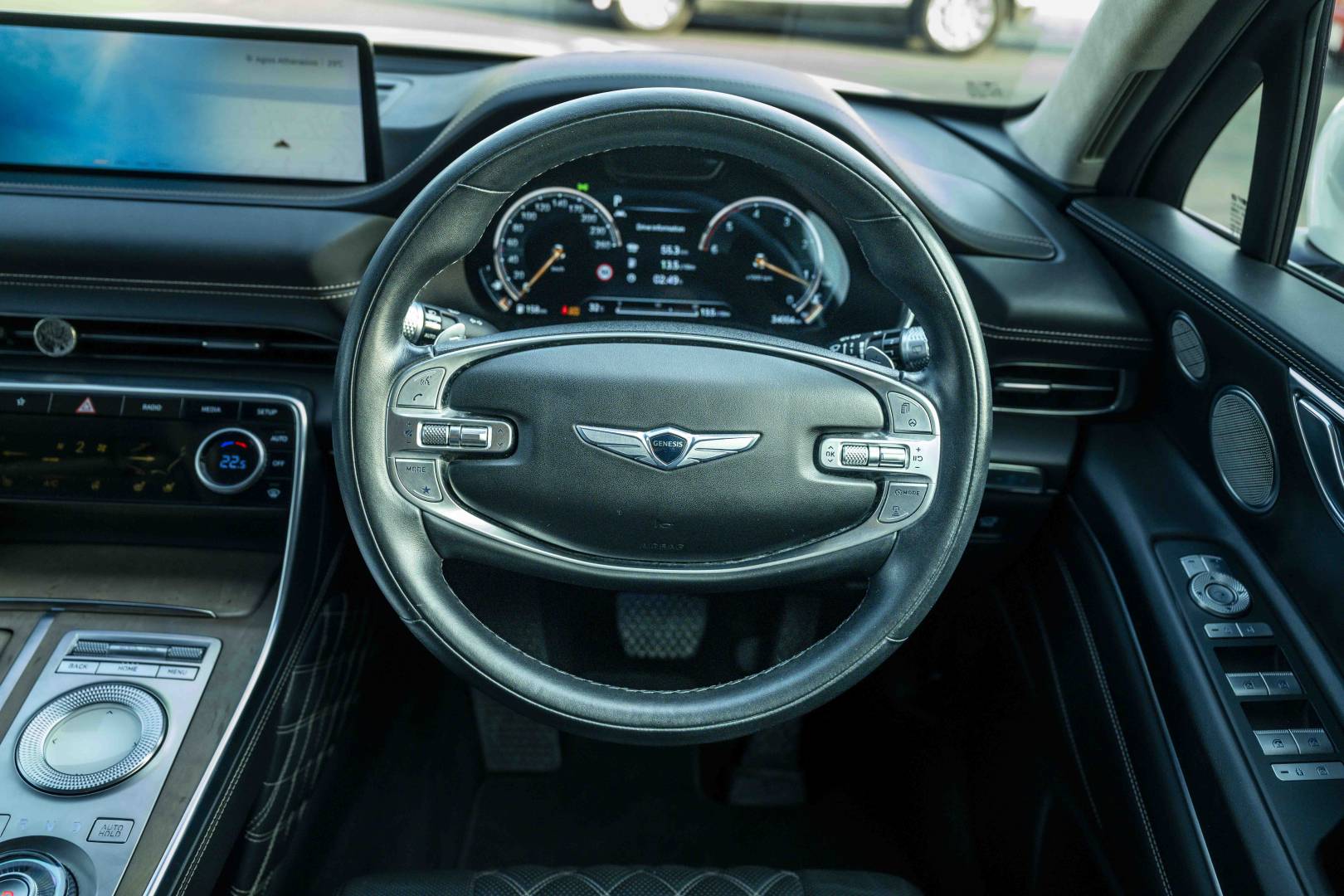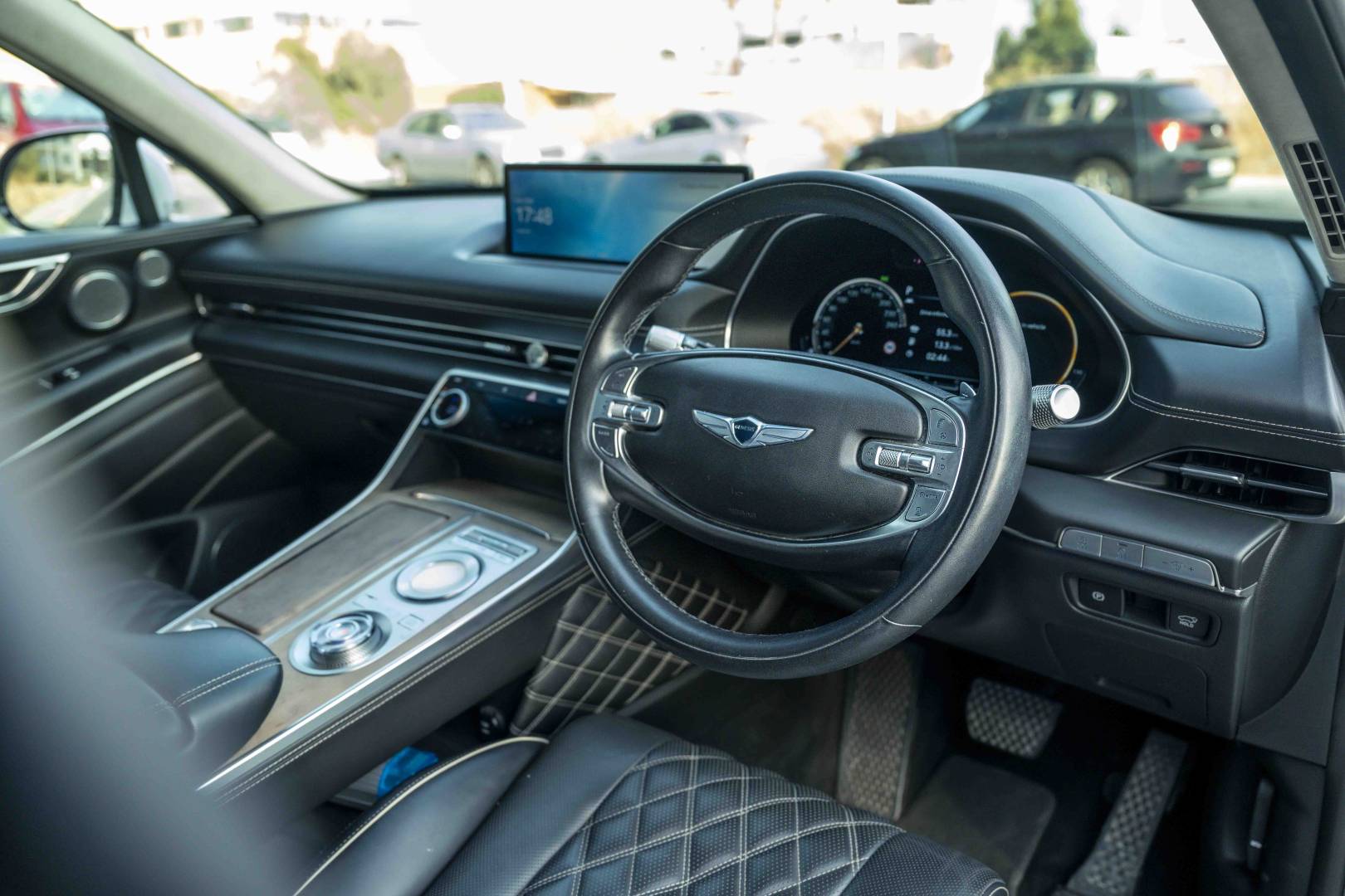 Genesis GV80 3.0 Premium Auto 4WD на 22-дюймовых легкосплавных дисках, передние и задние датчики парковки, система удержания полосы движения - Road Edge, камера заднего вида - динамические навигационные линии, интеллектуальный круиз-контроль с функцией Start-Stop, выбор режима движения, электрорегулировка передних сидений по 12 направлениям, подогрев передних сидений, подогрев рулевого колеса, кожаное рулевое колесо - кнопки управления, Apple CarPlay и Android Auto.