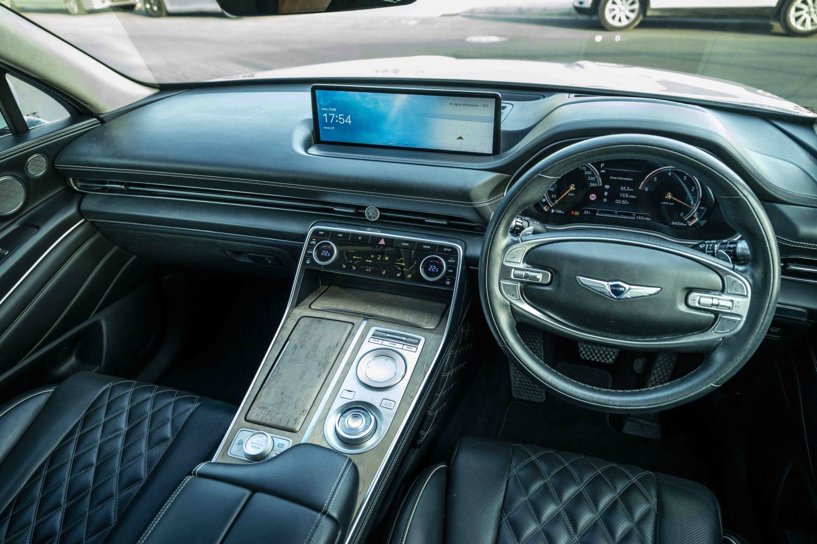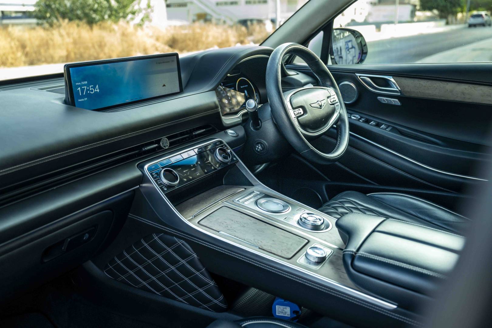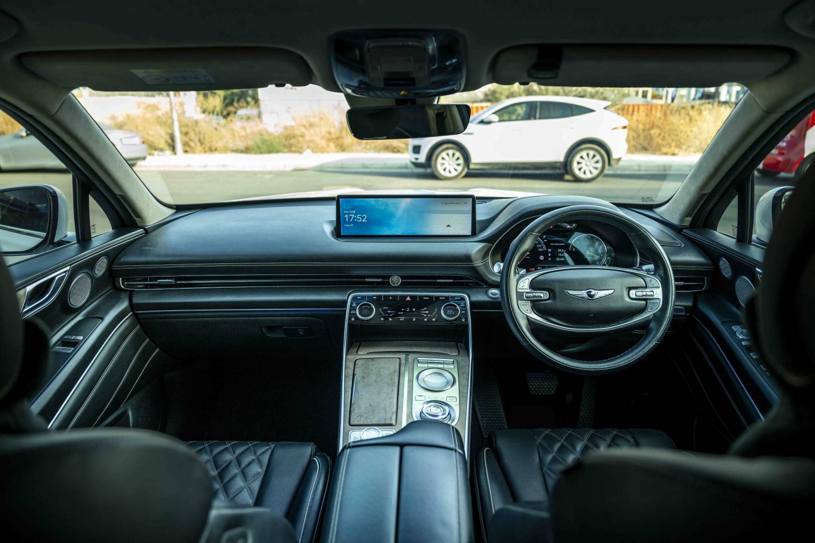 Genesis GV80 3.0 Premium Auto 4WD на 22-дюймовых легкосплавных дисках, передние и задние датчики парковки, система удержания полосы движения - Road Edge, камера заднего вида - динамические навигационные линии, интеллектуальный круиз-контроль с функцией Start-Stop, выбор режима движения, электрорегулировка передних сидений по 12 направлениям, подогрев передних сидений, подогрев рулевого колеса, кожаное рулевое колесо - кнопки управления, Apple CarPlay и Android Auto.