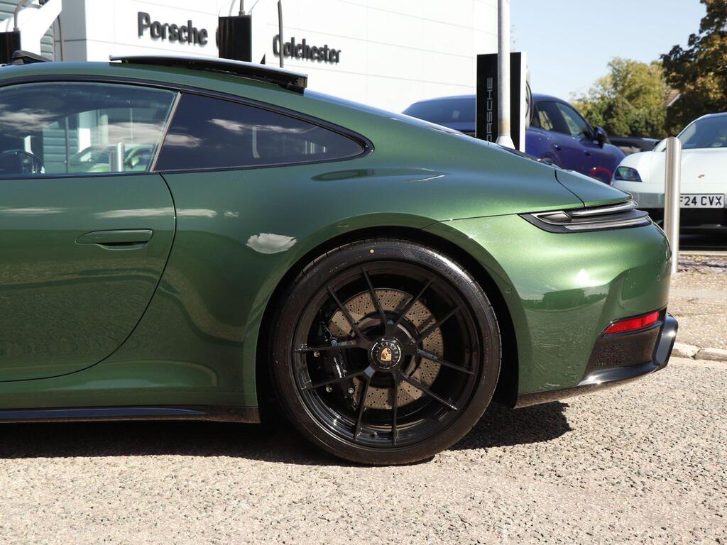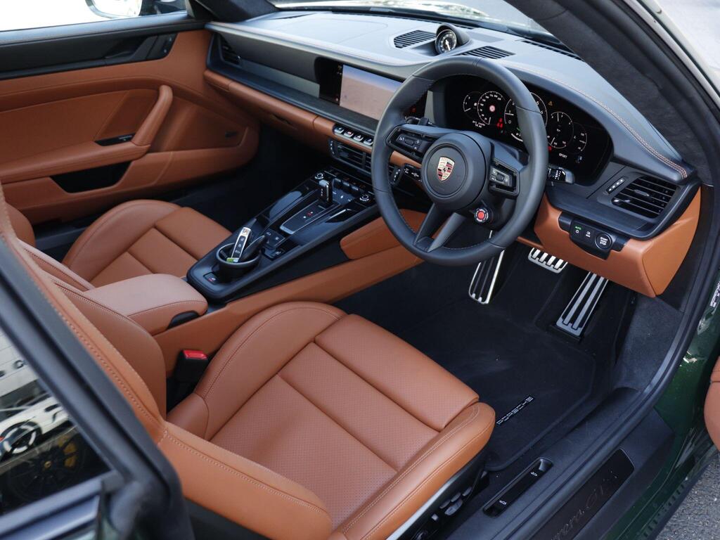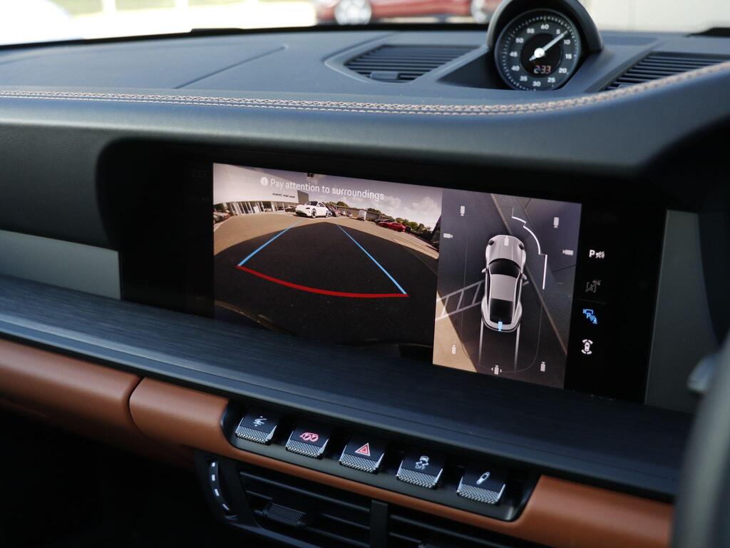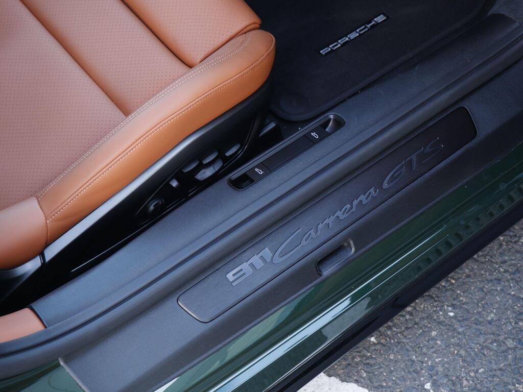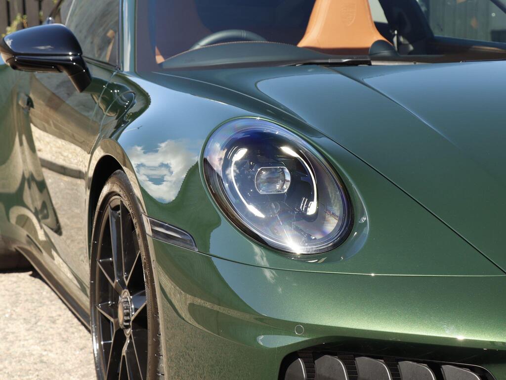 Porsche 911 3.6 Hybrid 992 Carrera GTS Panoramic Sunroof на 20-дюймовых передних и 21-дюймовых задних легкосплавных дисках - Carrera GTS, тормозные суппорты - черные глянцевые, система кругового обзора с активной поддержкой парковки, светодиодные фонари освещения дверей с логотипом Porsche, система помощи при смене полосы движения, подогрев спортивного рулевого колеса GT, адаптивные спортивные сиденья Plus - электрорегулировка в 18 направлениях с пакетом памяти.