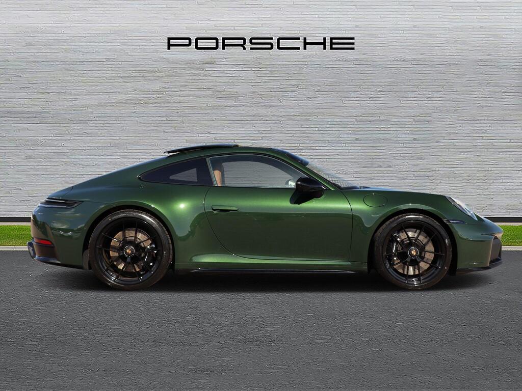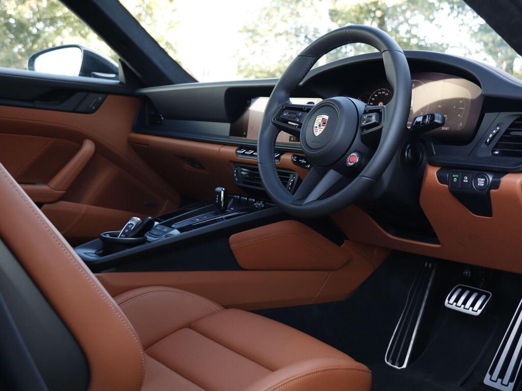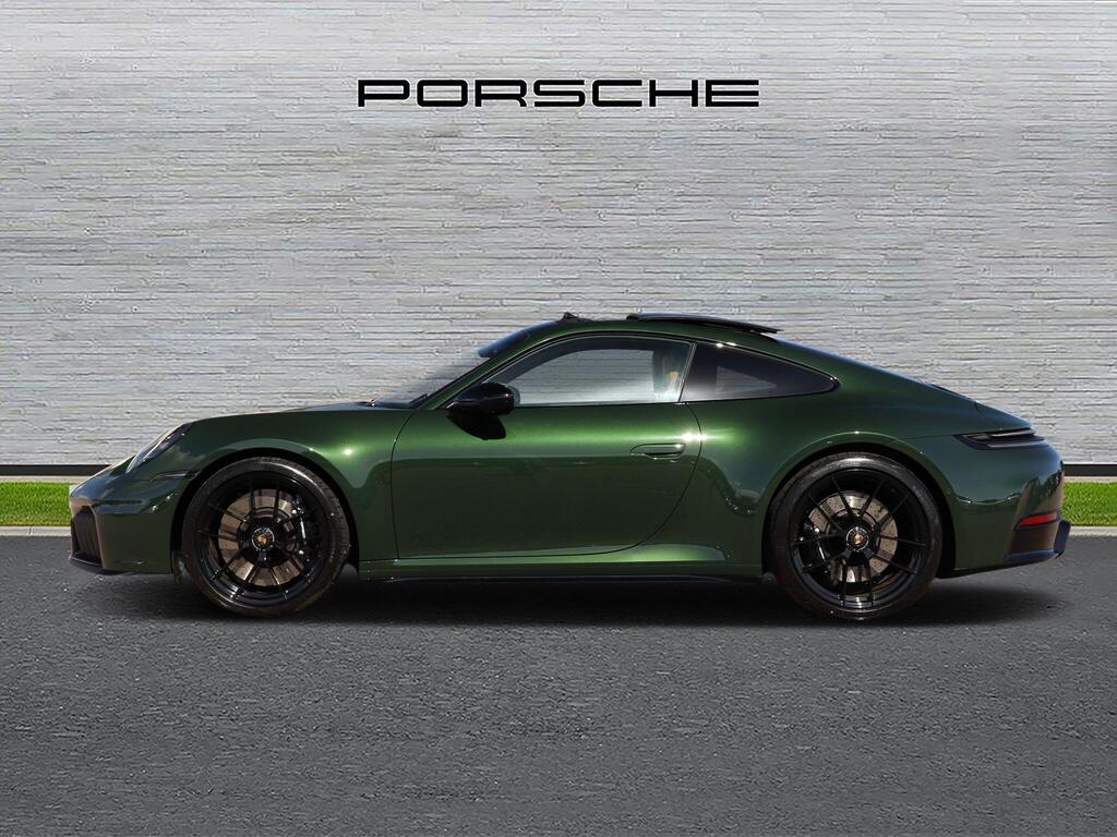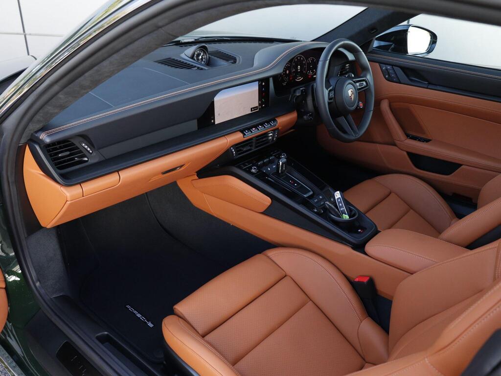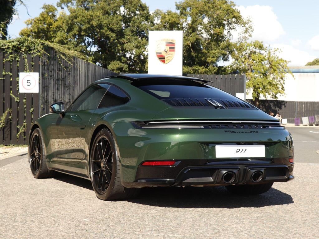 Porsche 911 3.6 Hybrid 992 Carrera GTS Panoramic Sunroof на 20-дюймовых передних и 21-дюймовых задних легкосплавных дисках - Carrera GTS, тормозные суппорты - черные глянцевые, система кругового обзора с активной поддержкой парковки, светодиодные фонари освещения дверей с логотипом Porsche, система помощи при смене полосы движения, подогрев спортивного рулевого колеса GT, адаптивные спортивные сиденья Plus - электрорегулировка в 18 направлениях с пакетом памяти.