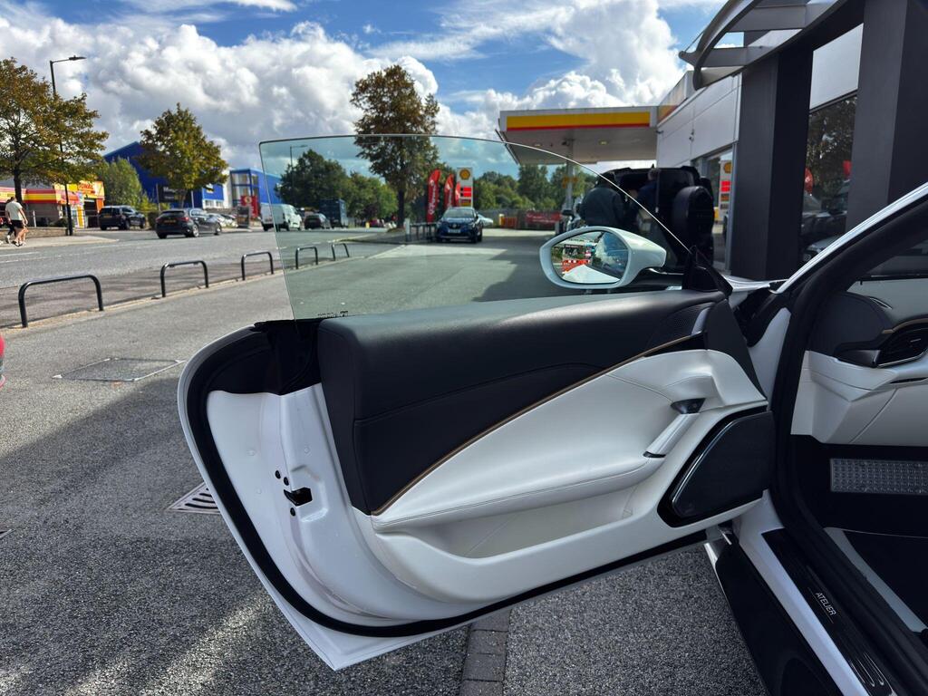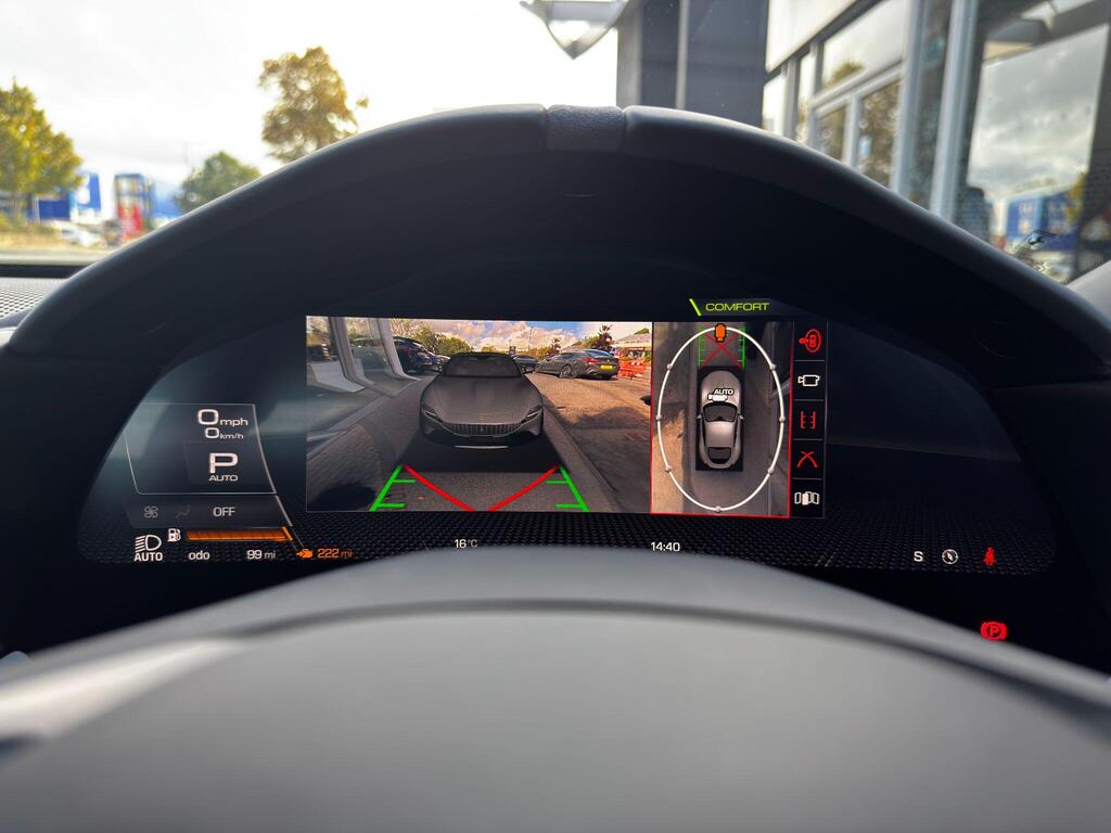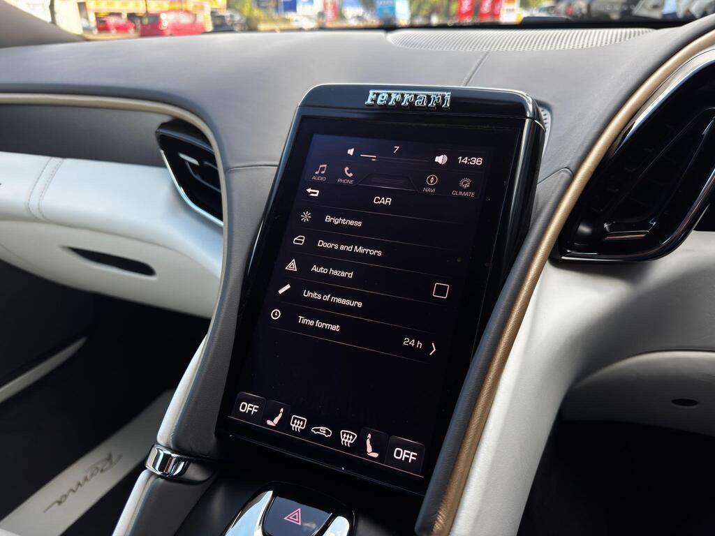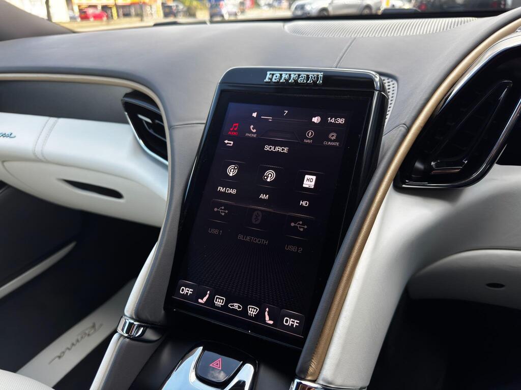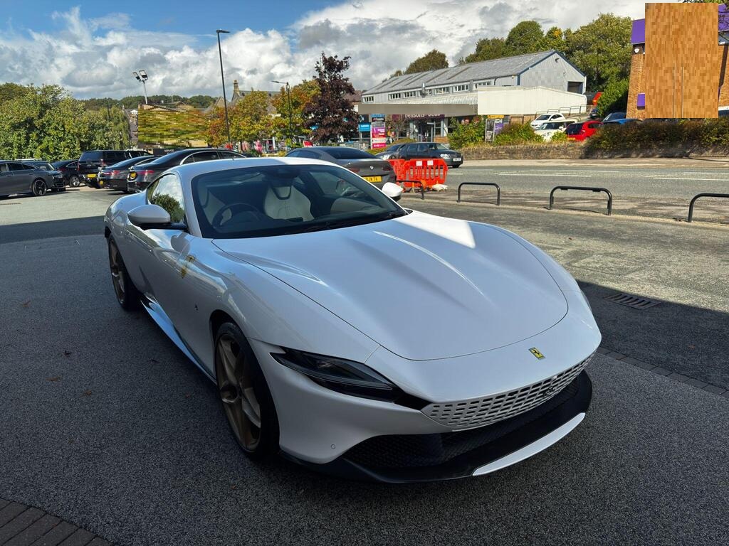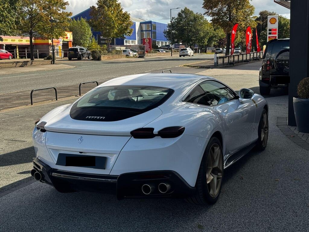 Ferrari Roma 3.8 V8 F1 DCT на 20-дюймовых легкосплавных дисках, карбон-керамическая тормозная система CCM3, электропривод передних сидений с функцией памяти настроек водителя, подогрев передних сидений, система контроля тяги F1-Trac, Apple CarPlay, камера заднего вида, электропривод рулевой колонки, цифровой дисплей зоны водителя, подрулевые переключатели из углеродного волокна, электроскладывающиеся боковые зеркала, Bluetooth, спутниковая навигация, радио DAB, двухзонный климат-контроль. Специальные пожелания (перламутровая краска Bianco Stardust, аэрографические щитки Scuderia, кожаный салон Bianco/Charco, окрашенные диски Satin Gold, эмблемы Ferrari Satin, персонализированные карбоновые накладки на пороги Atelier, золотая строчка, специальная), задний диффузор из углеродного волокна, накладка на днище дверей из углеродного волокна, двухцветный кожаный салон, мощная аудиосистема JBL Hi-Fi, камера кругового обзора, рулевое колесо по запросу (угольное), спортивные выхлопные трубы, передний спойлер из углеродного волокна, система Magneride Dual Mode Подвеска, рулевое колесо из углеродного волокна со светодиодами, черные тормозные суппорты, вставки из угольно-кожи в салоне, накладки на пороги из углеродного волокна, кожаные спинки сидений, складные спинки задних сидений, электрохромное зеркало заднего вида, коврики с вышитым логотипом, вышитая золотая гарцующая лошадь на подголовнике, теплоизоляционное лобовое стекло, алюминиевая подставка для ног, колпаки колес из углеродного волокна.