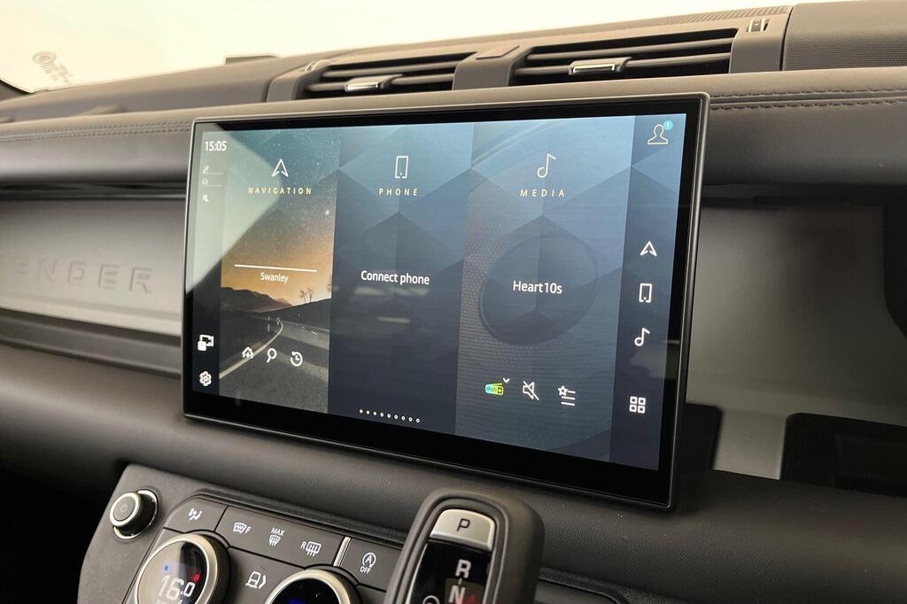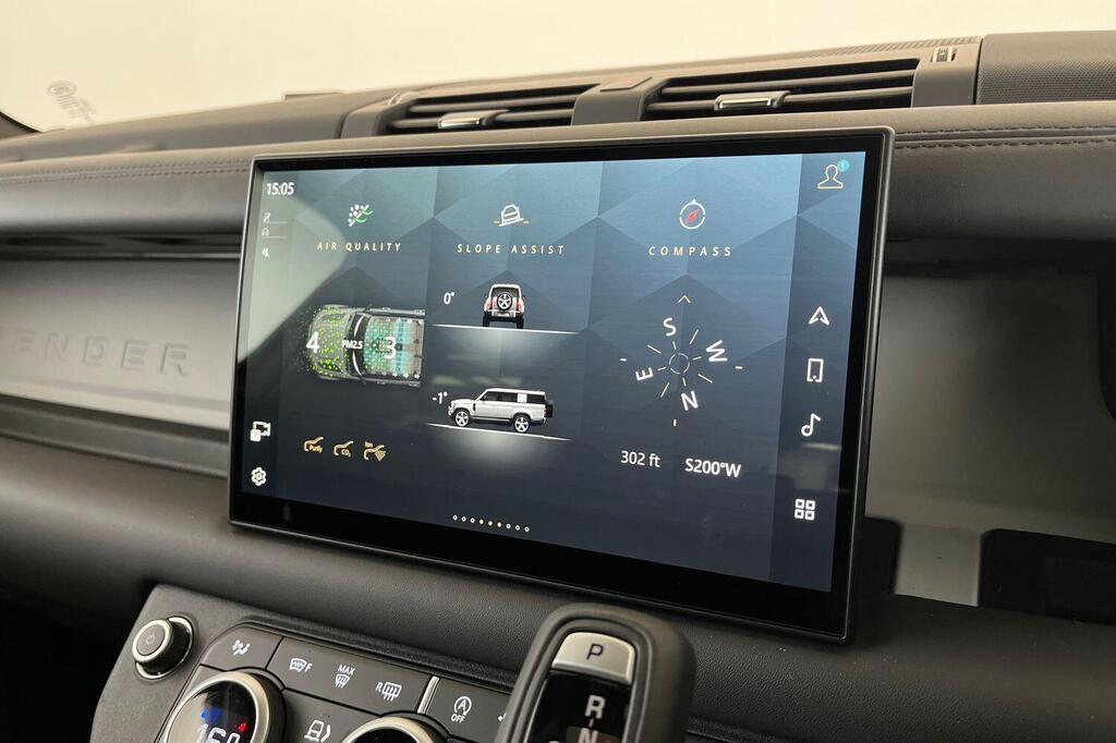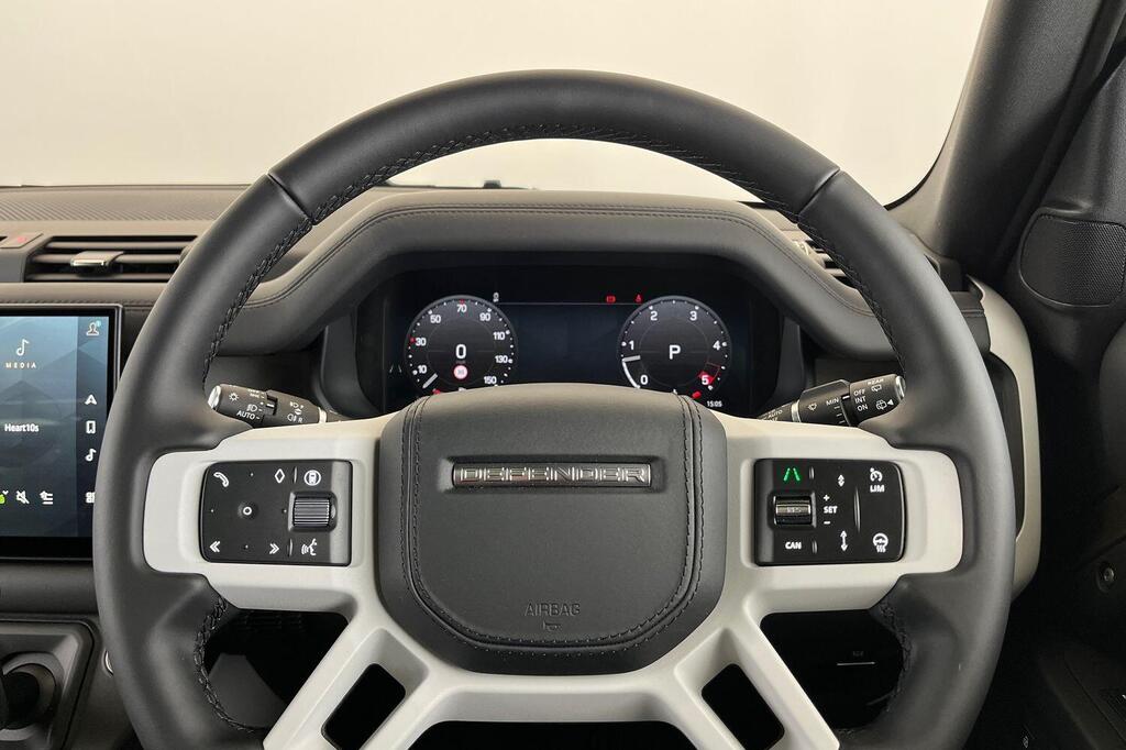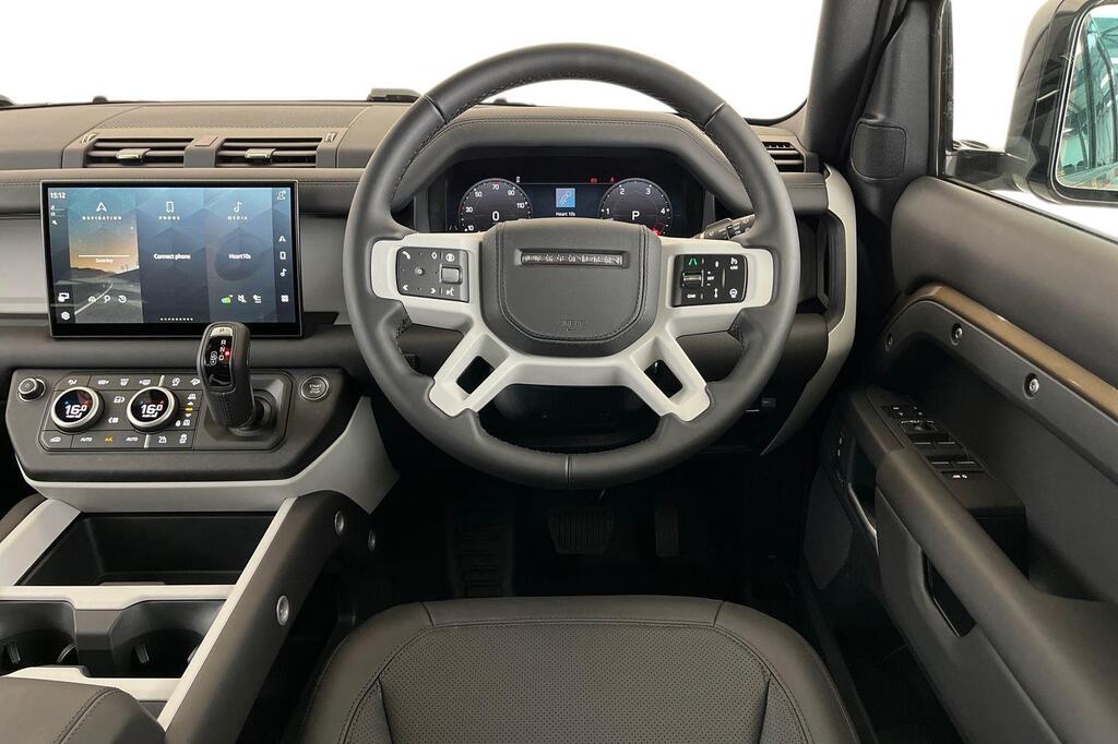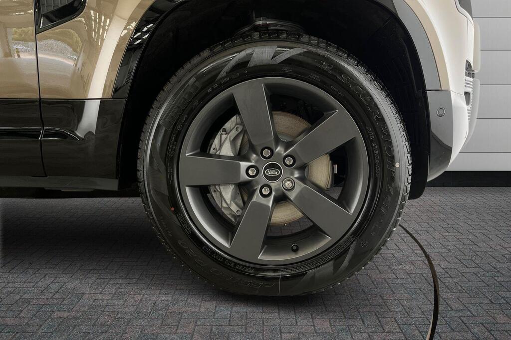 Land Rover Defender 130 3.0 D350 MHEV X-Dynamic HSE Panoramic Sunroof на 20-дюймовых легкосплавных дисках — Style 5098 — 5 спиц — темно-серый сатиновый, передние сиденья с 14-позиционной электрорегулировкой, подогревом и вентиляцией, памятью настроек и 4-позиционными ручными подголовниками, 20-дюймовое полноразмерное запасное колесо, система помощи при парковке на 360 градусов, 3D-камера кругового обзора, Apple CarPlay, Android Auto, система контроля слепых зон, электронная пневматическая подвеска, крепление ISOFIX на переднем пассажирском сиденье, подогрев руля.