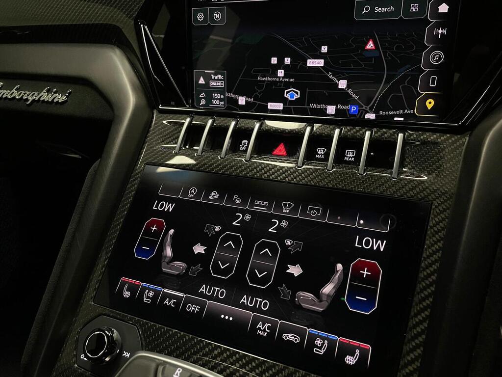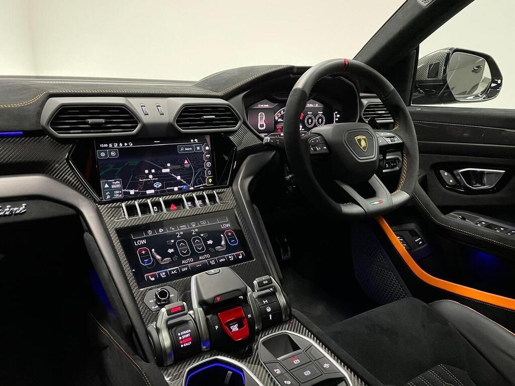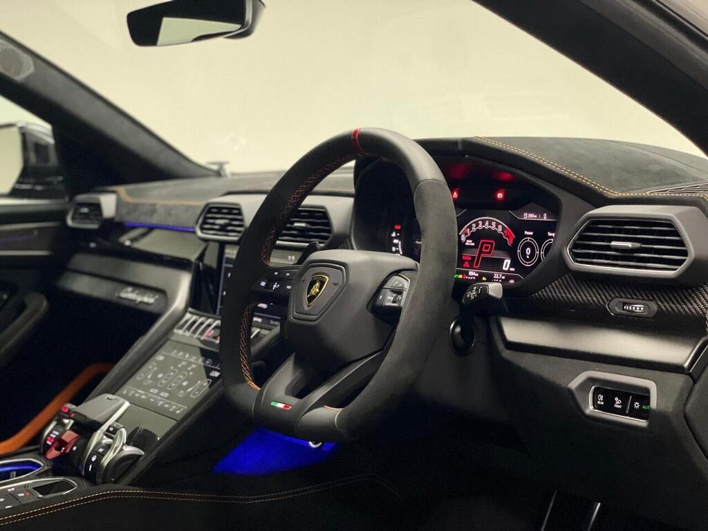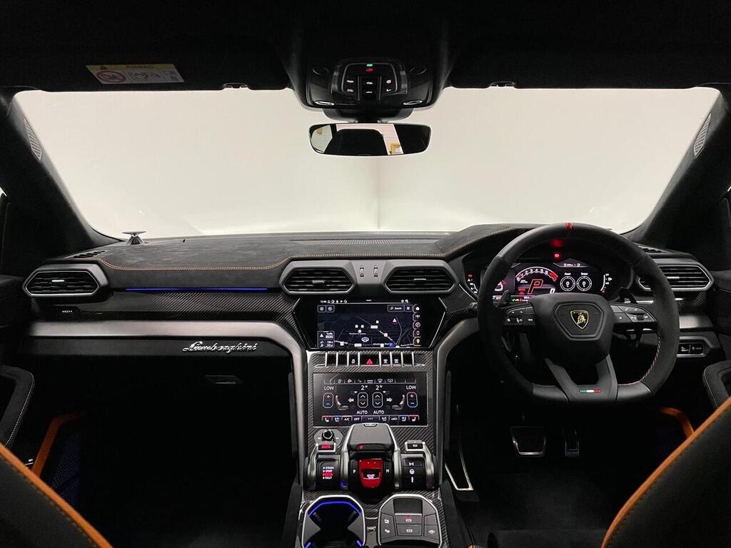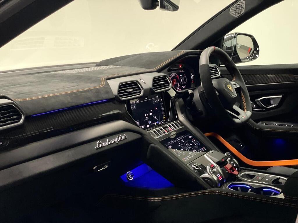 Lamborghini Urus 4.0 V8 BiTurbo Performante Panoramic Sunroof на 22-дюймовых легкосплавных дисках Hellanthus Silver Rims, оранжевые тормозные суппорты, карбоновые бамперы спереди и сзади, автоматическая двухзонная система кондиционирования воздуха со встроенным угольным фильтром, доводчиками, спортивное рулевое колесо с обивкой из алькантары и кожи с темной хромированной окантовкой и красными маркерами, интерфейс для смартфона Lamborghini — Apple CarPlay и Android Auto, навигационная система, полный пакет отделки экстерьера карбоном — Ad Personam — матовый. Доводчиками