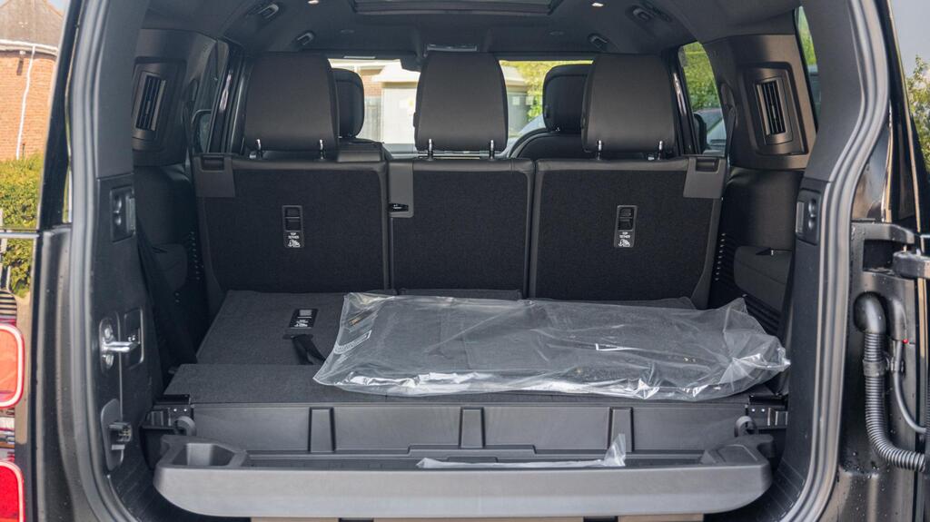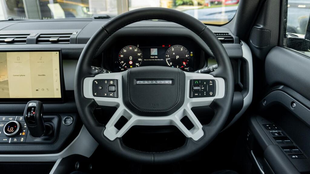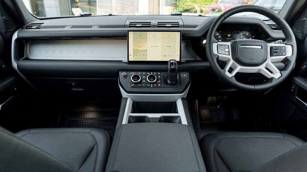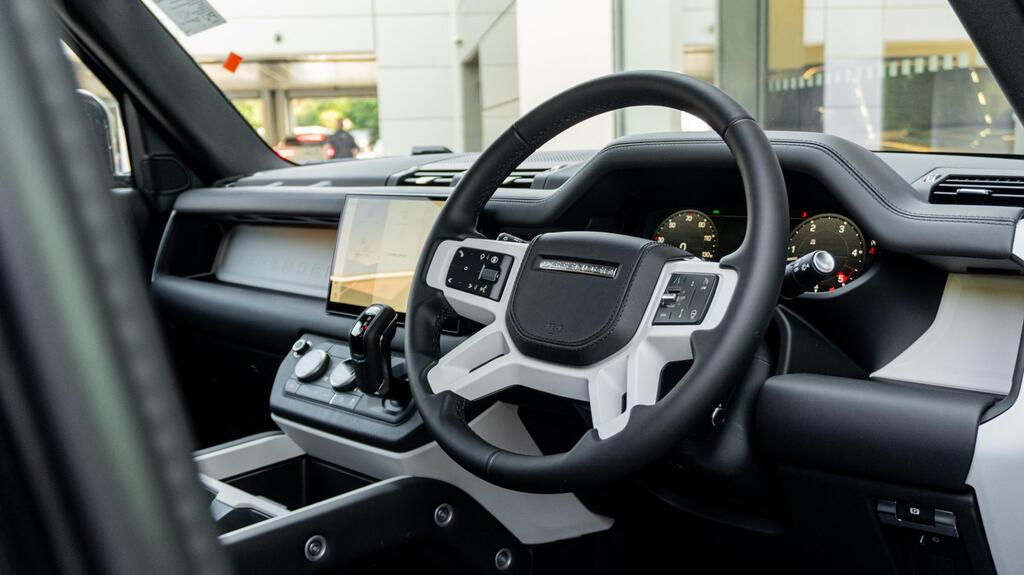 Land Rover Defender 130 3.0 D350 MHEV X-Dynamic HSE Auto Panoramic Roof на 20-дюймовых сиденья Style 5098 Satin Dark Grey, передниехсиденья с электроприводом, памятью настроек в 14 направлениях, подогревом и вентиляцией, подголовники с ручным управлением в 4 направлениях, 3D-камера кругового обзора, система помощи при парковке на 360°, адаптивный круиз-контроль, Android Auto™, Apple CarPlay®, пакет для холодного климата, крепление ISOFIX на переднем пассажирском сиденье, электрический омыватель фар, подогрев форсунок омывателя, бесключевой доступ, система удержания полосы движения, солнцезащитные стекла, пакет Online с тарифным планом, система объемного звучания Meridian™, Secure Tracker Pro, беспроводная зарядка устройств.