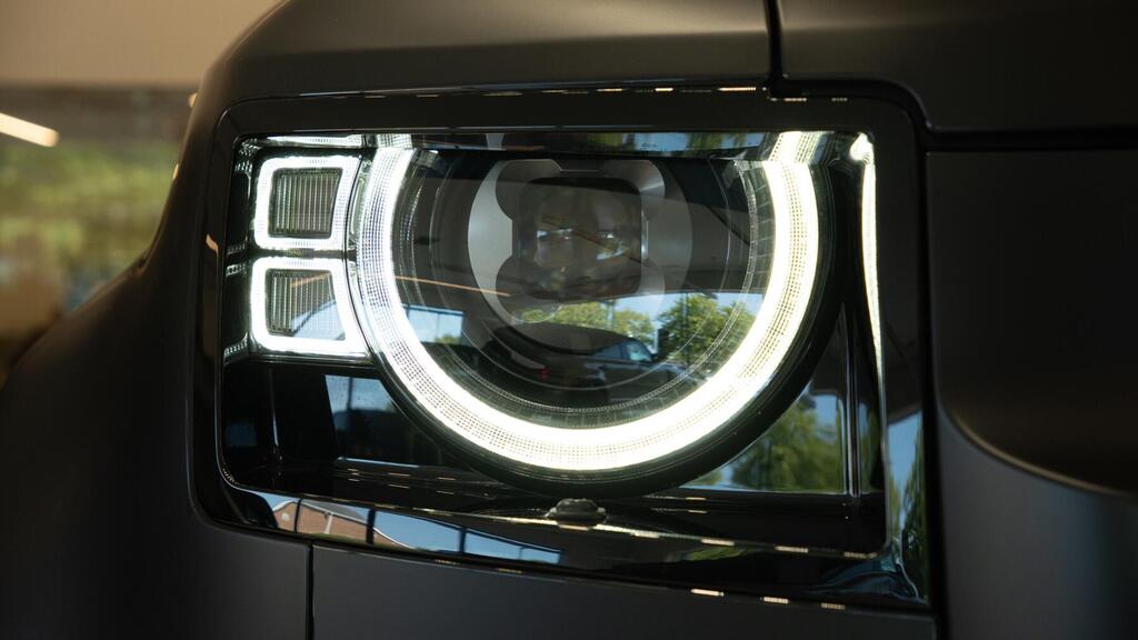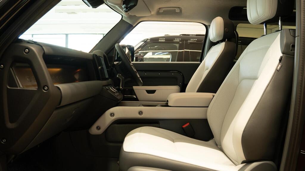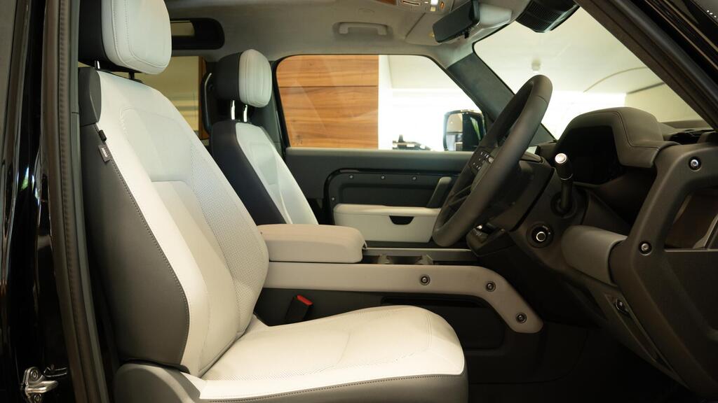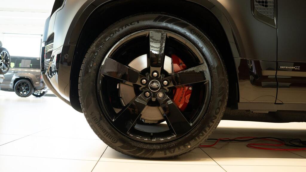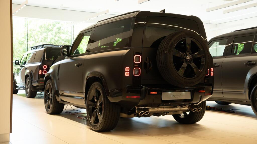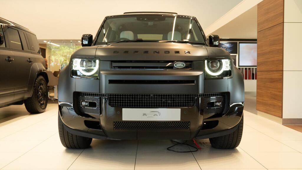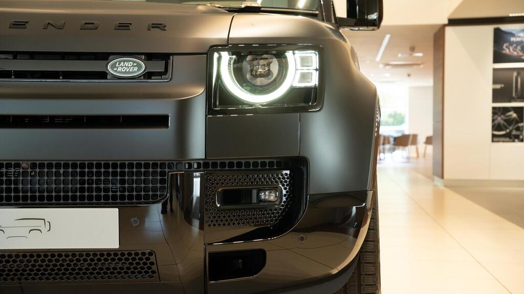 Land Rover Defender 90 5.0 P425 V8 X Auto Panoramic Roof на 22-дюймовых дисках Style 5098 Gloss Black, передние сиденья водителя с электроприводом, подогревом и вентиляцией, функцией памяти, 4-позиционные подголовники с ручным управлением, выдвижной фаркоп с электроприводом, система переключения передач Resist, система помощи при парковке на 360°, 3D-камера кругового обзора, адаптивный круиз-контроль, система Adaptive Dynamics, Android Auto™, Apple CarPlay®, система мониторинга слепых зон, проекционный дисплей, бесключевой доступ, система удержания полосы движения, система объемного звучания Meridian™, пакет Online с тарифным планом, защитное стекло, Secure Tracker Pro.
