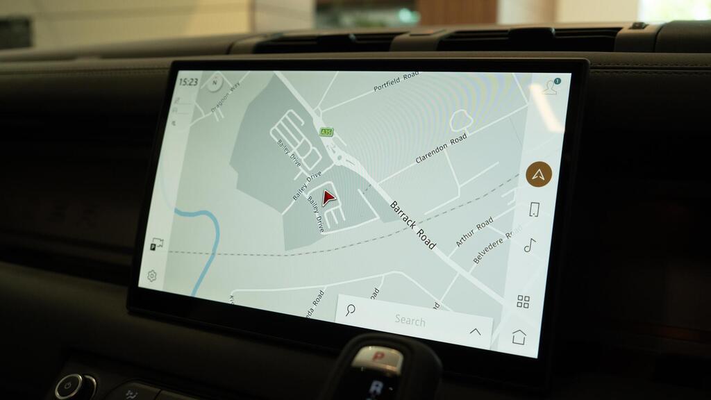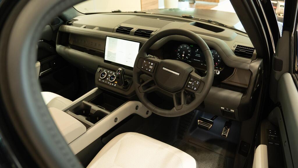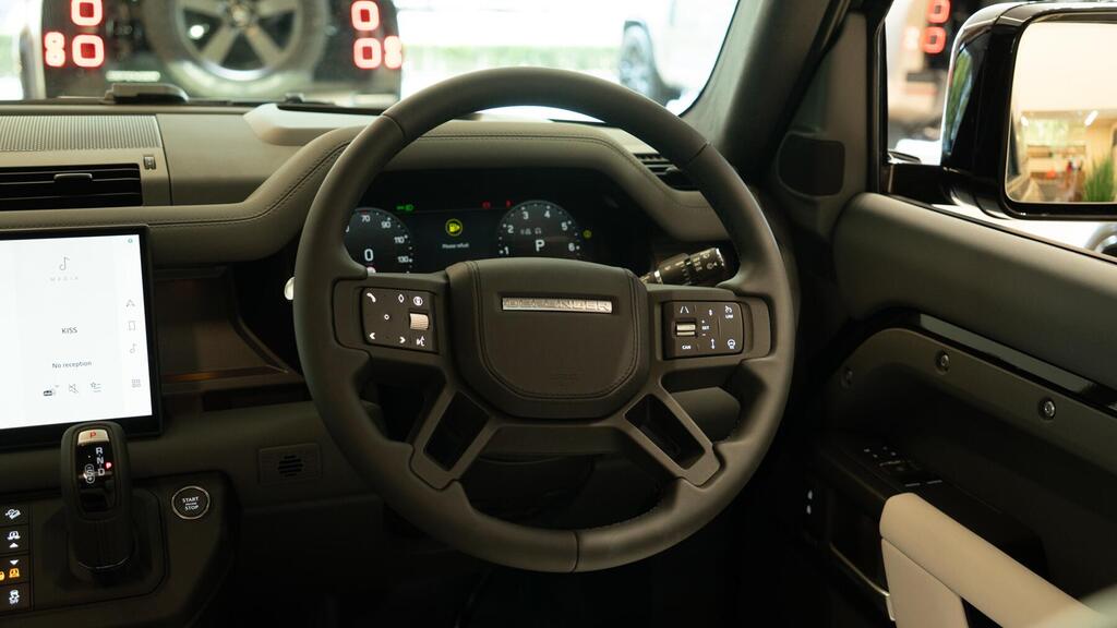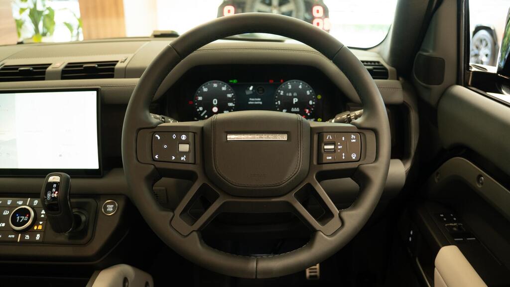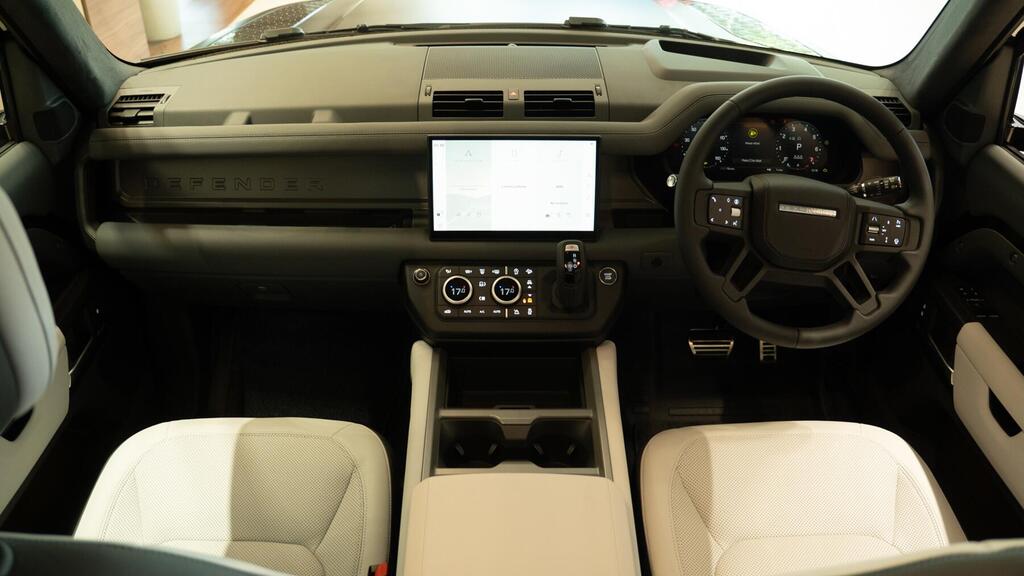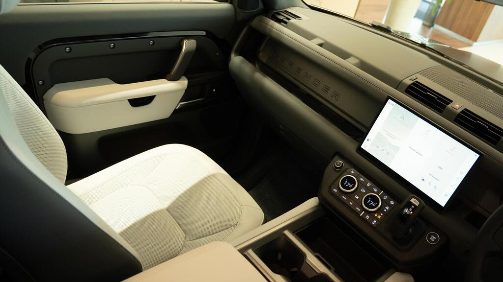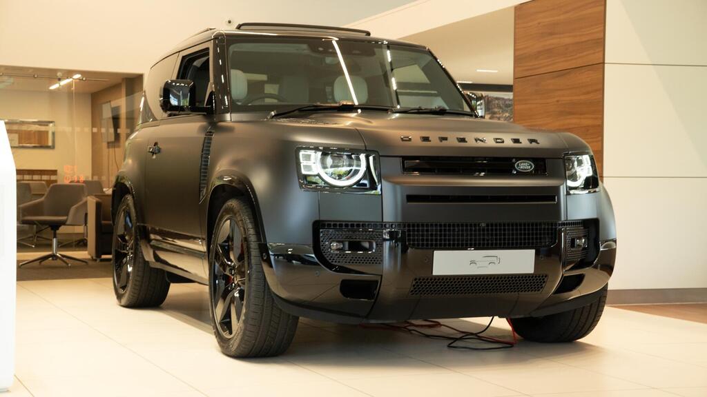 Land Rover Defender 90 5.0 P425 V8 X Auto Panoramic Roof на 22-дюймовых дисках Style 5098 Gloss Black, передние сиденья водителя с электроприводом, подогревом и вентиляцией, функцией памяти, 4-позиционные подголовники с ручным управлением, выдвижной фаркоп с электроприводом, система переключения передач Resist, система помощи при парковке на 360°, 3D-камера кругового обзора, адаптивный круиз-контроль, система Adaptive Dynamics, Android Auto™, Apple CarPlay®, система мониторинга слепых зон, проекционный дисплей, бесключевой доступ, система удержания полосы движения, система объемного звучания Meridian™, пакет Online с тарифным планом, защитное стекло, Secure Tracker Pro.