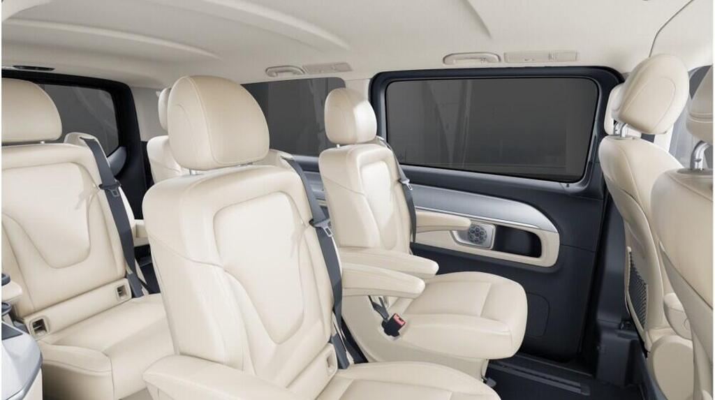 Mercedes-Benz V Class 2.0 V300d Exclusive G-Tronic+ 7 Seat, Extra Long на 19-дюймовых легкосплавных дисках с 5 сдвоенными спицами, окрашенные в черный цвет с глянцевой отделкой.Окна: теплоизоляционные стекла по всему периметру, спортивный стиль кузова, система мониторинга слепых зон, круиз-контроль, система распознавания дорожных знаков, система контроля давления в шинах, аудиосистема Burmester Surround Sound, интеграция со смартфоном, включая Apple CarPlay и Android Auto, беспроводная зарядка для мобильных устройств спереди, удобная система закрытия багажника, многофункциональное рулевое колесо с 3 спицами, кожаная отделка с сенсорным управлением, регулируемое по наклону и высоте, управление аудиосистемой и настройками бортовой системы, система помощи при экстренном торможении, система удержания полосы движения, активная блокировка сдвижной двери, система помощи при боковом ветре, пакет систем помощи водителю, пакет парковочных услуг, включающий активную систему помощи при парковке и камеру 360 градусов, система помощи при боковом ветре.