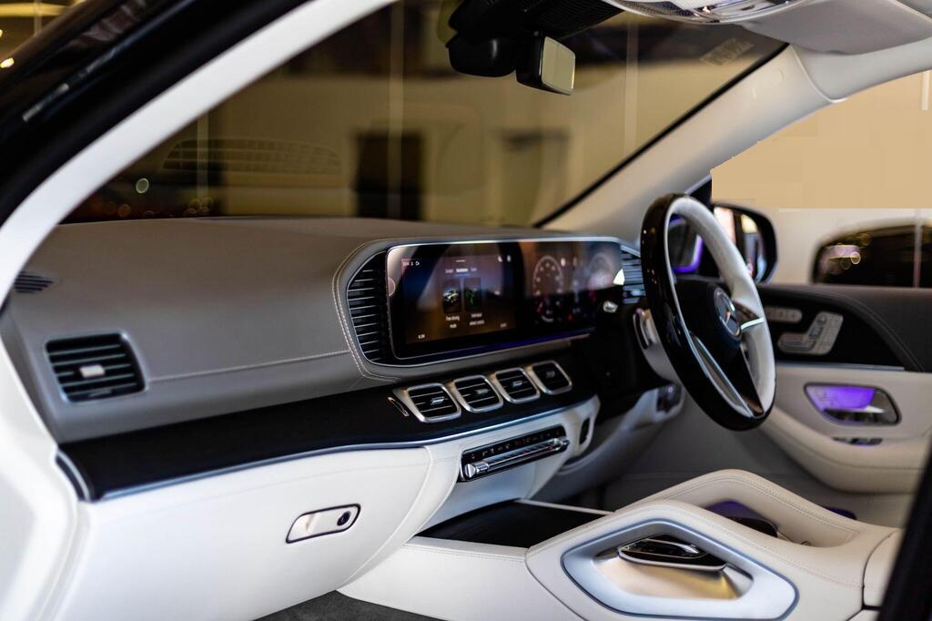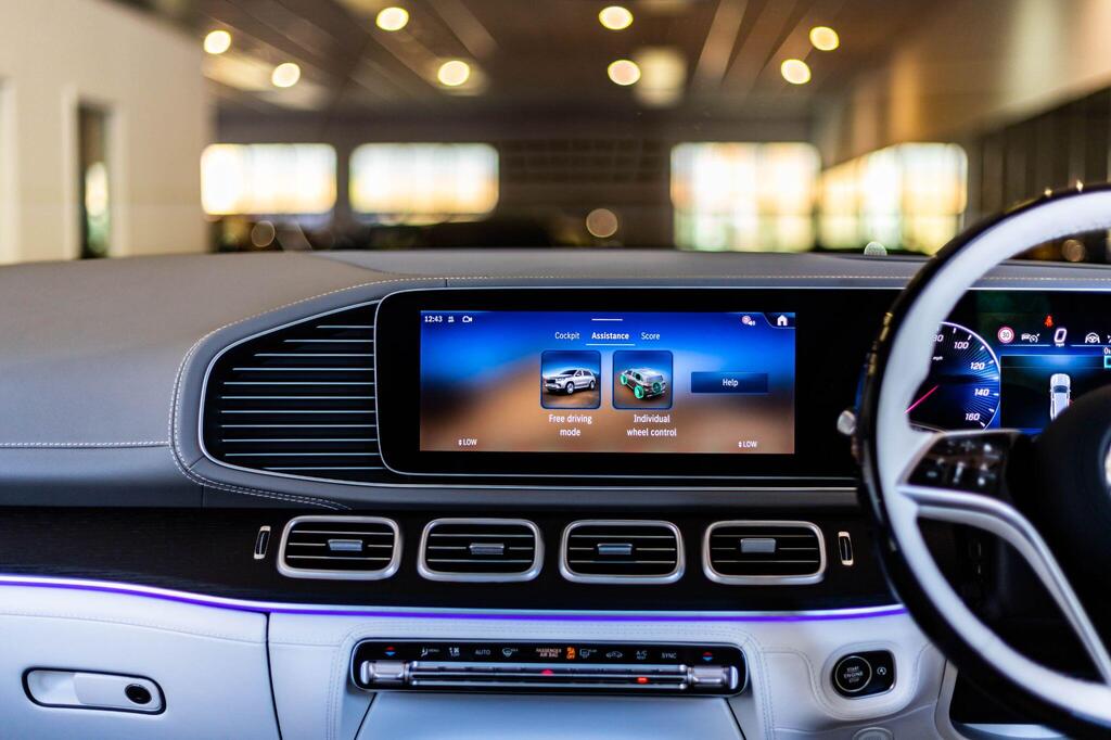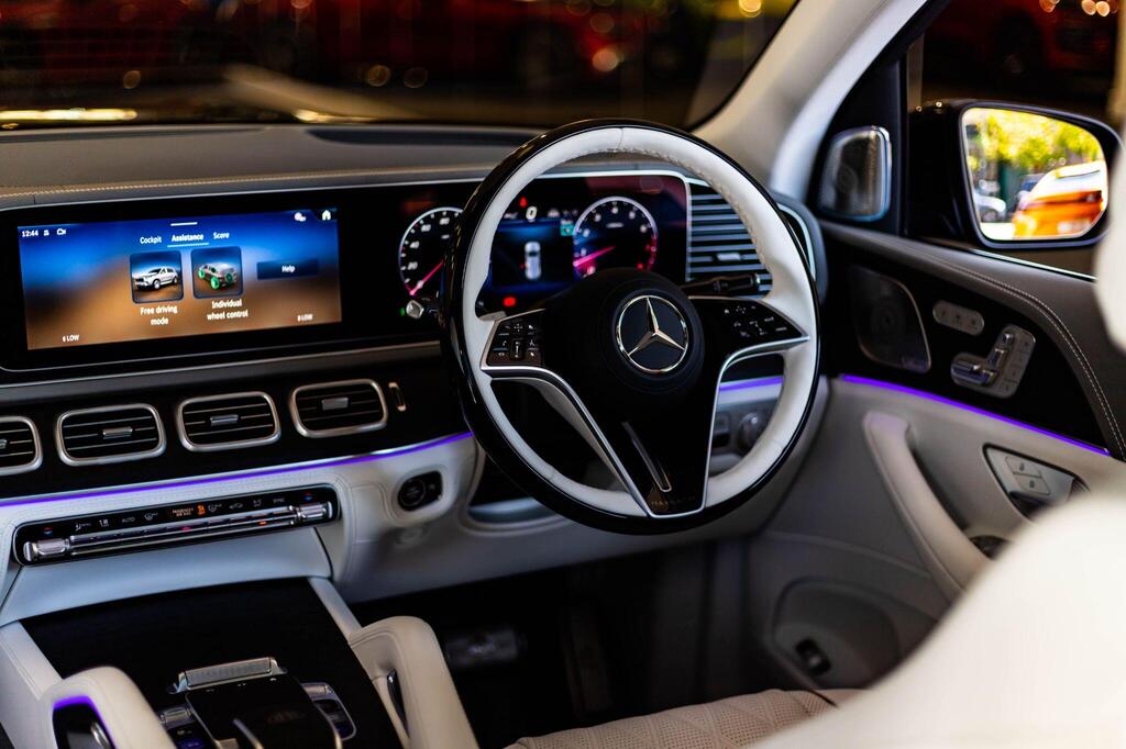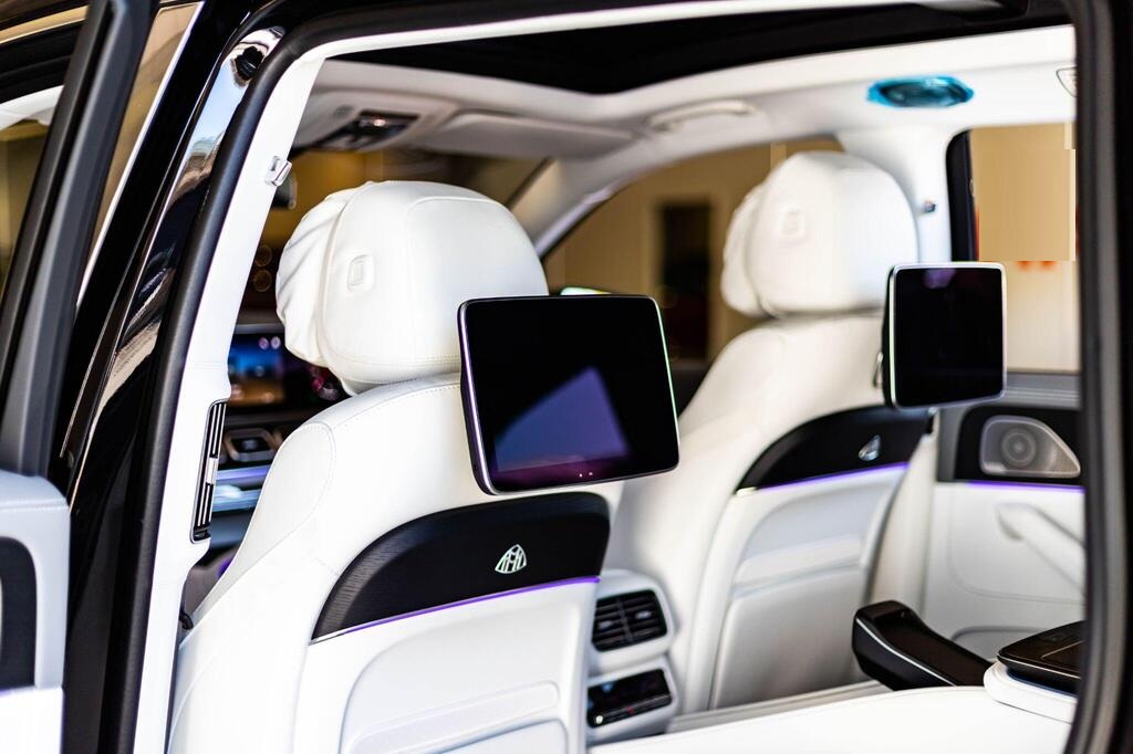 Mercedes-Benz Maybach GLS 4.0 GLS600h V8 MHEV First Class G-Tronic 4MATIC Panoramic Sunroof на 23-дюймовых легкосплавных дисках Maybach, активная система помощи при парковке, включая PARKTRONIC и камеру 360, подогрев сидений водителя и переднего пассажира, передние сиденья — мультиконтурные с функцией массажа, задние сиденья — второй ряд — с климат-контролем, задние сиденья — второй ряд — мультиконтурные с функцией массажа, рулевое колесо — многофункциональное с отделкой кожей и деревом, рулевое колесо — с подогревом, круиз-контроль SPEEDTRONIC, индикатор техобслуживания ASSYST, система помощи при дальнем свете — автоматическое включение фар. Мультимедиа MBUX, аудиосистема B&O, бесключевой доступ.