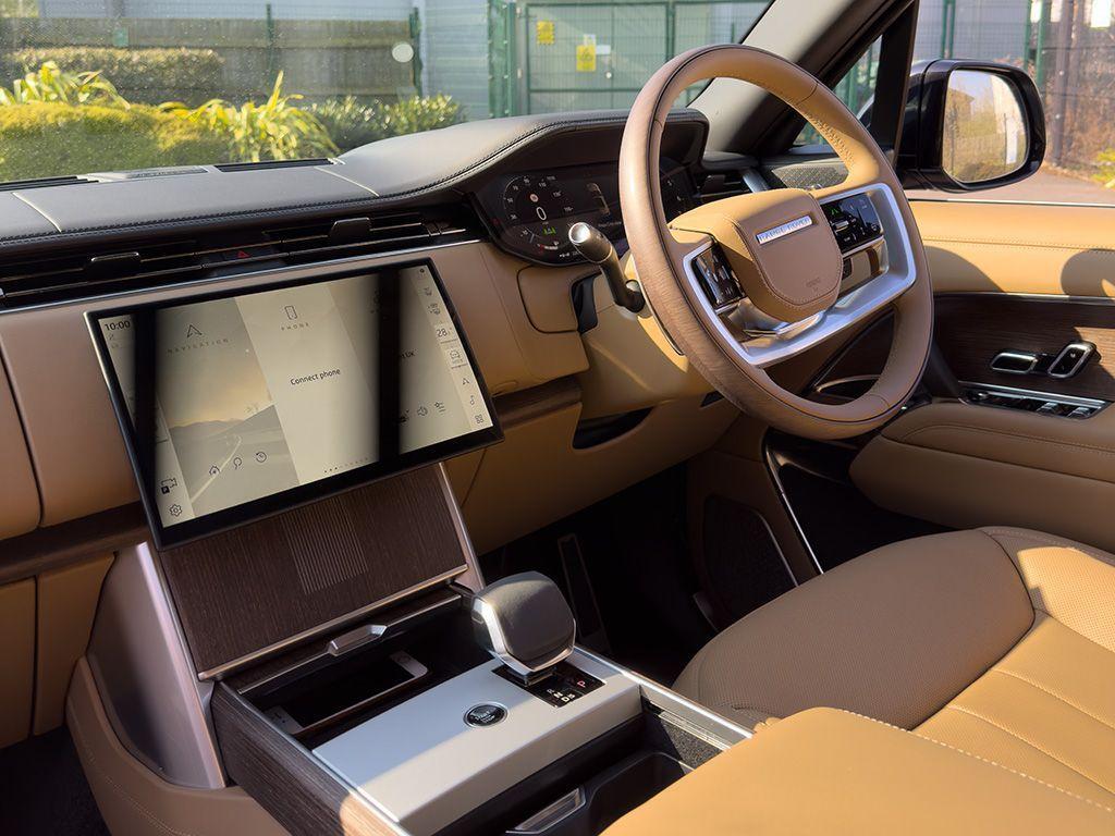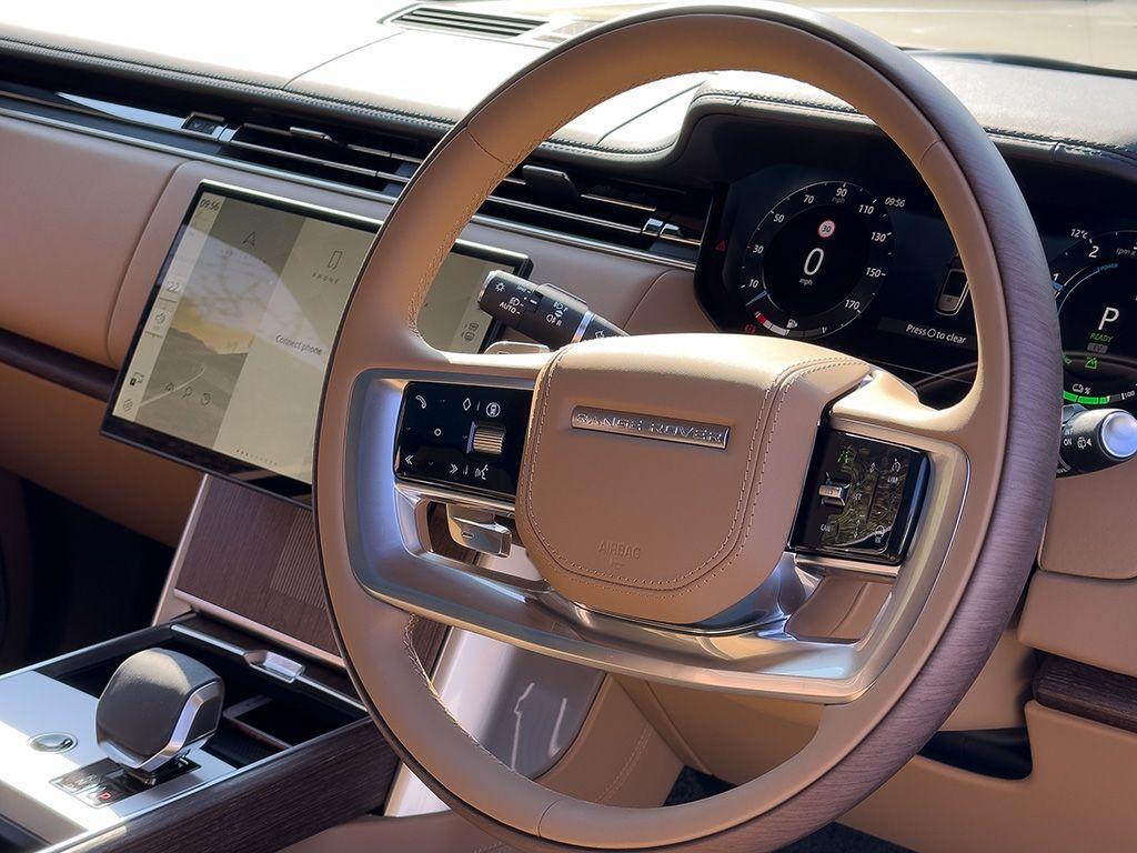Land Rover Range Rover 3.0 P460e 38.2kWh Autobiography Panoramic Sunroof на 22-дюймовых дисках Diamond Turned с контрастной отделкой Gloss Dark Grey, передние сиденья с подогревом и вентиляцией в 24 направлениях и функцией массажа горячими камнями, задние сиденья Executive Class Comfort с электроприводом откидывания сидений и функцией массажа, четырехзонный климат-контроль и система очистки воздуха Cabin Air Purification Pro для оптимального комфорта, 13,1-дюймовый сенсорный экран Pivi Pro с Apple CarPlay и Android Auto, звуковая система Meridian Signature Sound System с эффектом погружения, 3D-камера кругового обзора с функцией ClearSight Ground View и фарами для маневрирования, адаптивный круиз-контроль с функцией помощи при вождении, системой мониторинга слепых зон и функцией мониторинга движения сзади, системой удержания полосы движения и функцией экстренного торможения, системой помощи при парковке и 3D-камерой кругового обзора для легкой парковки.