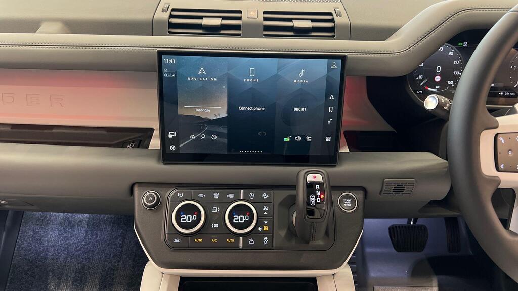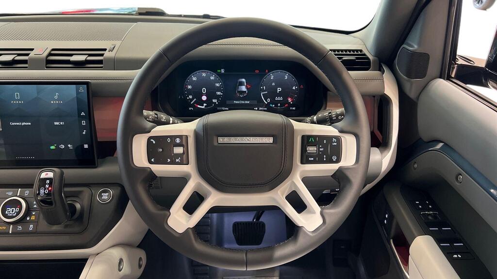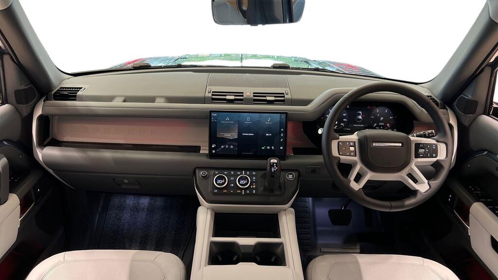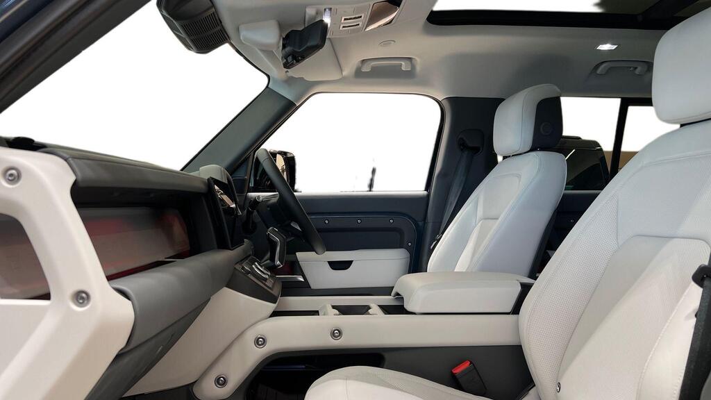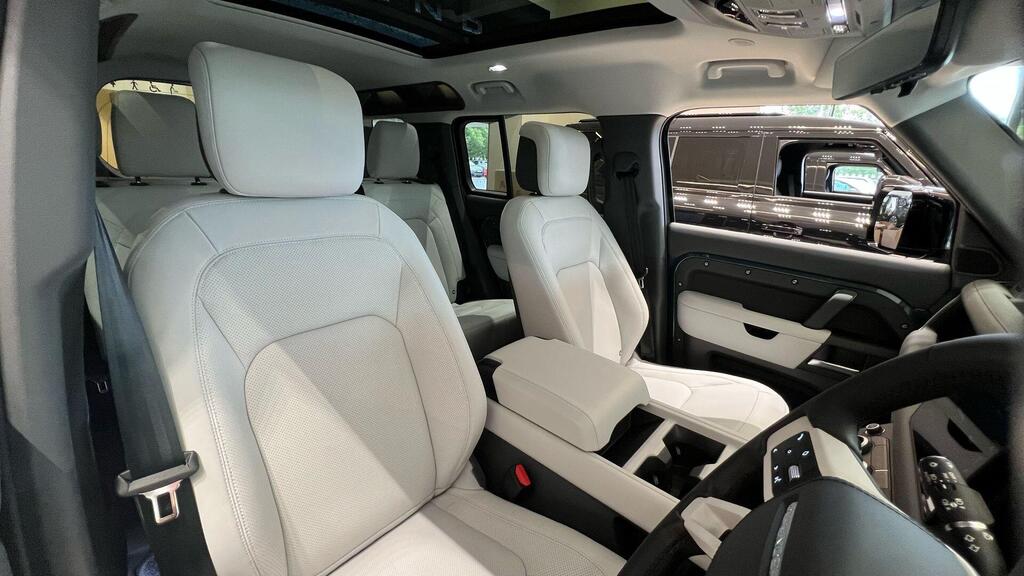 Land Rover Defender 110 3.0 D350 MHEV X-Dynamic HSE Panoramic Roof на 22-дюймовых легкосплавных дисках — Style 5098 — 5 спиц — глянцево-черные, пакет пневматической подвески, внутреннее зеркало заднего вида ClearSight, пакет для холодного климата, выдвижной фаркоп с электроприводом, 14-позиционные передние сиденья с подогревом и вентиляцией, электроприводом памяти и 4-позиционными ручными подголовниками, система помощи при парковке на 360 градусов, 3D-камера кругового обзора, ABS — антиблокировочная тормозная система, ACC — адаптивный круиз-контроль, Android Auto, Apple CarPlay, автоматическое затемнение внутреннего зеркала заднего вида, система мониторинга слепых зон, проекционный дисплей, крепление ISOFIX для переднего пассажирского сиденья, система удержания полосы движения, система объемного звучания Meridian, онлайн-пакет с тарифным планом, Pivi Pro — с подключением, стекла конфиденциальности, электроприводные замки от детей, Secure Tracker Pro, беспроводная зарядка устройств.