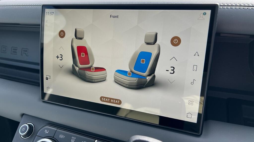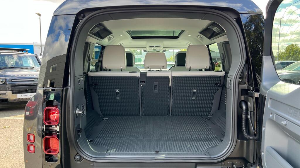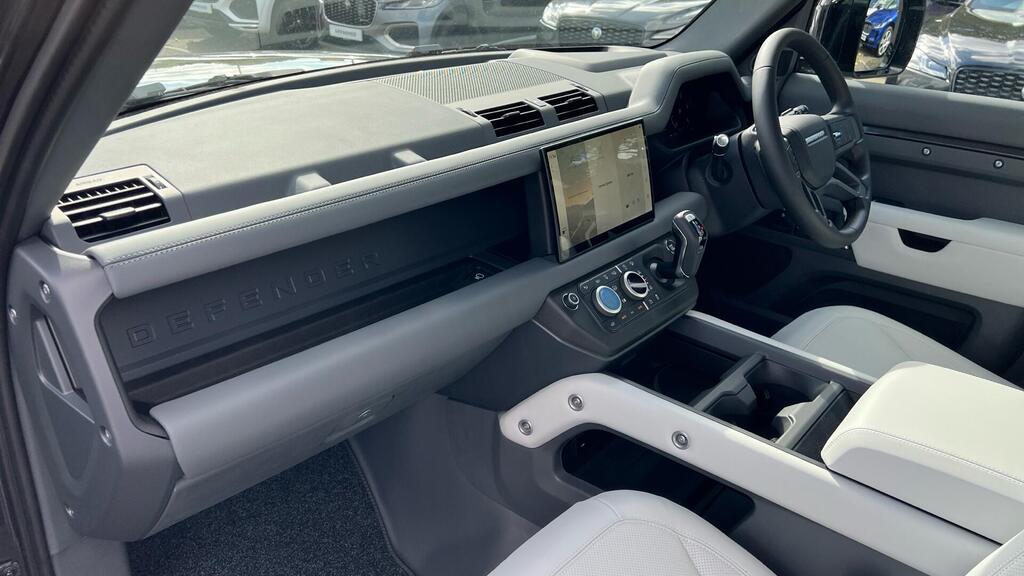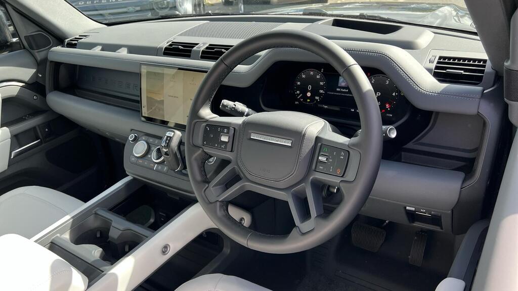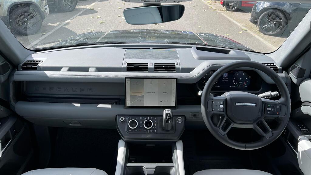 Land Rover Defender 110 3.0 D350 MHEV X-Dynamic HSE Auto Panoramic Roof на 22-дюймовых легкосплавных дисках — Style 5098 — 5 спиц — глянцево-черные, пакет пневматической подвески, датчик качества воздуха, система очистки воздуха в салоне Plus, выдвижной фаркоп с электроприводом, проекционный дисплей, холодильное отделение в передней центральной консоли, проекционный дисплей, 14-позиционные передние сиденья с электроприводом, подогревом и вентиляцией, памятью положений и 4-позиционными ручными подголовниками, система помощи при парковке на 360 градусов, 3D-камера кругового обзора, ABS — антиблокировочная тормозная система, ACC — адаптивный круиз-контроль, Android Auto, Apple CarPlay, система мониторинга слепых зон, датчик вторжения, система удержания полосы движения, акустическая система Meridian Surround Sound, пакет Online с тарифным планом, конфиденциальное стекло, Secure Tracker Pro, беспроводная зарядка устройств.