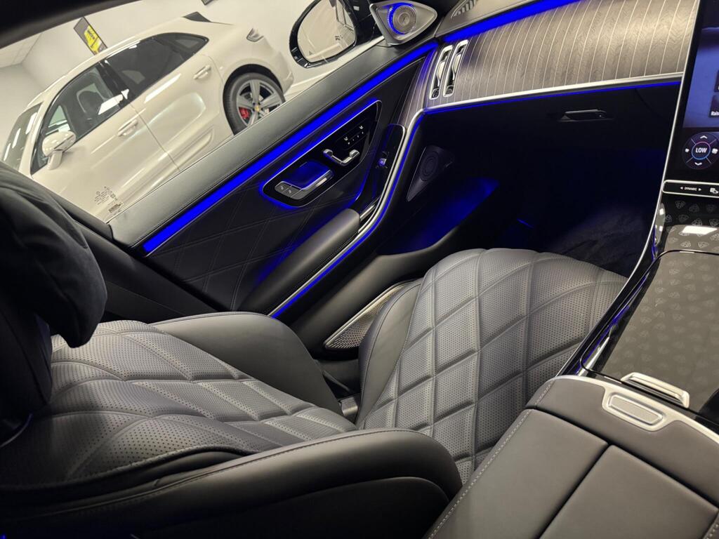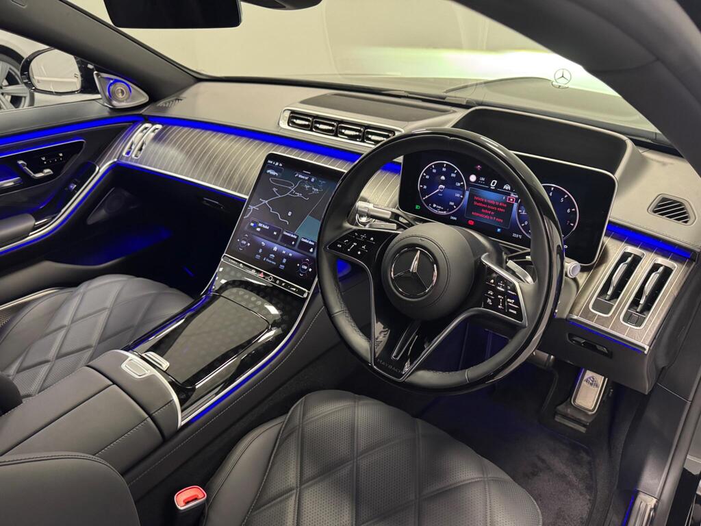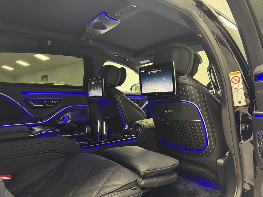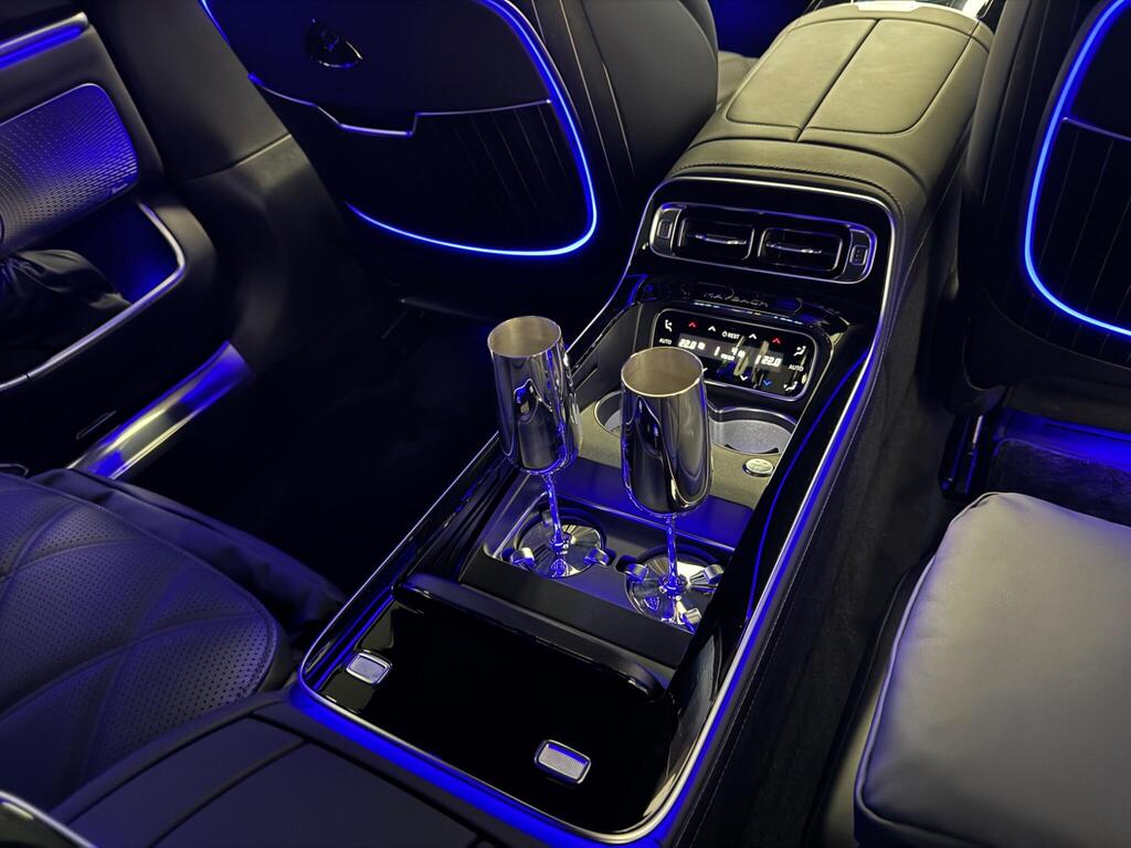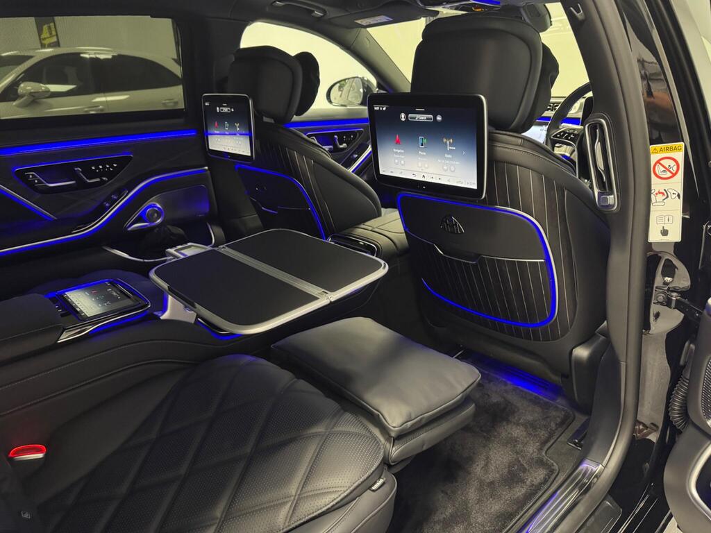 Mercedes-Benz Maybach S Class 4.0 S580h V8 MHEV First Class Night Series G-Tronic+ 4MATIC Panoramic Roof на 20-дюймовых легкосплавных дисках MAYBACH Forged с 5 отверстиями и глянцево-черным покрытием, массажные сиденья, включая массаж голеней, многоконтурные сиденья с климат-контролем, складные столики сзади, сенсорные планшеты на задних сиденьях, развлекательная система для задних пассажиров, звуковая система Burmester 4D, камеры 360 градусов, электрические солнцезащитные шторки, сканер отпечатков пальцев, удаленная парковка, Apple CarPlay, отделка салона Dark Shadow Gloss, качество воздуха.