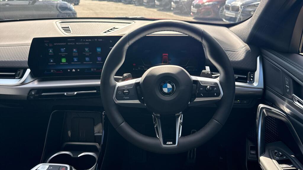 BMW X2 1.5 20i MHT M Sport DCT sDrive на 21-дюймовых легкосплавных дисках — индивидуальная подсветка — Y-образные спицы 874 I, двухцветные, солнцезащитное стекло, рулевое колесо с подогревом, пакет технологий, система помощи при парковке, спортивный пакет M, кожаное рулевое колесо M Sport.