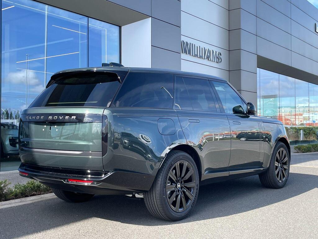 Land Rover Range Rover 3.0 D300 MHEV SE Panoramic Roof на 22-дюймовых легкосплавных дисках— Style 1073 — глянцево-черные, стекло Privacy Glass, керамическое покрытие, система Secure Tracker Pro, система ремонта шин, пакет внешней отделки Shadow, электропривод передних сидений с подогревом (20 положений), подогреваемые задние сиденья с электроприводом наклона, камера кругового обзора 3D, антиблокировочная тормозная система ABS, адаптивный круиз-контроль с функцией помощи при рулевом управлении, Apple CarPlay, Android Auto, система контроля слепых зон, возможность подключения телефона по Bluetooth с потоковой передачей аудио, система помощи при старте на подъеме, звуковая система Meridian, онлайн-пакет с тарифным планом, беспроводная зарядка устройств с усилителем сигнала телефона, солнцезащитный козырек Twin Blade с подсветкой зеркал для макияжа.
