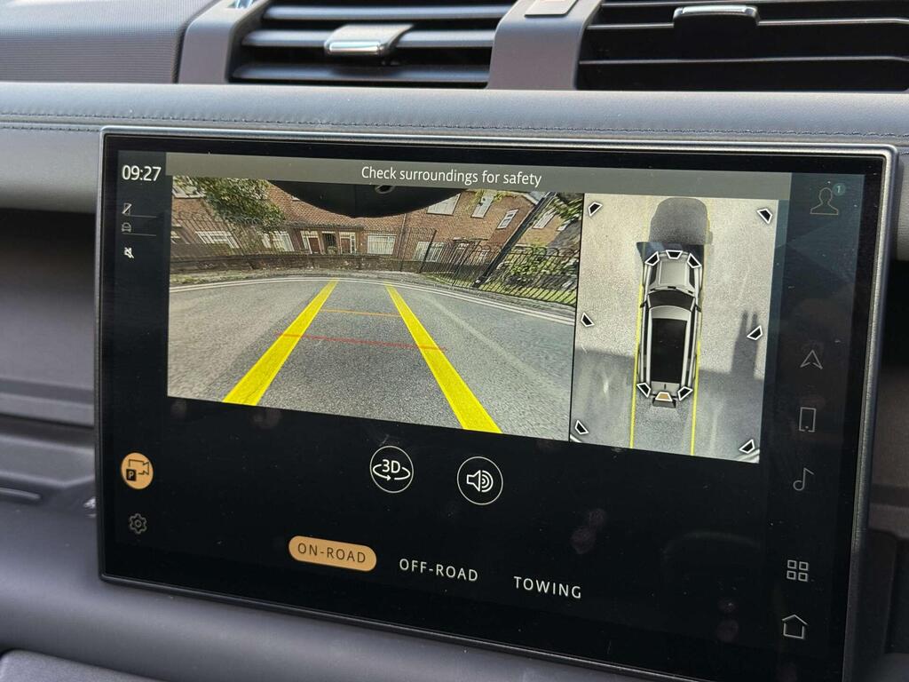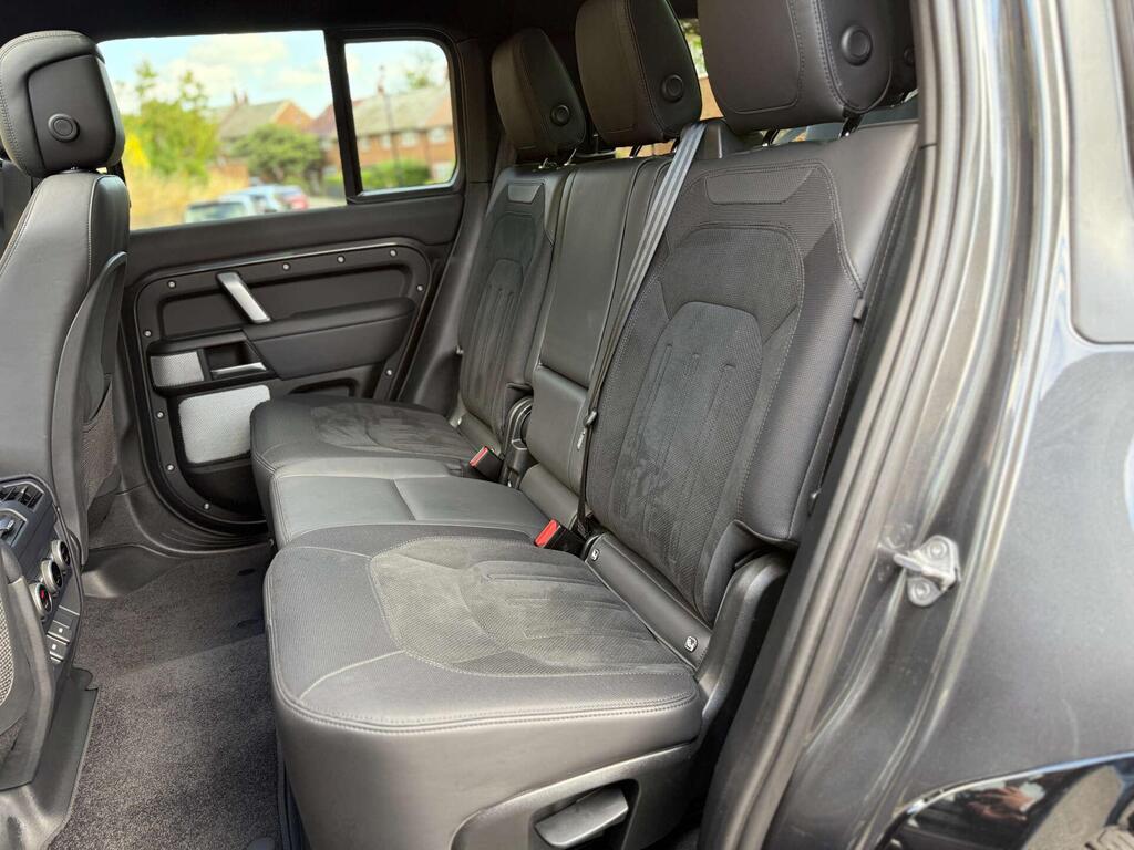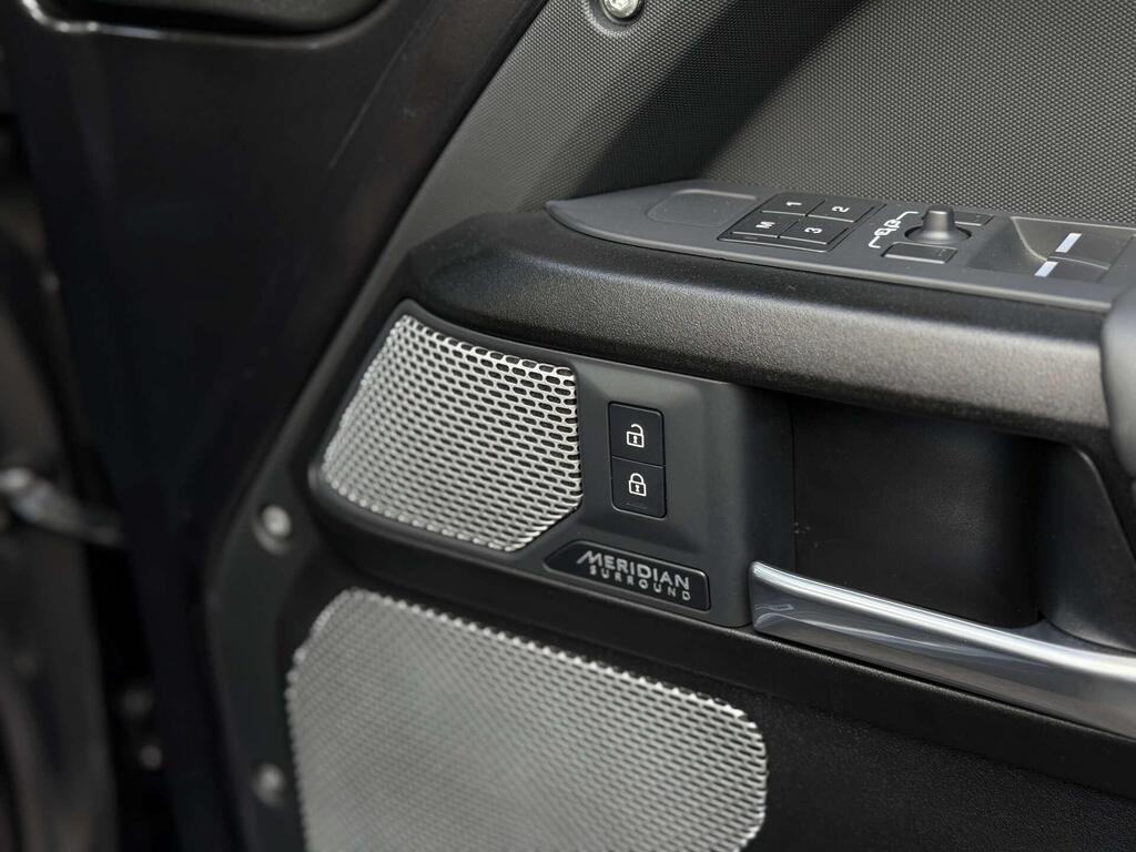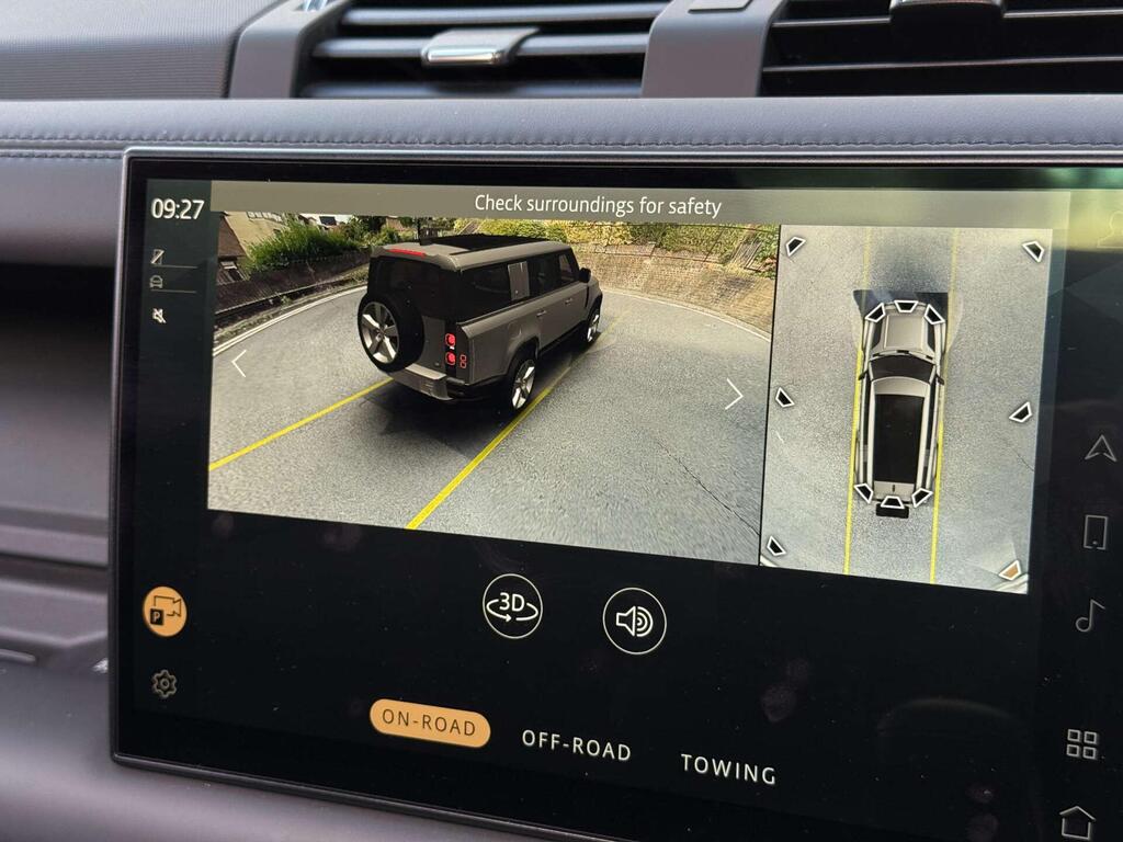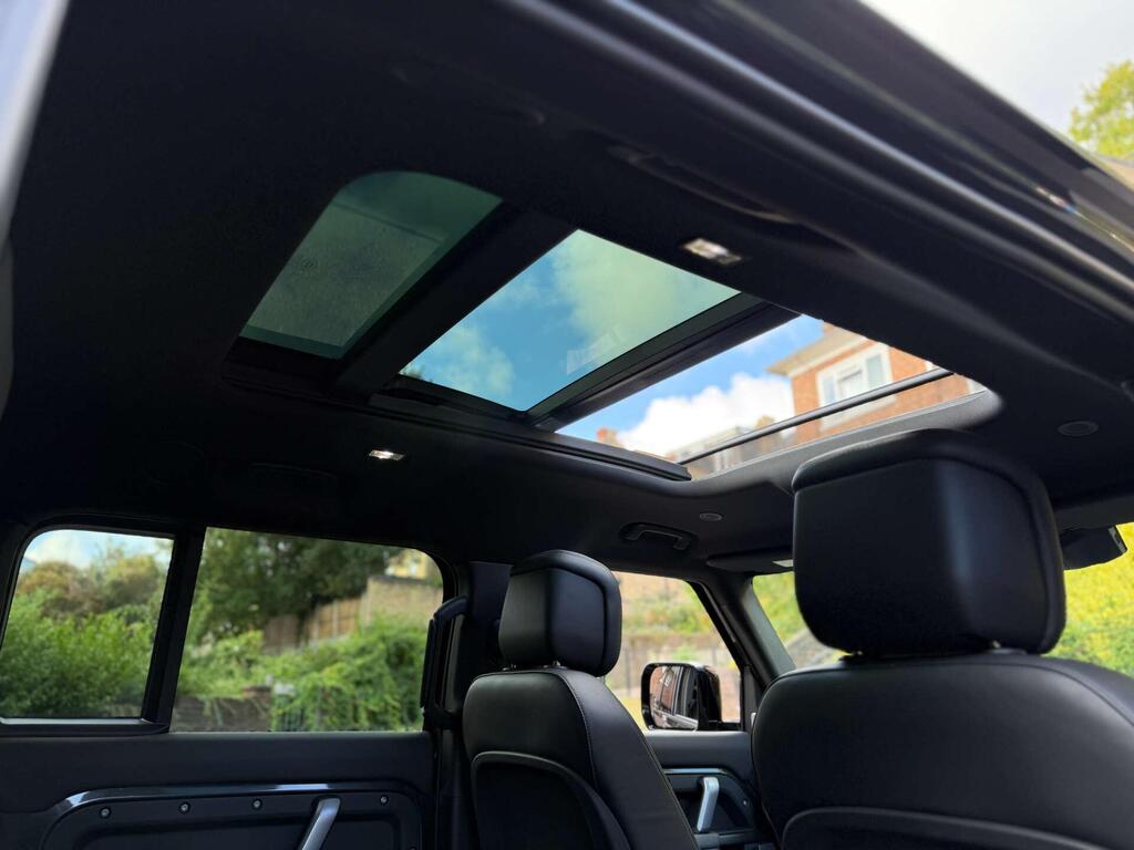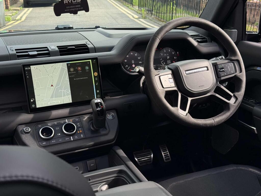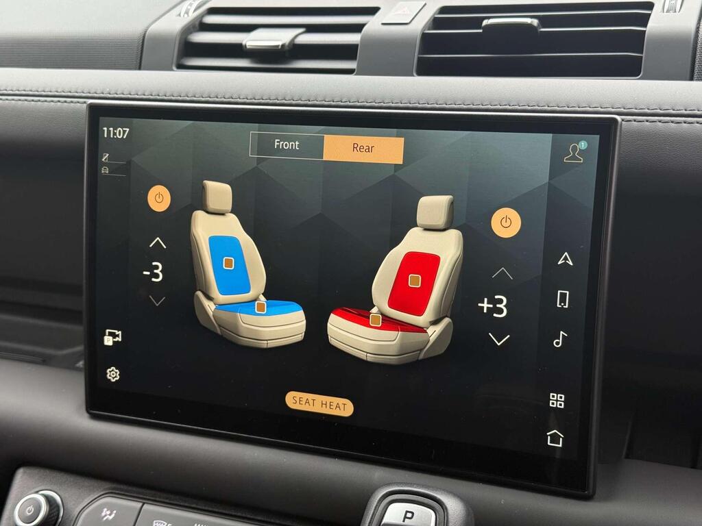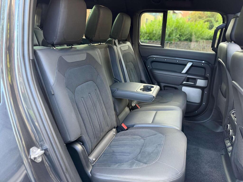 Land Rover Defender 130 5.0 P500 V8 4WD Panoramic Sunroof на 22-дюймовых легкосплавных дисках Style 5098 — 5 спиц — темно-серый сатиновый, 14-позиционные передние сиденья с электроприводом, подогревом и вентиляцией, памятью настроек и 4-позиционными подголовниками с механической регулировкой, подогрев рулевого колеса, холодильник в передней центральной консоли, четырехзонный климат-контроль, система помощи при парковке на 360 градусов, 3D-камера кругового обзора, адаптивный круиз-контроль ACC, система помощи при слепых зонах, проекционный дисплей, распознавание дорожных знаков и адаптивный ограничитель скорости, Apple CarPlay, аудиосистема Meridian, беспроводная зарядка устройств, 11,4-дюймовый сенсорный экран.
