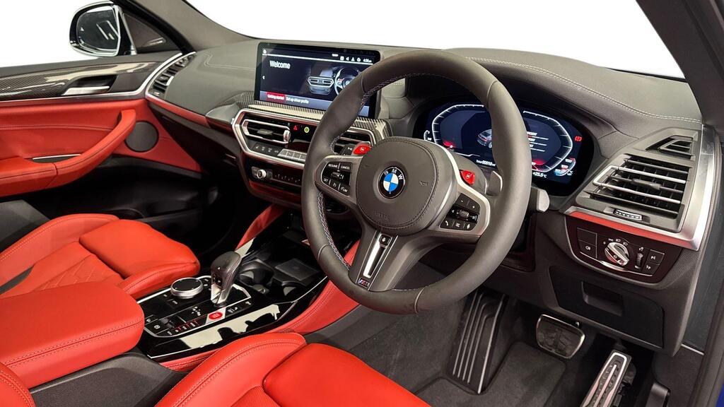 BMW X4 M 3.0i Competition Auto xDrive Panoramic Roof на 21-дюймовых двухцветных дисках M Light V-Spoke Style 765 M, удаление 3MF, декодирование дополнительных функций, улучшенный Bluetooth с беспроводной зарядкой, красные глянцевые тормоза M, специальное рулевое управление с Bluetooth и Wi-Fi, пакет улучшения видимости, подготовка к точке доступа Wi-Fi.