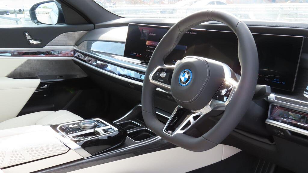 BMW 7 Series 3.0 750e 22.1kWh M Sport Auto xDrive Panoramic Roof на 20-дюймовых легкосплавных дисках — аэродинамический обвес 907 M, ABS — антиблокировочная тормозная система, включая CBC — систему управления торможением в поворотах, акустическая защита пешеходов, активная защита, активная защита, сигнализация, помощник по повышению внимательности, система комфортного доступа, профессиональный подключенный пакет, система закрывания с центральным замком, подготовка к установке помощника вождения Plus, помощник по парковке Plus, обогрев сидений — спереди и сзади, солнцезащитные козырьки с подсвечивающимися зеркалами и язычком для водителя и пассажира, лоток для беспроводной зарядки.