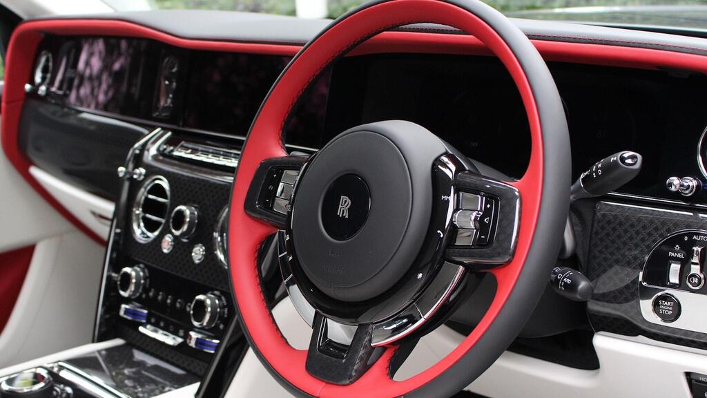 Rolls-Royce Cullinan Series II 6.75 V12 Black Badge 23-дюймовых частично полированных легкосплавных дисках Black Badge, красные тормозные суппорты, черное техническое волокно Badge, конфигурация заднего театра, темный хром Spirit Of Ecstasy, подсвеченный Spirit Of Ecstasy, проекционный дисплей, подсвечиваемая приборная панель, черная хромированная линия Horizon Line, окантовка порогов Technical Fibre, тиснение SOE на дверях, мягкое сиденье, утолщенное двухцветное рулевое колесо Phoenix Red/Black, вентилируемые передние сиденья, массажные передние сиденья, подушки подголовников задних сидений, расширенный глянцевый шпон, одинарная линия Coachline в цвете Grace White, подсвечиваемые черные накладки на пороги Badge, активный круиз-контроль, помощник вождения, контрастная монограмма RR на всех подголовниках, помощник парковки Plus, универсальный открыватель гаражных ворот, контрастная строчка Phoenix Red, система комфортного входа, контрастная окантовка Phoenix Red , Заднее тонированное стекло, Индивидуальное редактирование интерьера, Помощь при переключении дальнего света, Apple CarPlay, Система камер кругового обзора, Приборная панель с верхней строчкой, Помощник по загрузке, Защитная пленка для передней краски, Ключ Phoenix Red Signature.