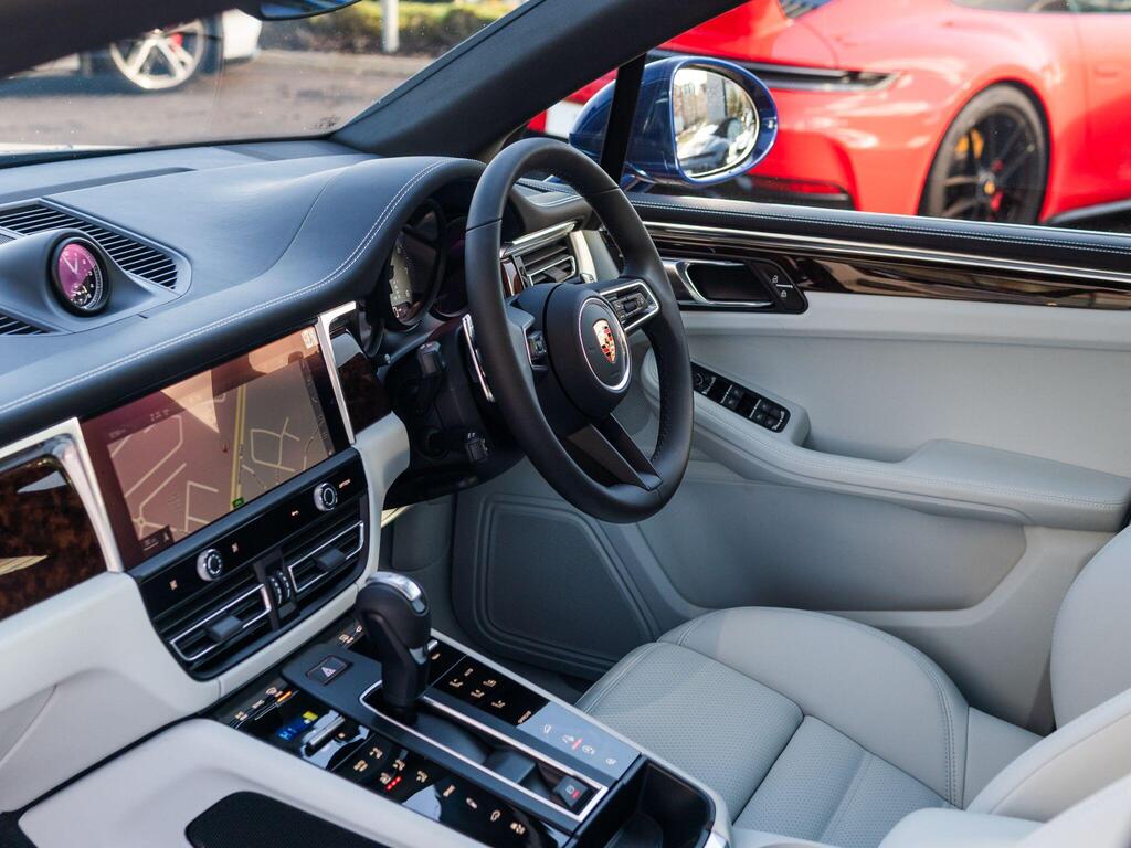 Porsche Macan 2.9 V6 S PDK 4WD Panoramic Sunroof на 20-дюймовых легкосплавныех дисках Macan S, окрашенные в темно-титановый цвет, адаптивная пневматическая подвеска, включая Porsche Active Suspension Management PASM, адаптивные спортивные передние сиденья с 18-позиционной электрорегулировкой, рулевое колесо с подогревом, система помощи при парковке с автоматическим управлением, Apple CarPlay с функцией распознавания голоса Siri, звуковой пакет Sound Package Plus, круиз-контроль с ограничителем скорости, система предупреждения о выезде с полосы движения, система помощи при парковке с оптическим и акустическим предупреждением — спереди и сзади.