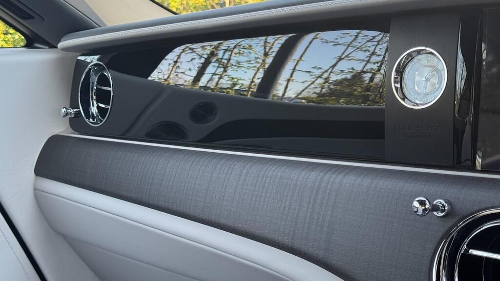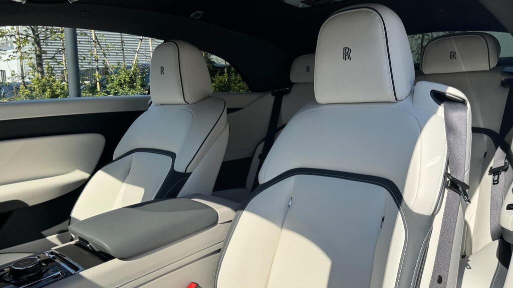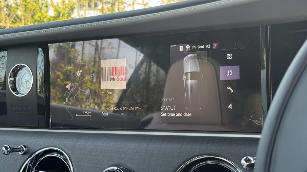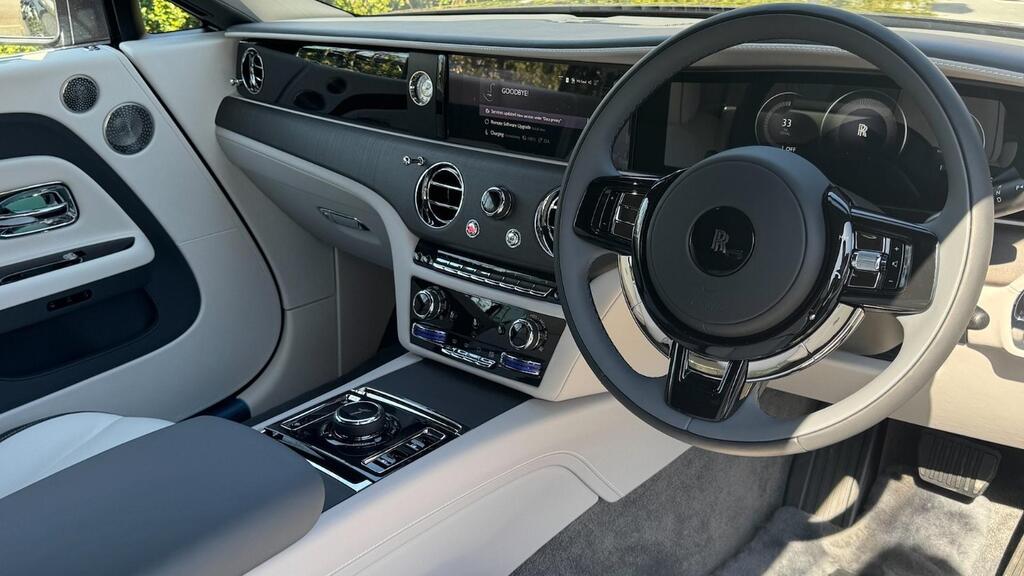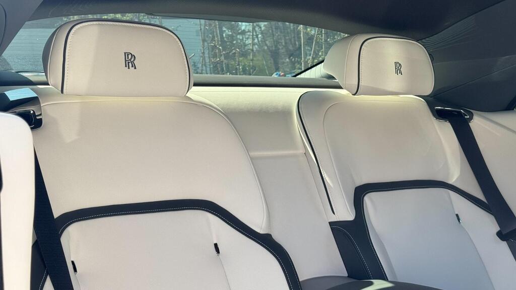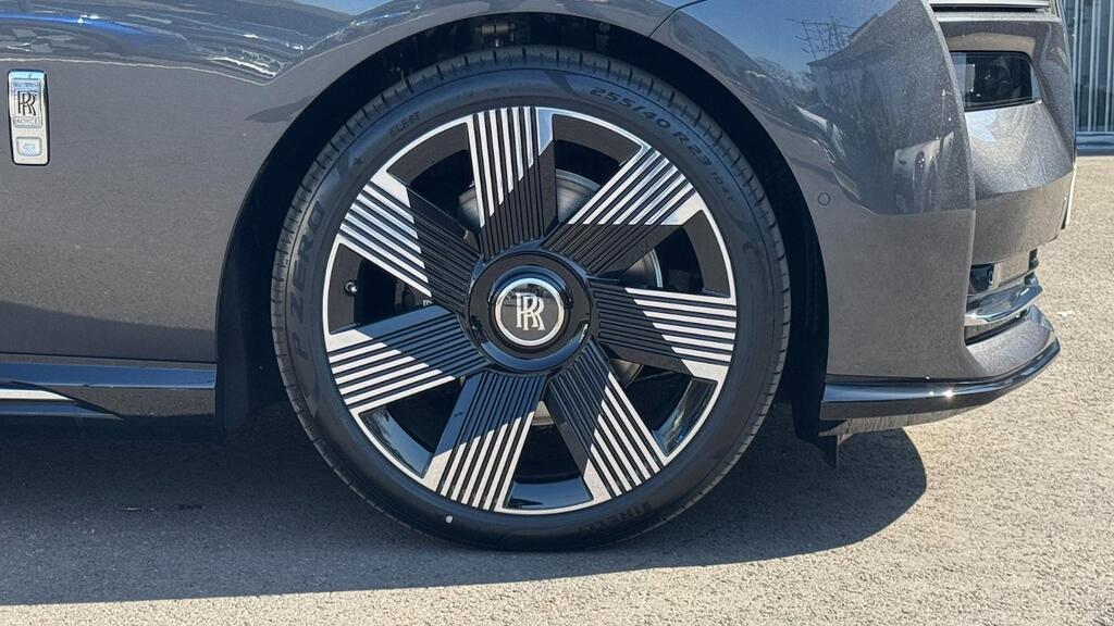 Rolls-Royce Spectre 120kWh на 23-дюймовых полированных легкосплавных дисках с 7 спицами, утолщенное двухцветное рулевое колесо цвета Scivaro Grey, универсальный открыватель гаражных ворот, пакет очистки воздуха, система Parking Assistant Plus, цифровой тюнер DAB, Apple Car Play, беспроводная зарядка телефона, персональный ESIM, цифровой интерфейс Spirit, коврики из овечьей шерсти, фирменный ключ цвета Scivaro Grey, контрастная окантовка сидений цвета Scivaro Grey, накладки на пороги «SPECTRE» с подсветкой, решетка радиатора с подсветкой, тонированное заднее стекло, монограммы RR на всех подголовниках цвета Scivaro Grey, контроль давления в шинах.