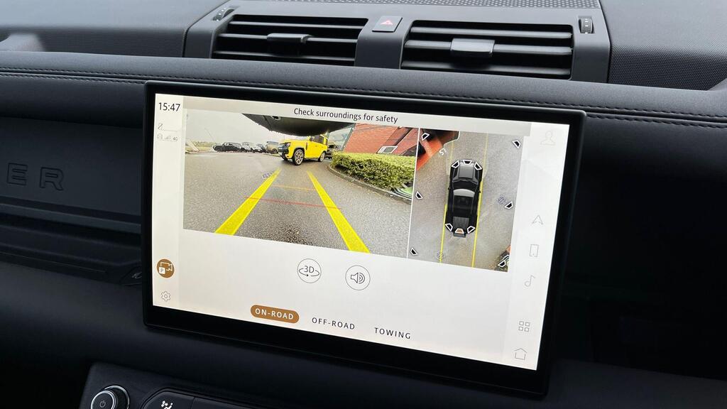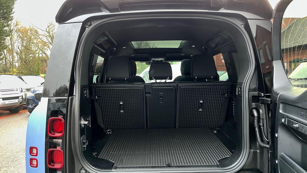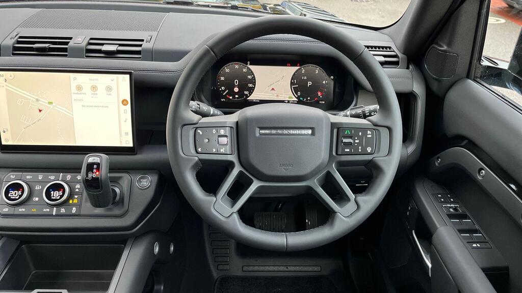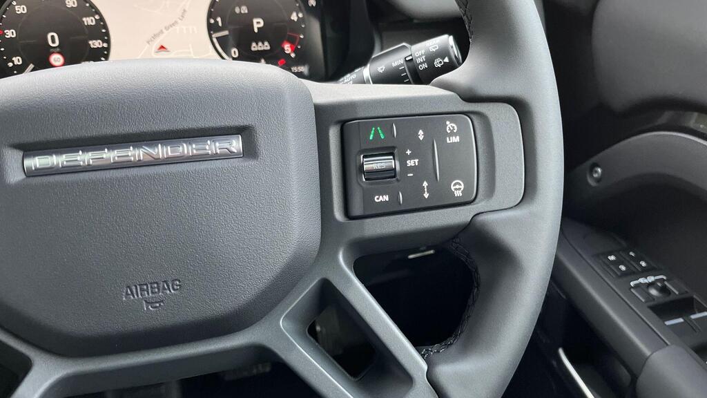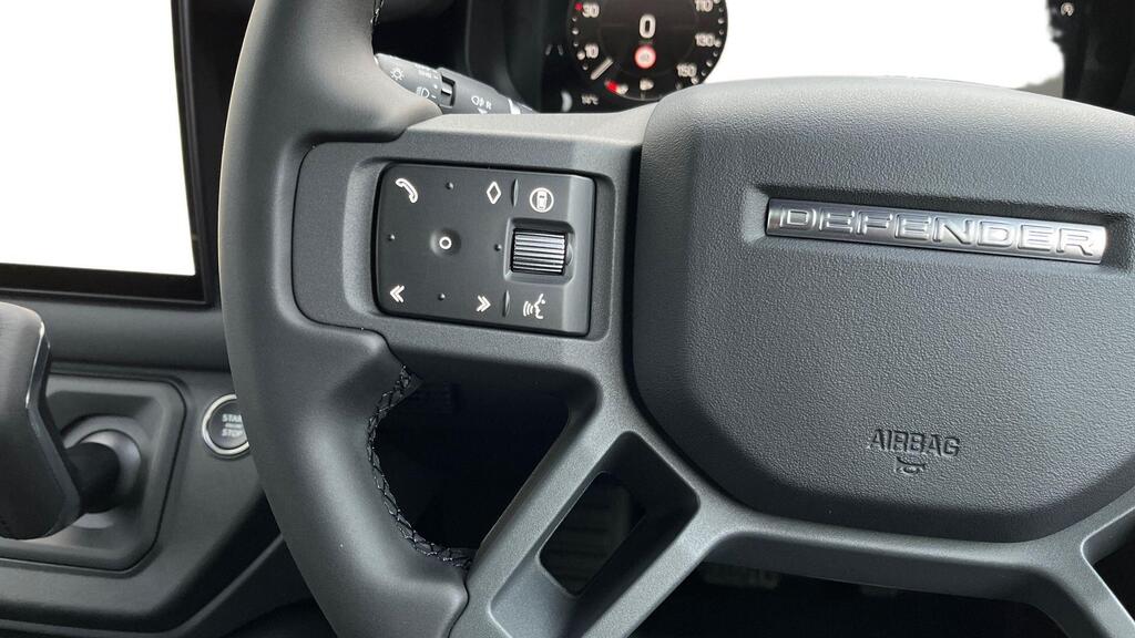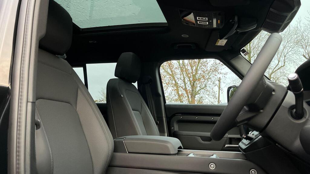 Land Rover Defender 110 3.0 D250 MHEV X-Dynamic SE Panoramic Sunroof на 20-дюймовых легкосплавных дисках — Style 5098 — 5 спиц — темно-серый сатиновый, пакет пневматической подвески, 12-позиционные передние сиденья с подогревом, электроприводом, памятью настроек и 2-позиционными ручными подголовниками, 2-зонный автоматический климат-контроль, система помощи при парковке на 360 градусов, 3D-камера кругового обзора, адаптивный круиз-контроль (ACC), система помощи при мониторинге слепых зон, Apple CarPlay, аудиосистема Meridian.