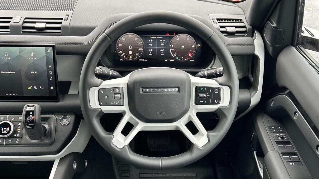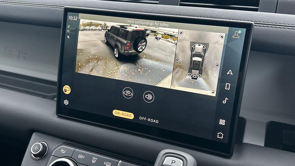 Land Rover Defender 110 3.0 D250 MHEV X-Dynamic SE Panoramic Sunroof на 20-дюймовых легкосплавных дисках — Style 5094 — 5 спиц — темно-серый сатин, 20-дюймовое полноразмерное запасное колесо, 12-позиционные передние сиденья с подогревом, электроприводом, памятью настроек и 2-позиционными ручными подголовниками, система помощи при парковке на 360 градусов, 3D-камера кругового обзора, система мониторинга слепых зон, помощь при парковке Spot Assist, круиз-контроль и ограничитель скорости, система контроля степени усталости водителя, Apple CarPlay.