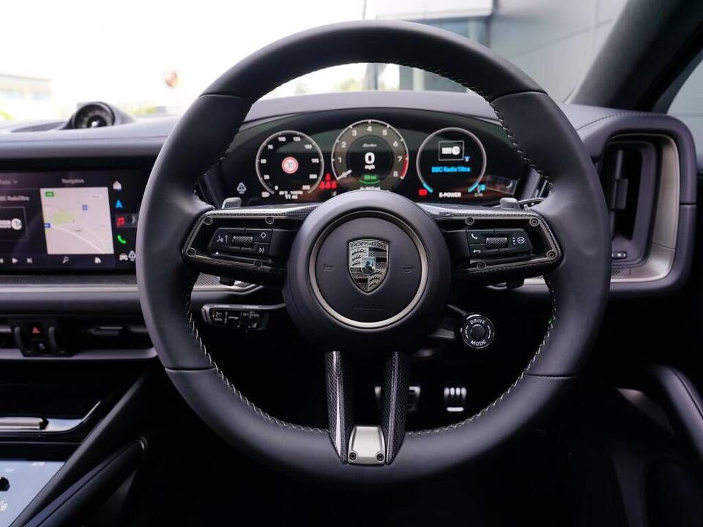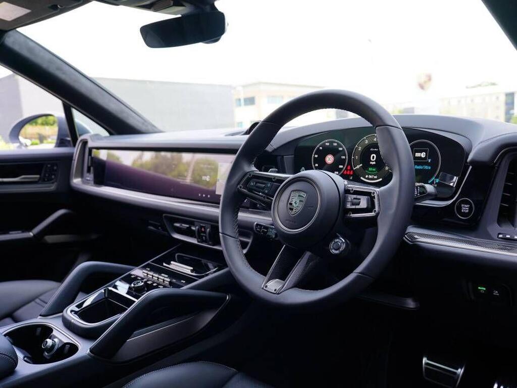 Porsche Cayenne 4.0 V8 E-Hybrid 25.9kWh Turbo TiptronicS 4WD Panoramic Sunroof на 21-дюймовые диски RS Spyder Design с отделкой Turbonite, адаптивный круиз-контроль, многофункциональное рулевое колесо GT Sports с отделкой из кожи и карбоновыми вставками, система помощи при смене полосы движения, пакет SportDesign с отделкой Turbonite, спортивная выхлопная система со спортивными выхлопными трубами (темными), система помощи при парковке спереди и сзади с визуальным и звуковым предупреждением, камера заднего вида, система голосового управления, адаптивные спортивные сиденья с 18-позиционной регулировкой, многофункциональное рулевое колесо GT Sports с отделкой из кожи и карбоновыми вставками, подогрев.
