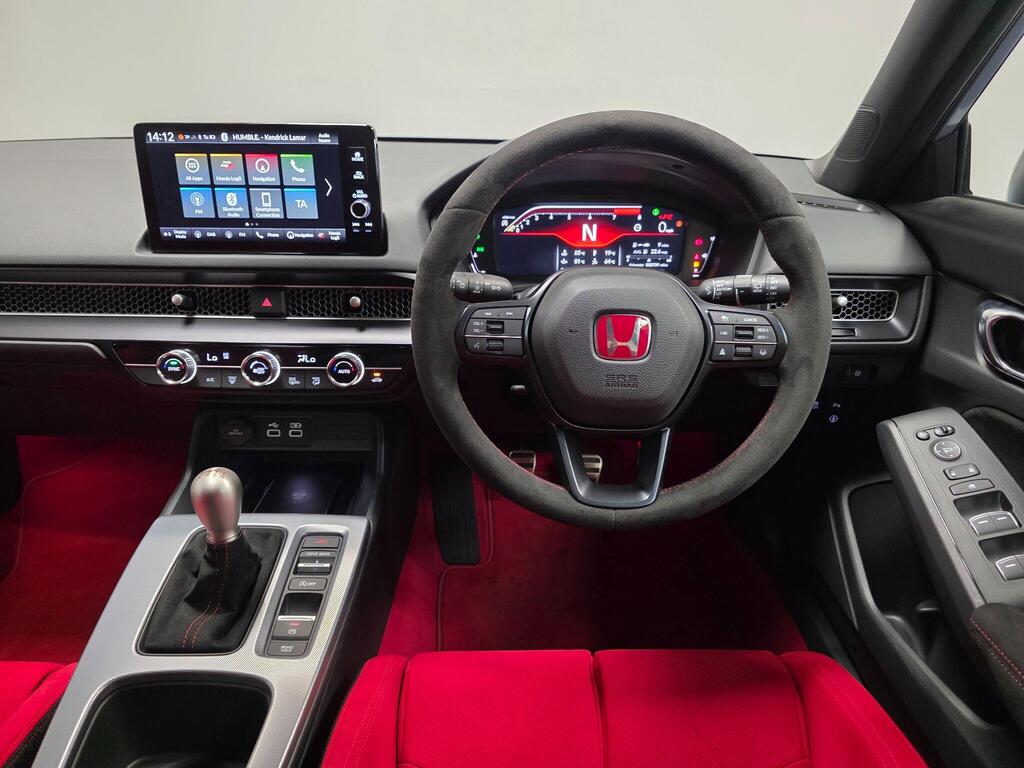 Honda Civic 2.0 VTEC Turbo Type R на 19-дюймовых легкосплавных дисках (черные матовые), решетка радиатора Berlina Black, адаптивный круиз-контроль (ACC), система мониторинга слепых зон, включая мониторинг перекрестного движения, система предупреждения о выезде с полосы движения (LDW), многофункциональный информационный дисплей (10,2 дюйма), датчики парковки (передние и задние), камера заднего вида, двухзонный климат-контроль, электрорегулировка пассажирского сиденья (4 положения), рулевое колесо (замша), встроенный Bluetooth-телефон Hands-Free (HFT), беспроводная зарядка, цифровое аудиовещание (DAB+).