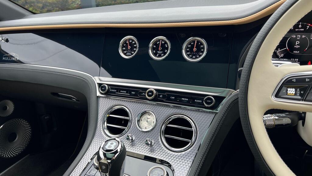 Bentley Continental GT V8 Hybrid Mulliner 2dr Auto Blackline Spec 4.0 Panoramic Sunroof на 22-дюймовых дисках Mulliner, окрашенные в черный цвет, спецификация Mulliner Blackline, панорамная стеклянная крыша, вращающийся дисплей Bentley, спецификация Touring | проекционный дисплей, подогрев руля, система ночного видения, адаптивный круиз-контроль, камера вида сверху, комфортные передние сиденья, коврики с высоким ворсом спереди, велнес-сиденья спереди, индукционное зарядное устройство для телефона, подогрев передних сидений, открывание багажника без помощи рук, бесключевой доступ, адаптивный круиз-контроль с функцией прогнозирования, ручная вышивка крестиком от Mulliner, вышитые эмблемы Bentley, подогрев переднего центрального подлокотника, одинарная отделка — Grand Black с накладками Mulliner, самовыравнивающиеся значки на руле, аудиосистема Bang & Olufsen для Bentley.