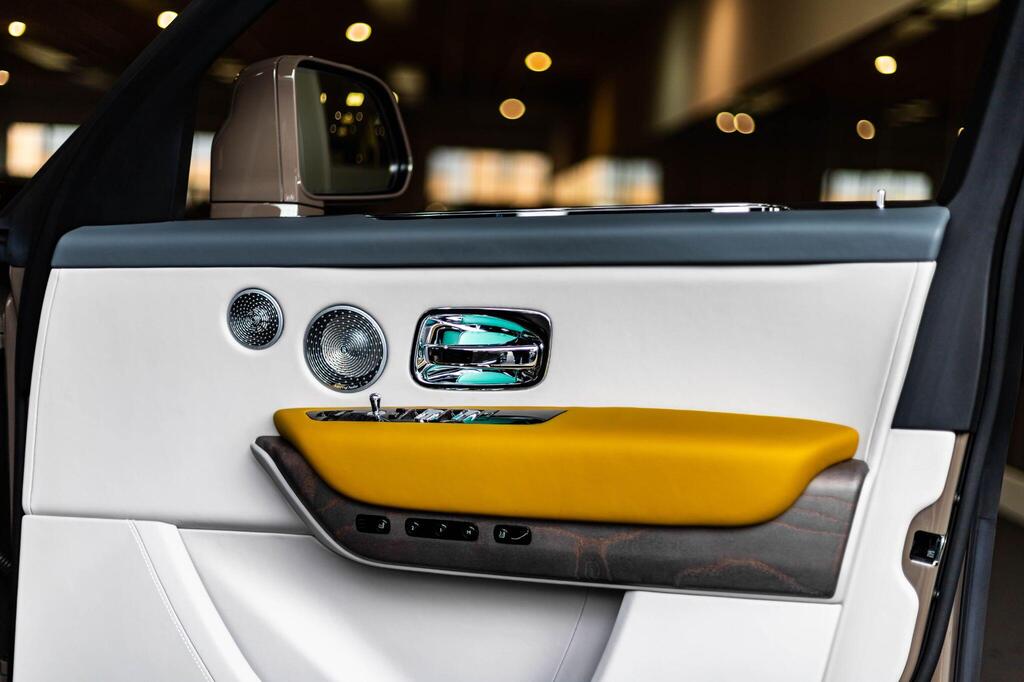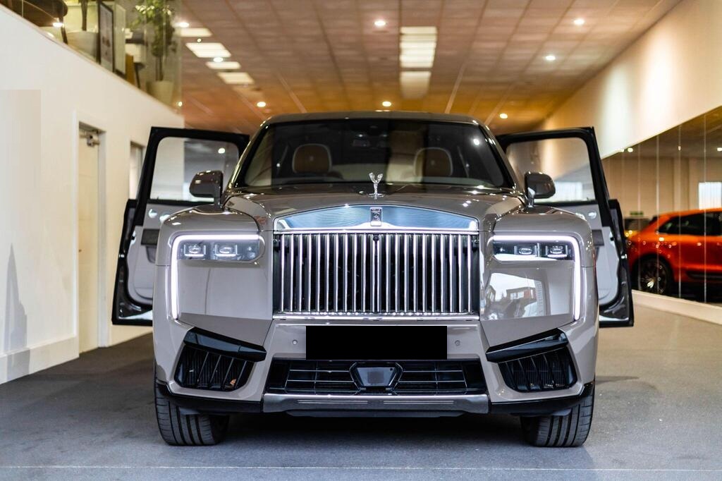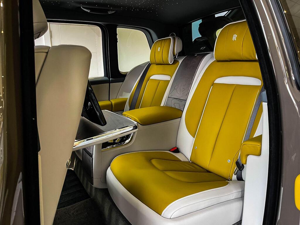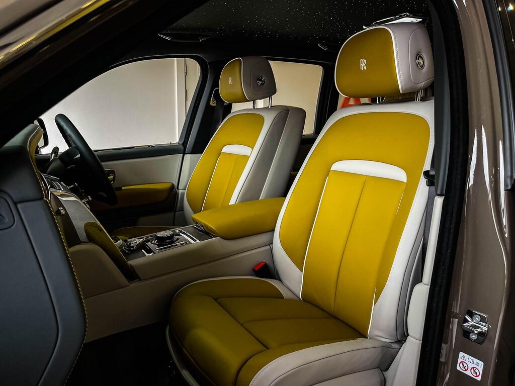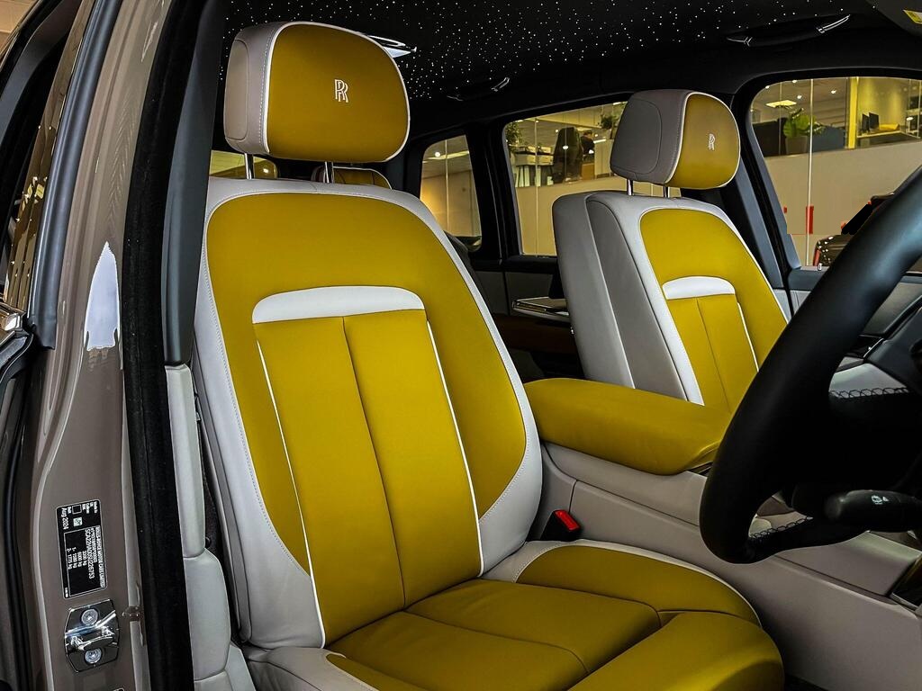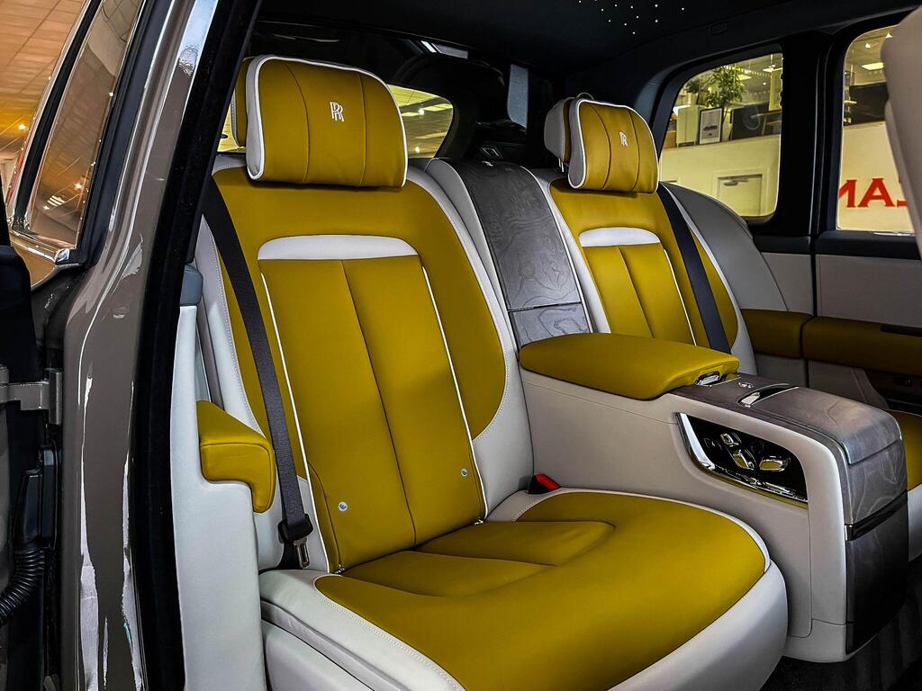 Rolls-Royce Cullinan Series II 6.75 V12 Auto 4WD на 23-дюймовых дисках — частично полированные, цвета Emperador Truffle, Cashmere Grey с Chartreuse, цвет Scivaro Grey, линия отделки салона Arctic White Coachline, строчка Arctic White, шпон с открытыми порами — серый морёный ясеневый шпон. Удлинённая центральная линия шпона, обивка потолка Shooting Star, сиденья с эффектом присутствия и центральной консолью, фиксированная центральная консоль для задних сидений, отдельные сиденья, конфигурация «театр» для задних сидений, массажные сиденья спереди, массажные сиденья сзади, столы для пикника, Rolls-Royce, аудиосистема на заказ, цветная окантовка сидений, пакет Cullinan (ZA6), массажные сиденья спереди, конфигурация «театр» для задних сидений, монограмма RR на всех подголовниках, подогрев пассажирского пространства (4HC), табличка с VIN-номером, пакет отделки из полированной нержавеющей стали, индивидуальный интерьер — модульное редактирование, подсветка приборной панели, утолщённое двухцветное рулевое колесо. Подсветка порогов "Cullinan", система помощи водителю, активный круиз-контроль, универсальный открыватель гаражных ворот, подсветка порогов "Cullinan", подсветка решетки радиатора , Защита днища из нержавеющей стали, система комфортного доступа, автоматическое закрывание дверей, коврики из овечьей шерсти.