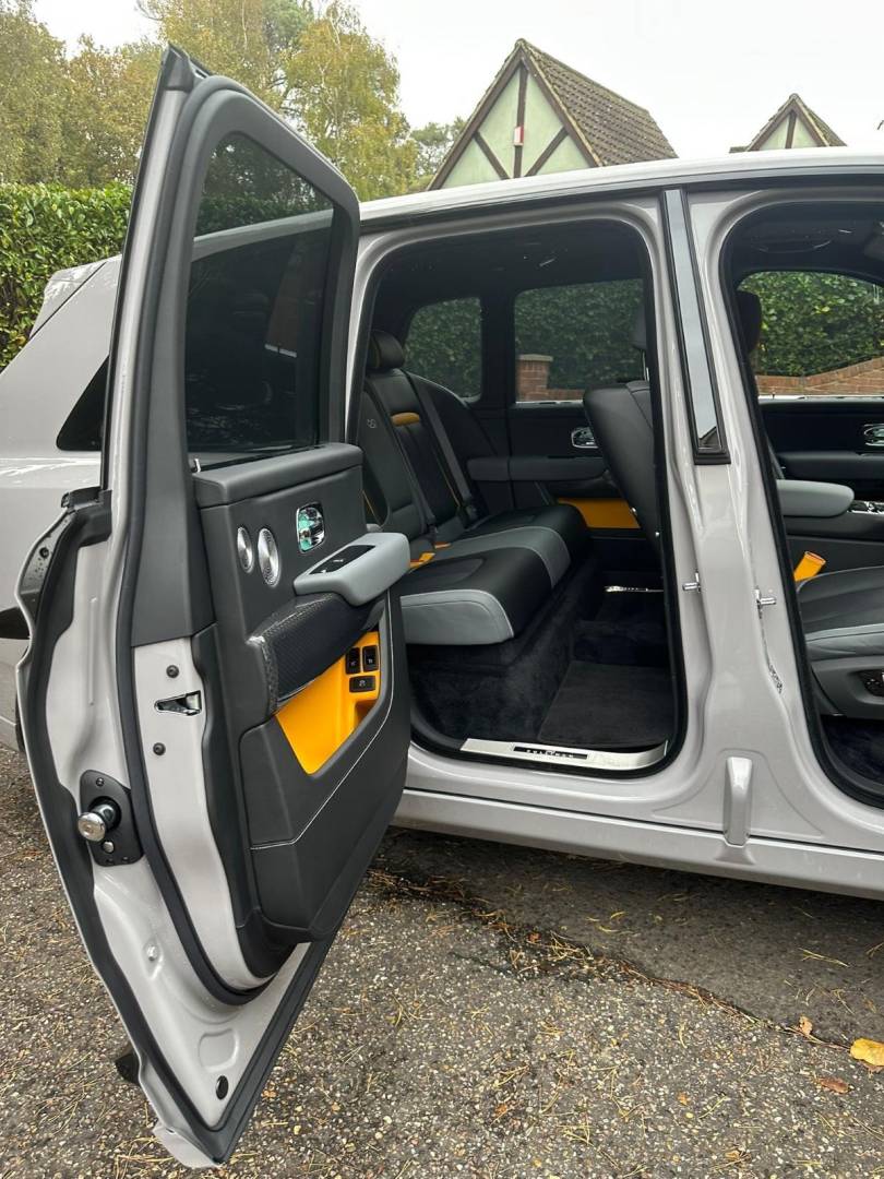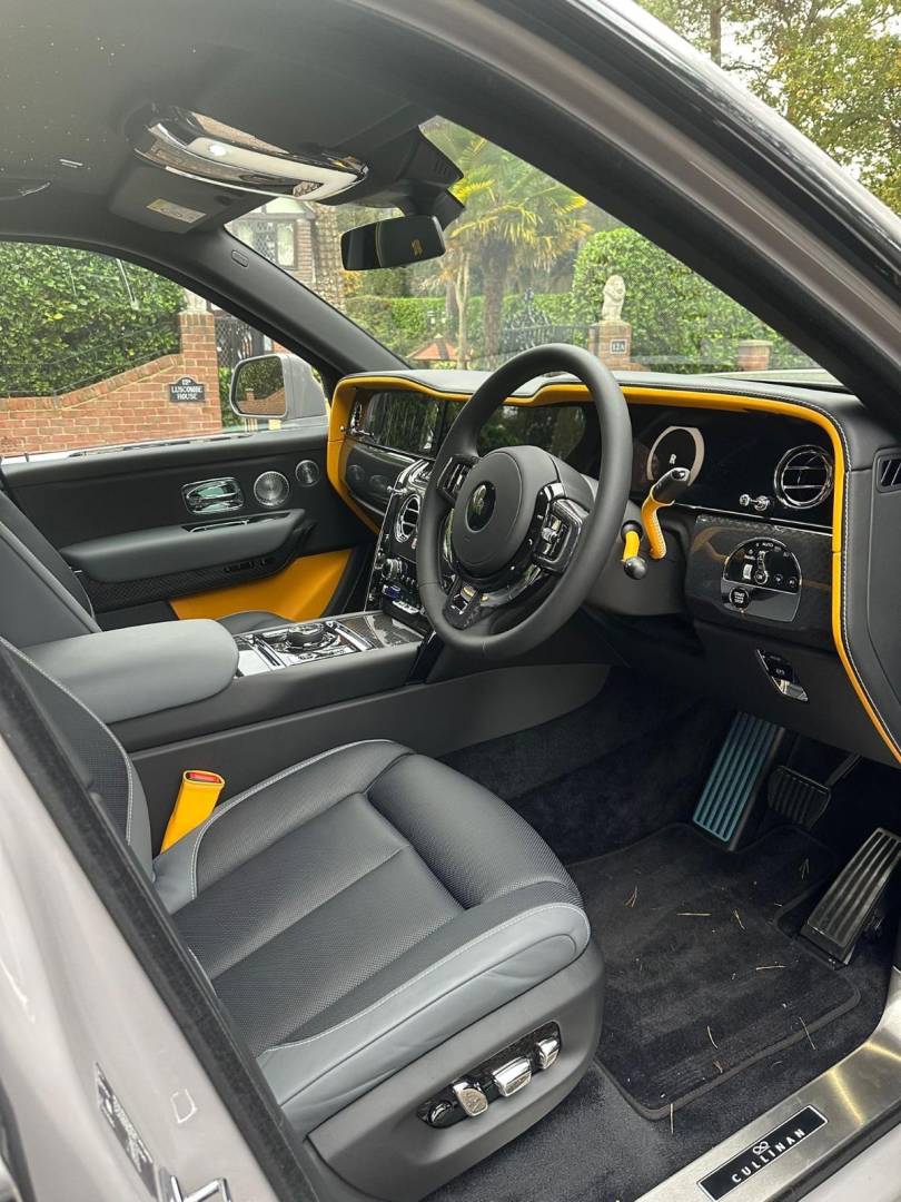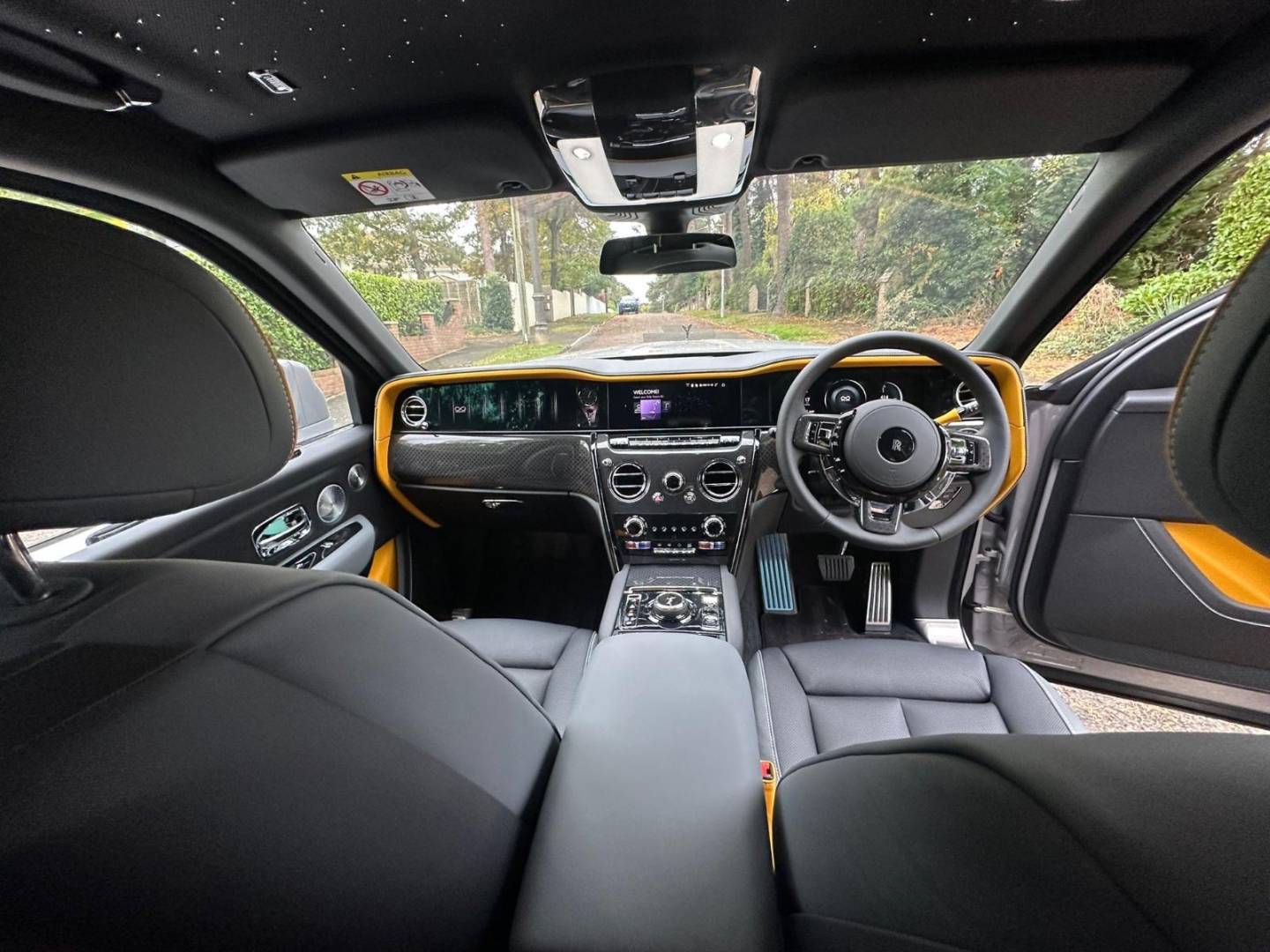 Rolls-Royce Cullinan Series II 6.75 V12 Black Badge Auto 4WD на 23-дюймовых черных дисках Badge Черные тормозные суппорты, темный хром Spirit of Ecstasy, черная хромированная линия Horizon, подсвечиваемая решетка радиатора, обивка потолка в стиле Shooting Star, вентилируемые передние сиденья, массажные сиденья спереди, активный круиз-контроль, помощник вождения, помощник парковки Parking Assistant Plus, конфигурация «театр» сзади, столики для пикника, аудиосистема Rolls-Royce Bespoke, система комфортного доступа, автоматическое закрывание дверей.