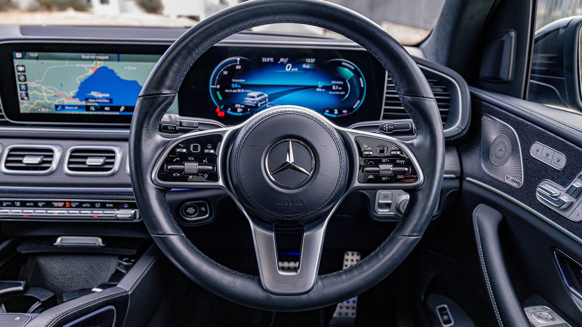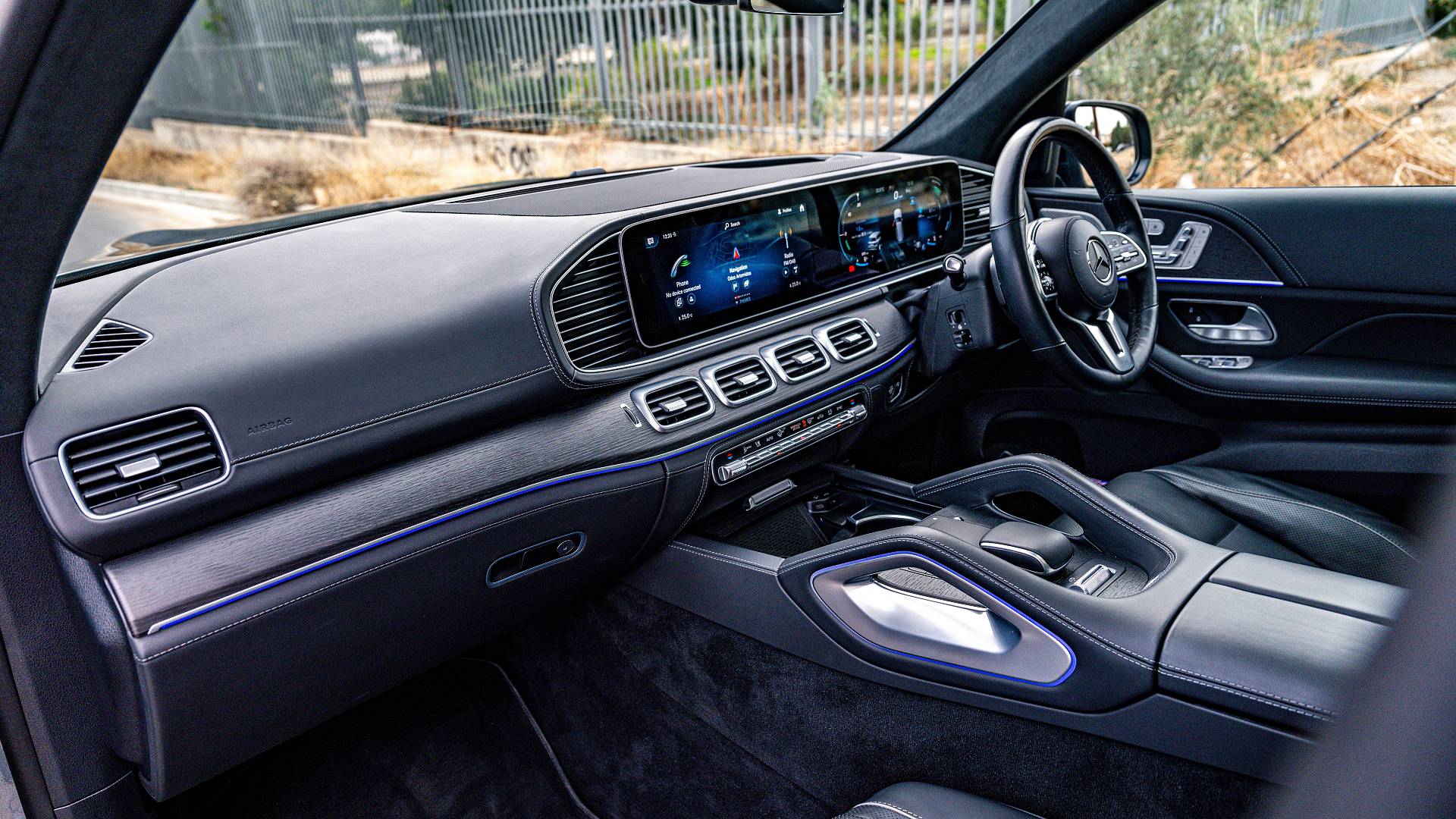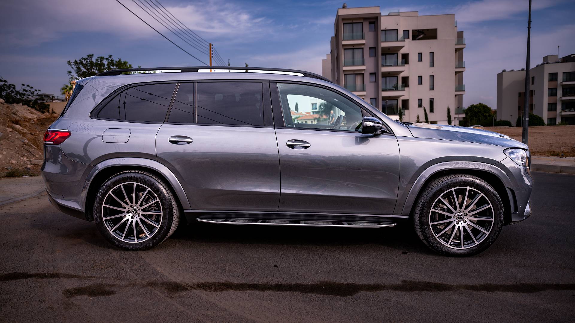 Mercedes Benz GLS 400d 3.0 Night Edition Premium Plus 4WD Panoramic Sunroof на 23-дюймовых легкосплавных дисках AMG с 5 сдвоенными спицами, линия AMG Line, Обивка салона черной кожей Artico, отделка из глянцевого коричневого дерева лайм, пакет хромированных элементов интерьера, третий ряд сидений с двумя полноценными сиденьями (третий ряд сидений с электрорегулировкой), мультимедийный дисплей с сенсорным экраном, широкоэкранная приборная панель с проекционным дисплеем, мультимедийная система MBUX, система облегчения посадки, активная система экстренного торможения, электронная система контроля тяги.