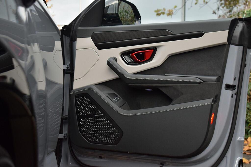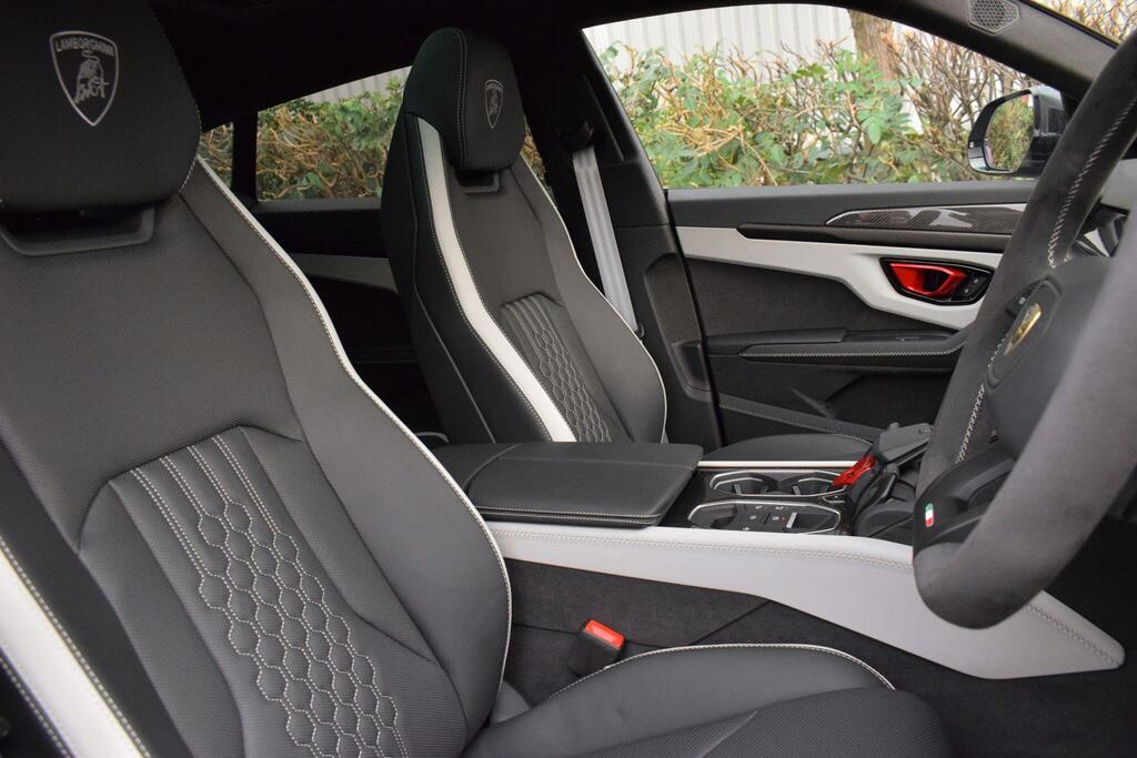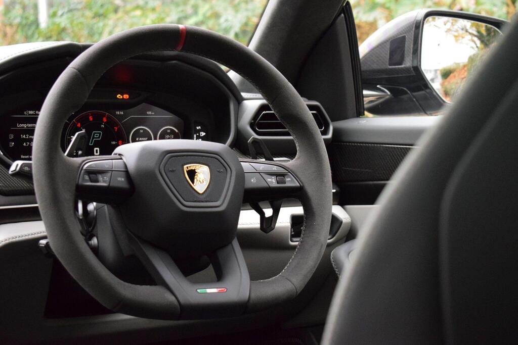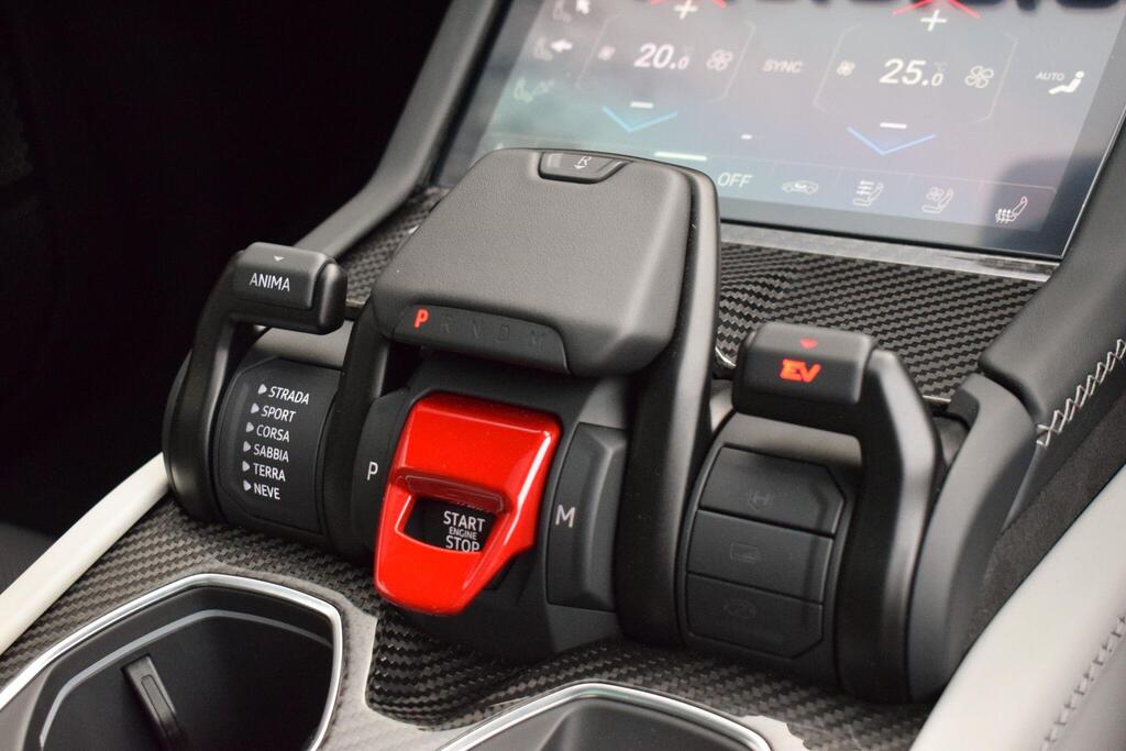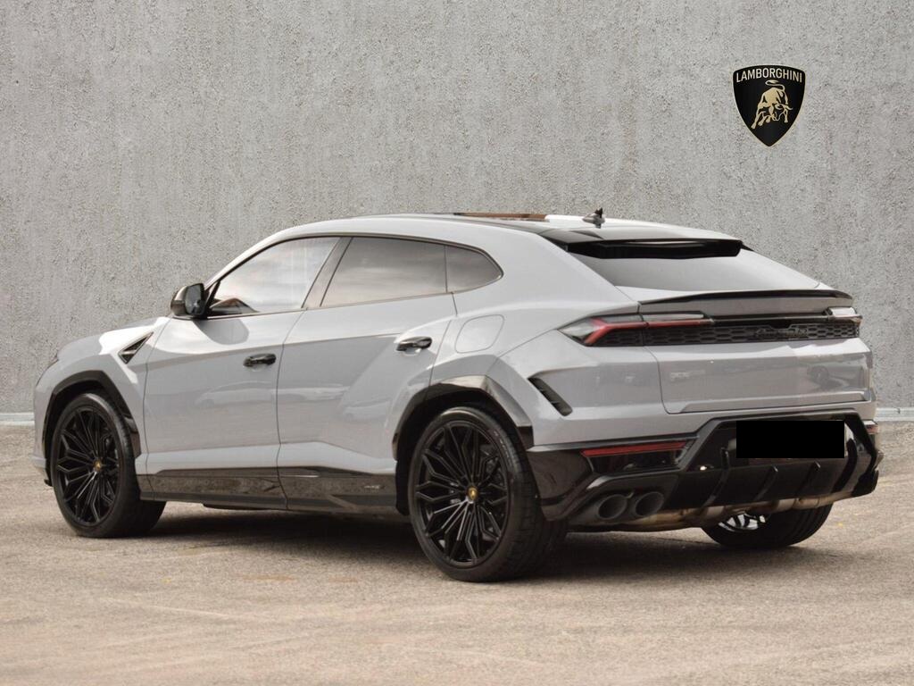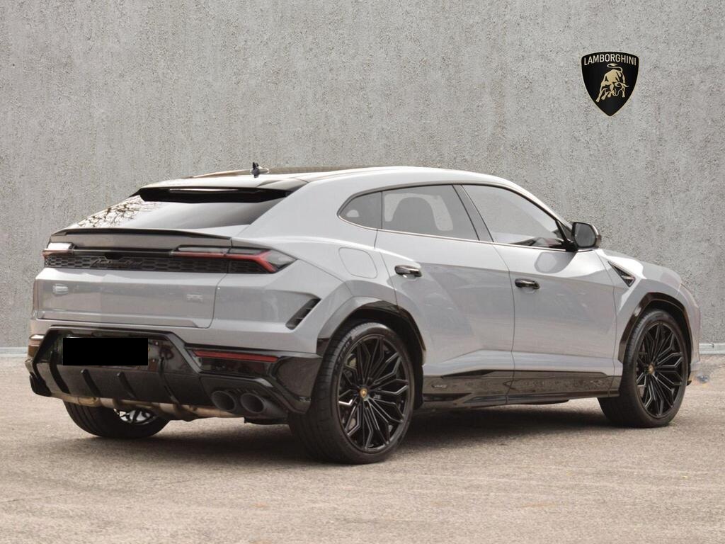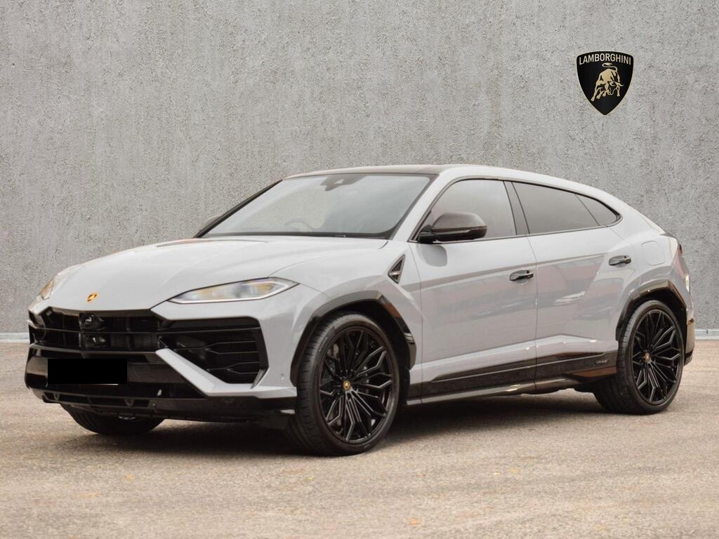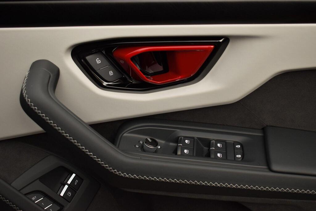 Lamborghini Urus 4.0 V8 BiTurbo 25.9kWh SE Panoramic Sunroof на 23-дюймовых глянцево-черных дисках Galanthus, черные тормозные суппорты, глянцевая черная крыша с панорамным люком, пакет Small Interior Gloss Carbon, пакет помощи при парковке с дистанционным управлением, звуковая система Bang & Olufsen, полностью электрические передние сиденья с вентиляцией и массажем, подогрев передних и задних сидений, двухцветный кожаный салон с контрастной строчкой, прострочка кожаных сидений Performante, подогреваемый руль Corsa Tex с красной меткой, коврики с двойной строчкой и кожаной окантовкой, серебристые ремни безопасности Grigio, 21-дюймовое запасное колесо, подогреваемое и теплоотражающее лобовое стекло, заднее звукопоглощающее стекло, пакет внешнего тюнинга Gloss Black, глянцевый черный задний спойлер и дверные ручки Ad_Personam, корпуса боковых зеркал из глянцевого углеродного волокна, глянцевый черный задний логотип Lamborghini, матовые черные выхлопные насадки, вышитые щитки Lamborghini, пакет фоновой подсветки, пакет темного интерьера, крестообразная строчка в салоне, внедорожные режимы Lamborghini ANIMA, черная анодированная отделка салона с лазерной гравировкой буквы Y на приборной панели.