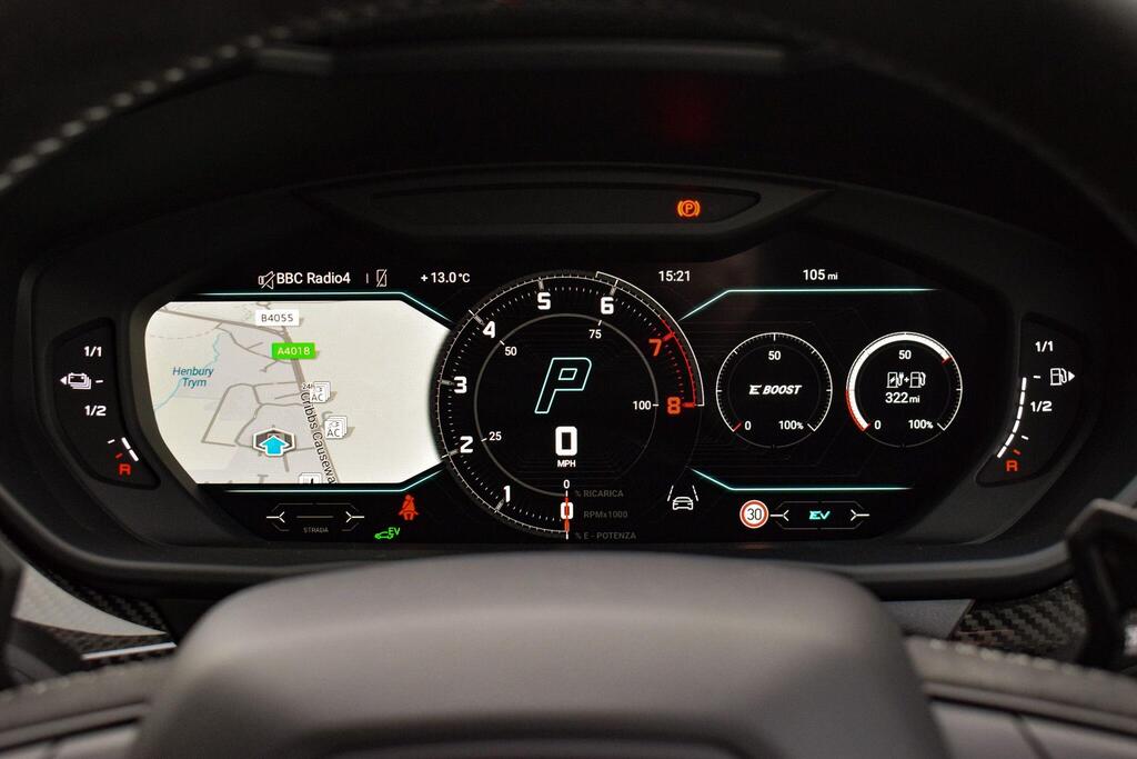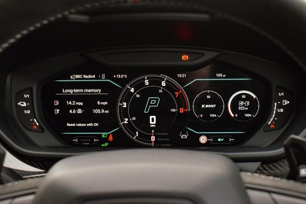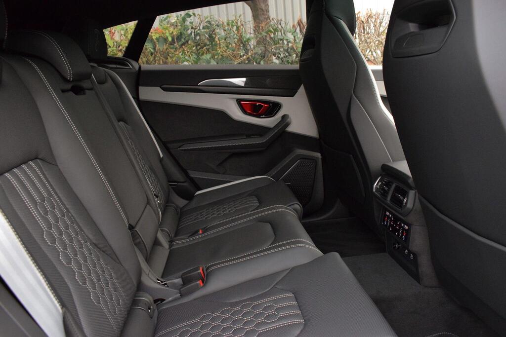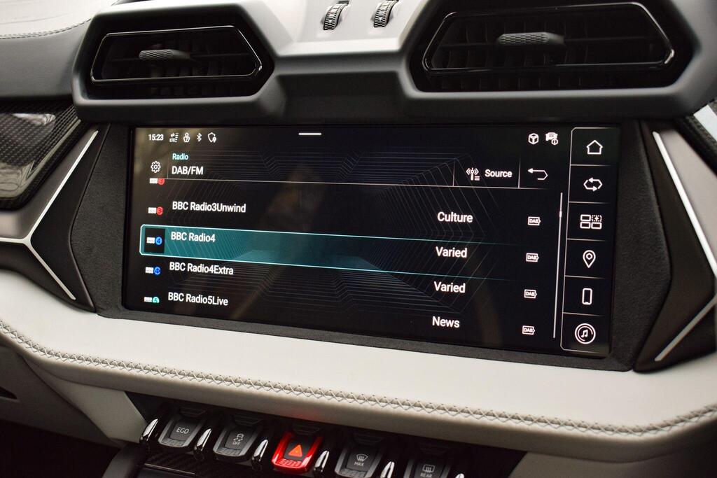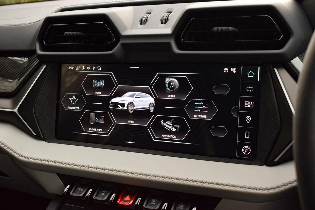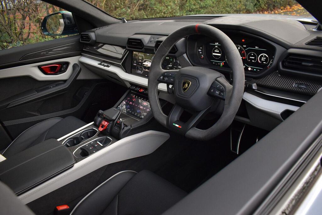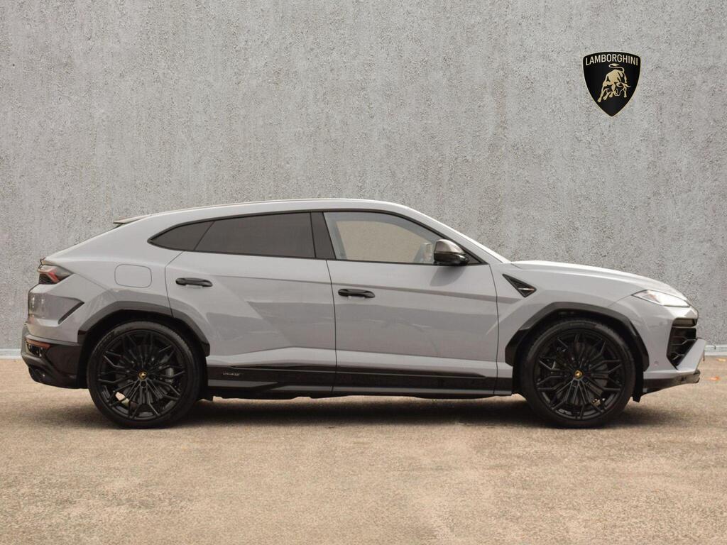 Lamborghini Urus 4.0 V8 BiTurbo 25.9kWh SE Panoramic Sunroof на 23-дюймовых глянцево-черных дисках Galanthus, черные тормозные суппорты, глянцевая черная крыша с панорамным люком, пакет Small Interior Gloss Carbon, пакет помощи при парковке с дистанционным управлением, звуковая система Bang & Olufsen, полностью электрические передние сиденья с вентиляцией и массажем, подогрев передних и задних сидений, двухцветный кожаный салон с контрастной строчкой, прострочка кожаных сидений Performante, подогреваемый руль Corsa Tex с красной меткой, коврики с двойной строчкой и кожаной окантовкой, серебристые ремни безопасности Grigio, 21-дюймовое запасное колесо, подогреваемое и теплоотражающее лобовое стекло, заднее звукопоглощающее стекло, пакет внешнего тюнинга Gloss Black, глянцевый черный задний спойлер и дверные ручки Ad_Personam, корпуса боковых зеркал из глянцевого углеродного волокна, глянцевый черный задний логотип Lamborghini, матовые черные выхлопные насадки, вышитые щитки Lamborghini, пакет фоновой подсветки, пакет темного интерьера, крестообразная строчка в салоне, внедорожные режимы Lamborghini ANIMA, черная анодированная отделка салона с лазерной гравировкой буквы Y на приборной панели.