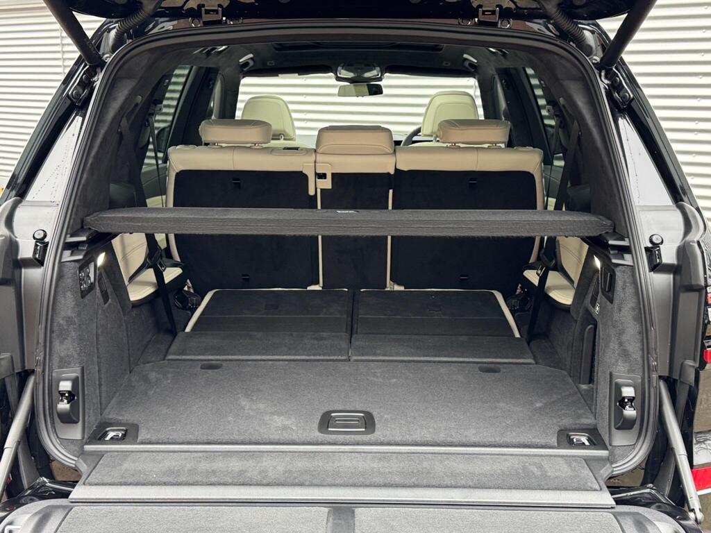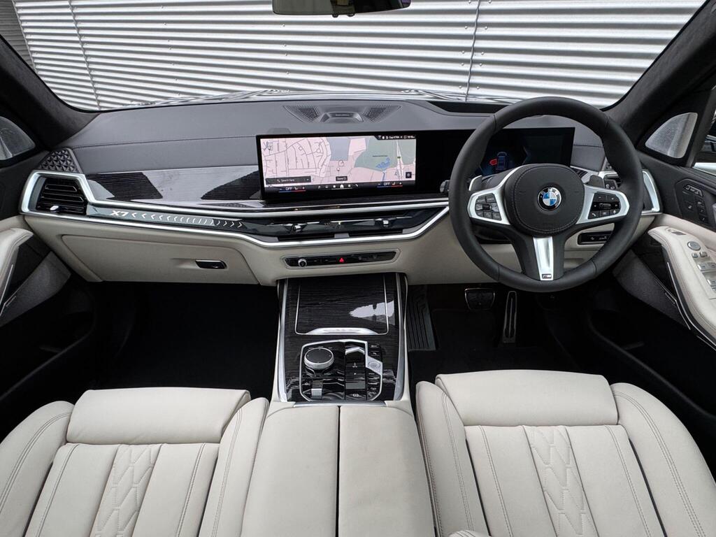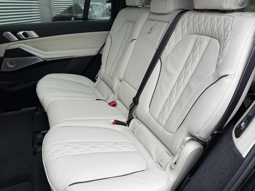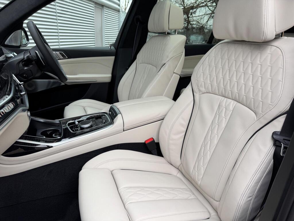 BMW X7 3.0 40d MHT M Sport Auto xDrive Panoramic Sunroof на 22-дюймовых дисках цвета «черный как смоль», пакет M Sport Pro, решетка радиатора, солнцезащитные стекла и ассистент вождения Professional, расширенная отделка салона кожей Merino BMW Individual цвета «слоновая кость», аудиосистема Harman Kardon Surround Sound, система помощи при парковке Attentiveness Assistant, круиз-контроль, ассистент парковки Pro, автоматический кондиционер с четырехзонным управлением, подогрев передних сидений, рулевое колесо M, двери с доводчиками.