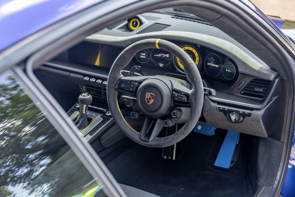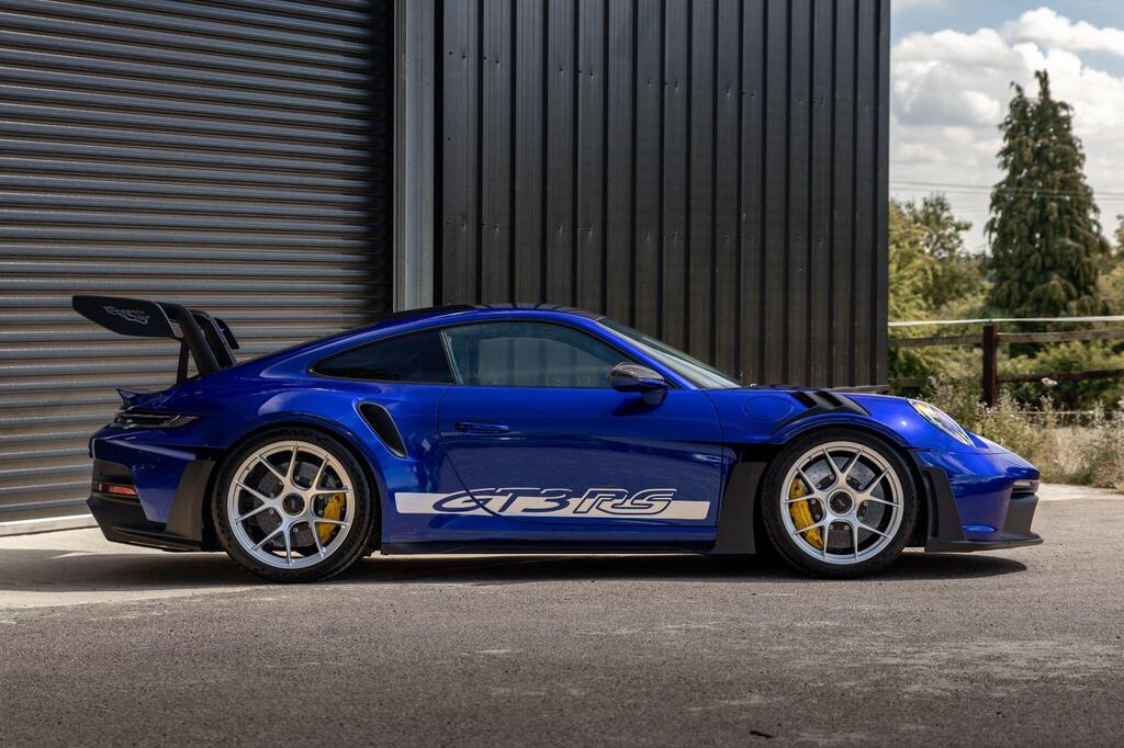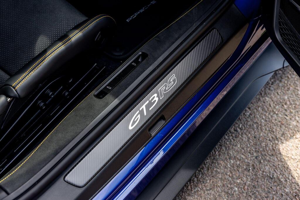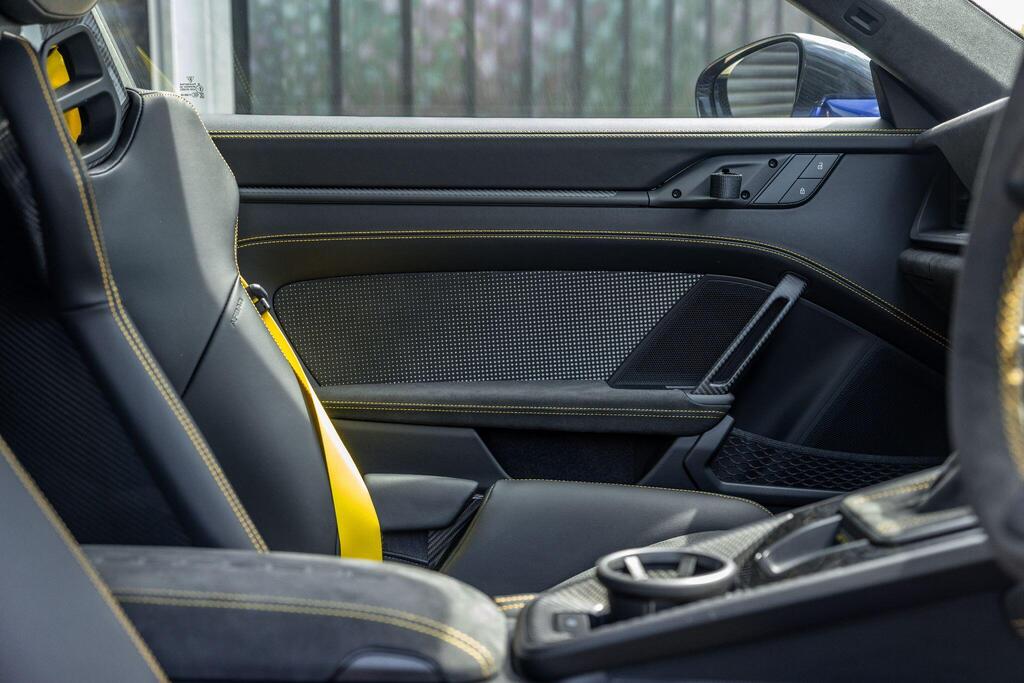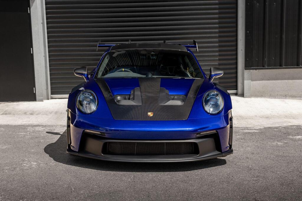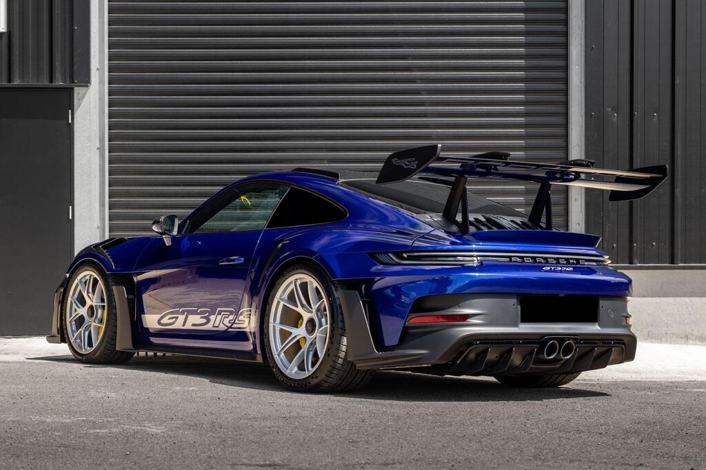 Porsche 911 4.0 992 GT3 RS PDK на 20/21-дюймовых кованых магниевых облегченных дисках GT3 RS серебристого цвета, керамические композитные тормоза Porsche (PCCB), система подъема передней оси, система динамического освещения Porsche Dynamic Light System Plus, аудиосистема BOSE Surround Sound, камера заднего вида, пакет отделки салона Weissach, круиз-контроль, спортивные сиденья-ковши, спортивная подвеска Porsche Active Suspension Management (PASM), спортивная выхлопная система черного цвета, двухзонный автоматический климат-контроль.