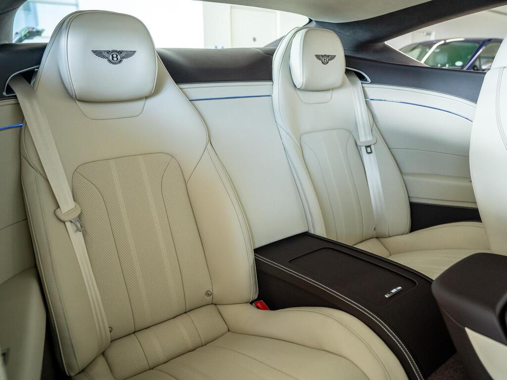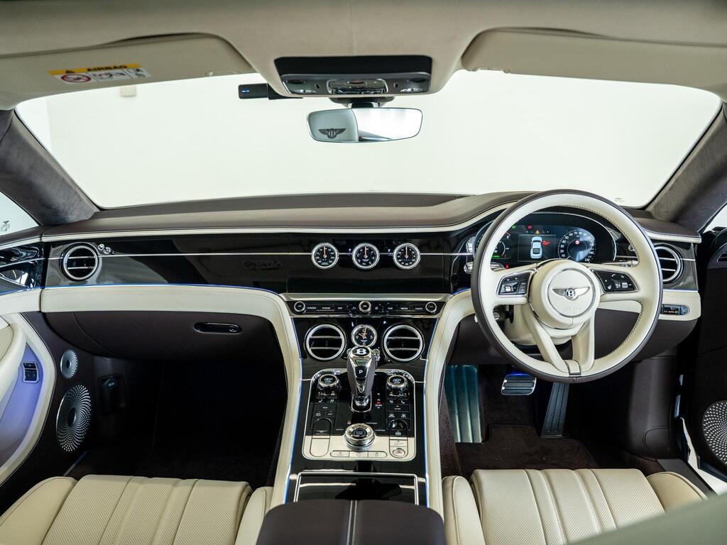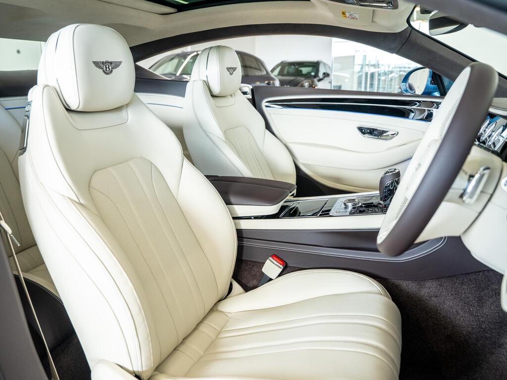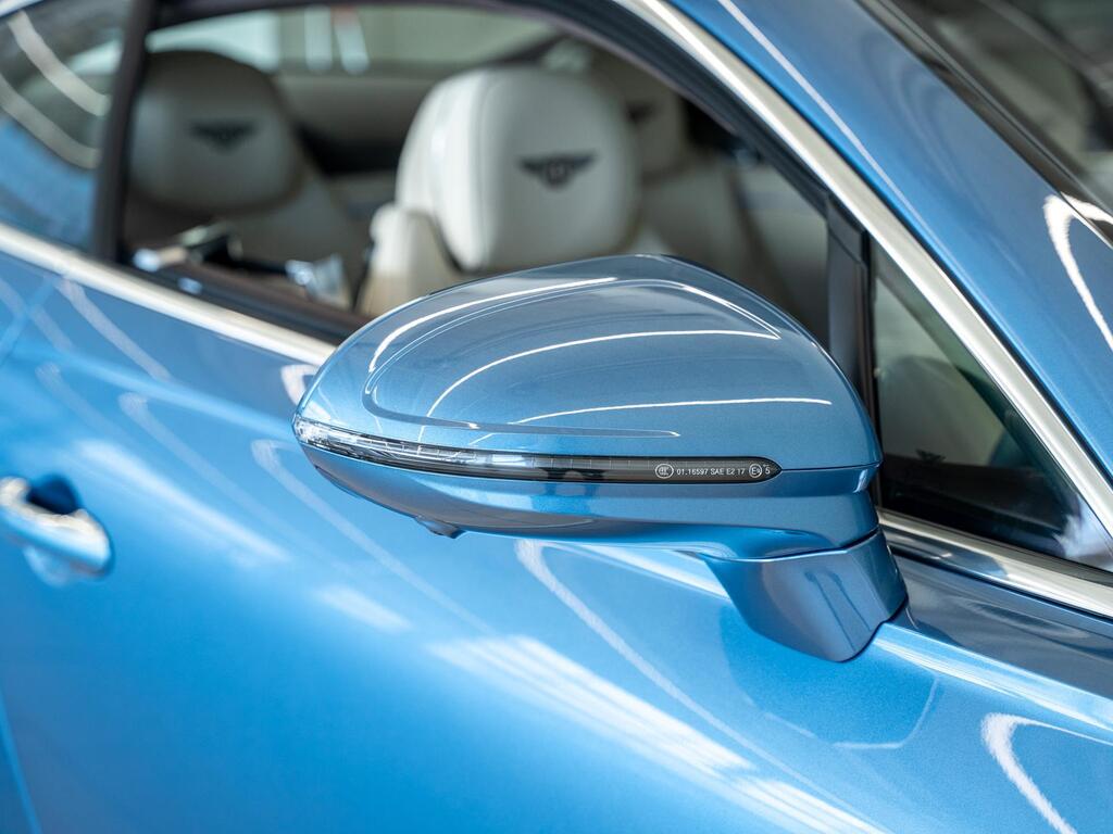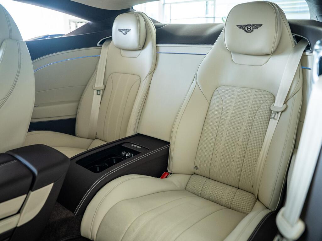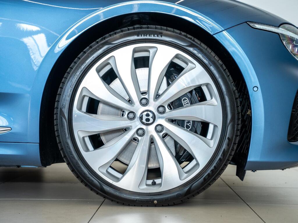 Bentley Continental 4.0 V8 High-Performance 25.9kWh GT Panoramic Sunroof на 22-дюймовых легкосплавных дисках — десятиспицевые — серебристого цвета с полированной обработкой, Bang and Olufsen для Bentley, вращающийся дисплей Bentley, передняя камера Bentley Drive Vision, комфортная комплектация передних сидений, рулевое колесо — трехспицевое двухцветное с кожаной отделкой и подогревом.