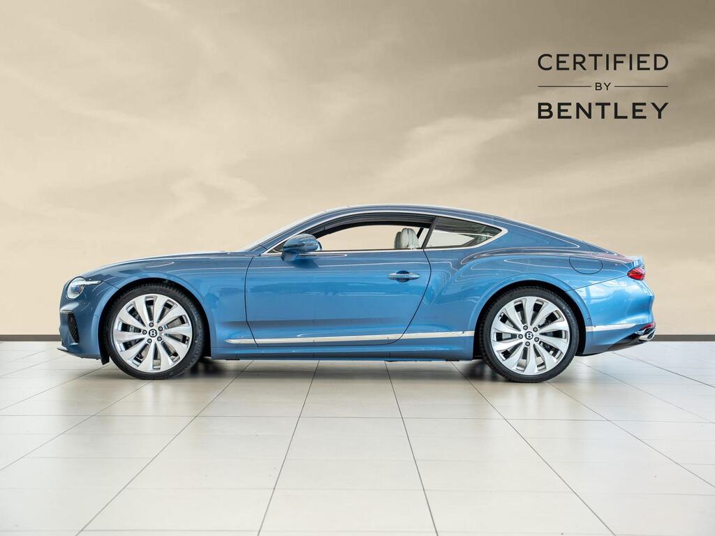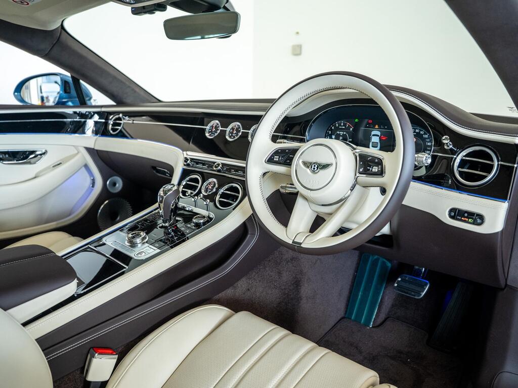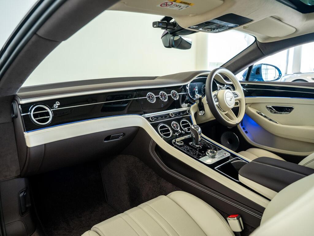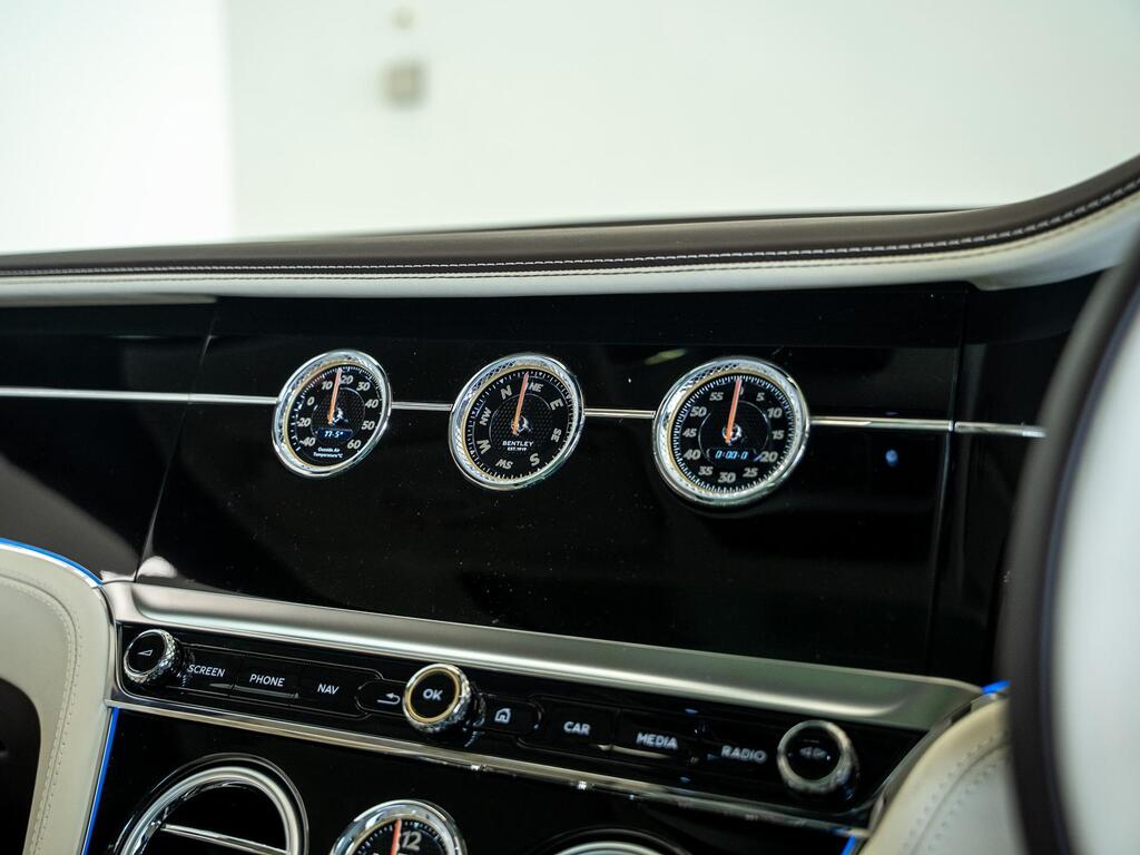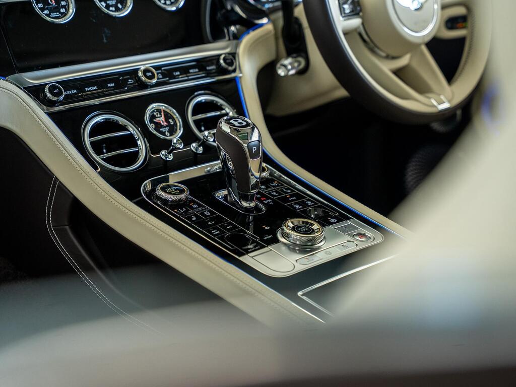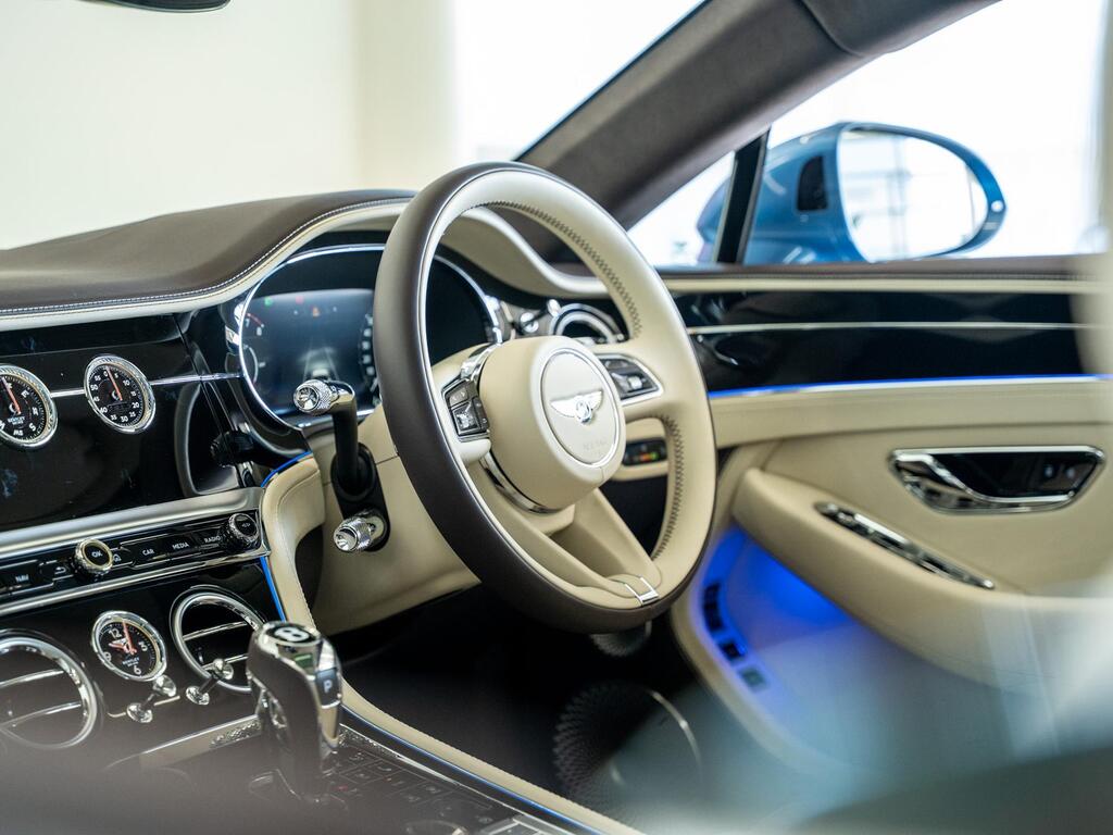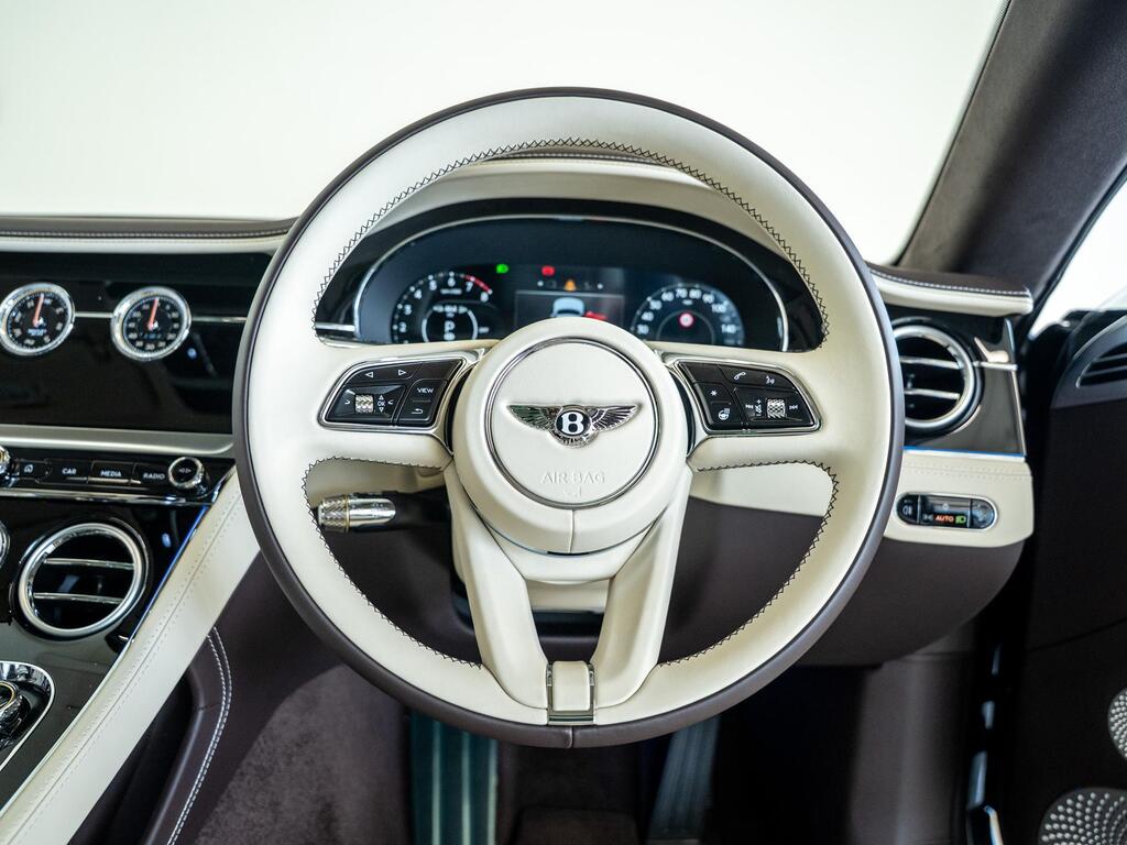 Bentley Continental 4.0 V8 High-Performance 25.9kWh GT Panoramic Sunroof на 22-дюймовых легкосплавных дисках — десятиспицевые — серебристого цвета с полированной обработкой, Bang and Olufsen для Bentley, вращающийся дисплей Bentley, передняя камера Bentley Drive Vision, комфортная комплектация передних сидений, рулевое колесо — трехспицевое двухцветное с кожаной отделкой и подогревом.