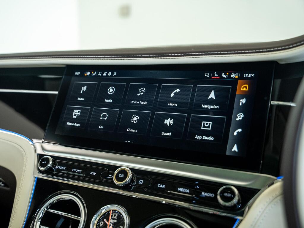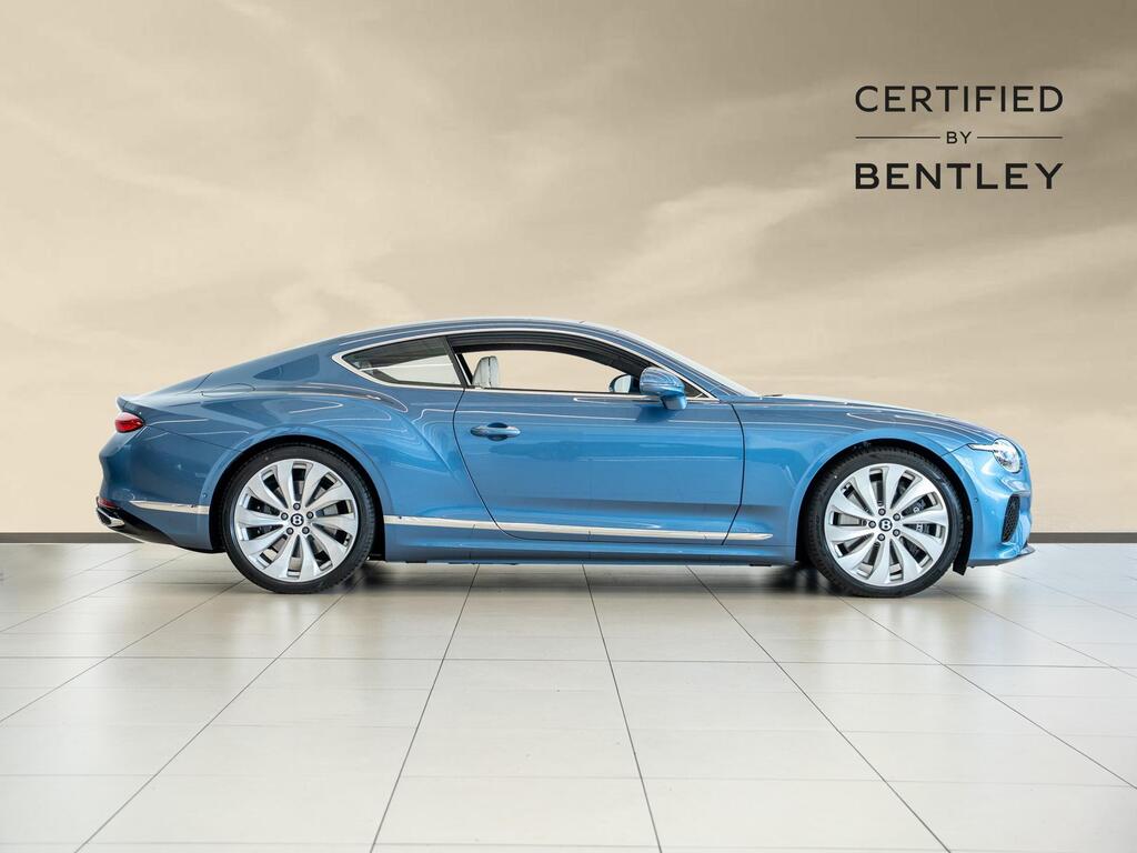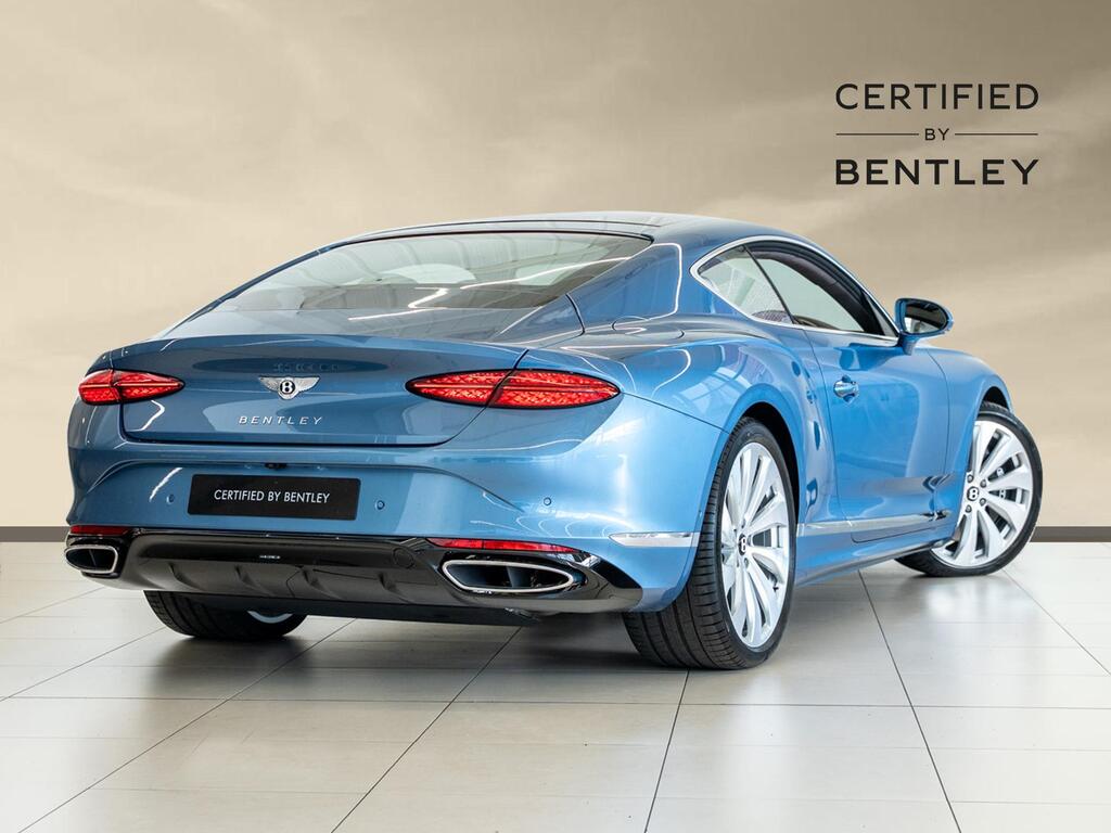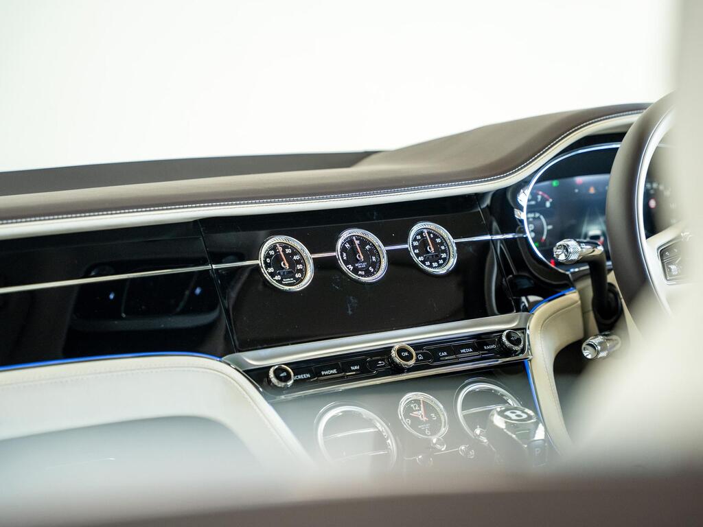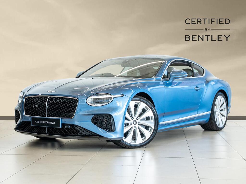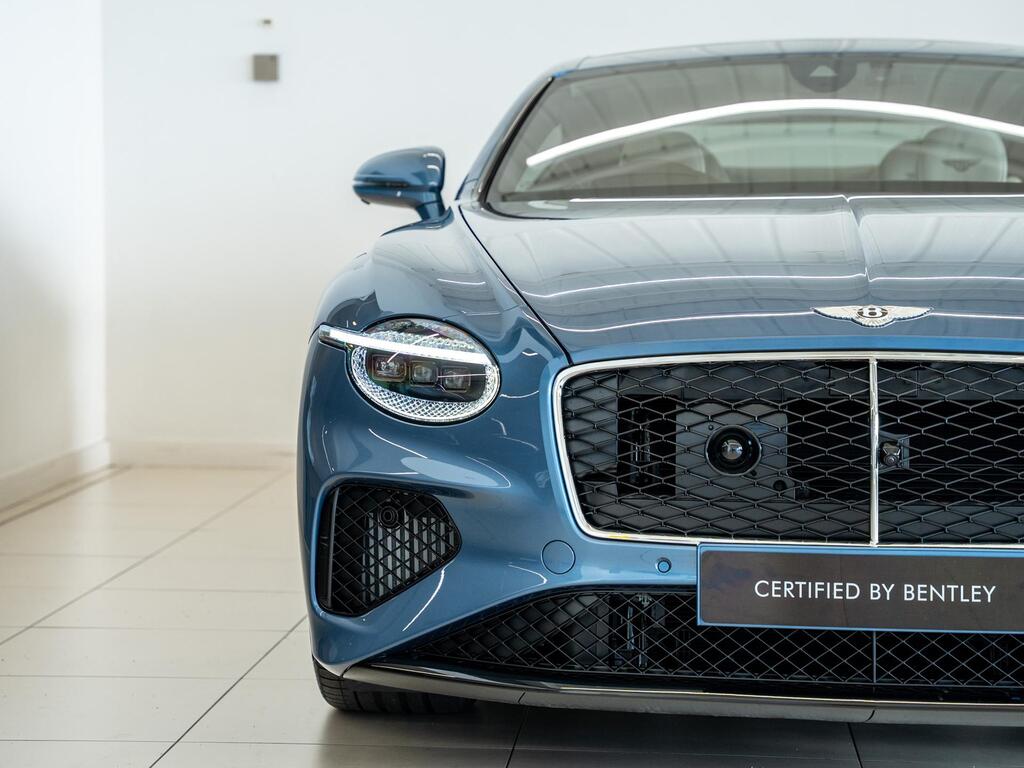 Bentley Continental 4.0 V8 High-Performance 25.9kWh GT Panoramic Sunroof на 22-дюймовых легкосплавных дисках — десятиспицевые — серебристого цвета с полированной обработкой, Bang and Olufsen для Bentley, вращающийся дисплей Bentley, передняя камера Bentley Drive Vision, комфортная комплектация передних сидений, рулевое колесо — трехспицевое двухцветное с кожаной отделкой и подогревом.