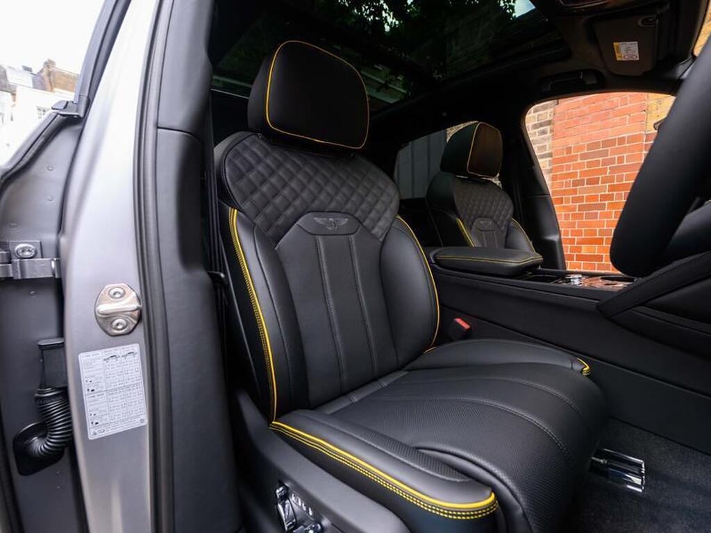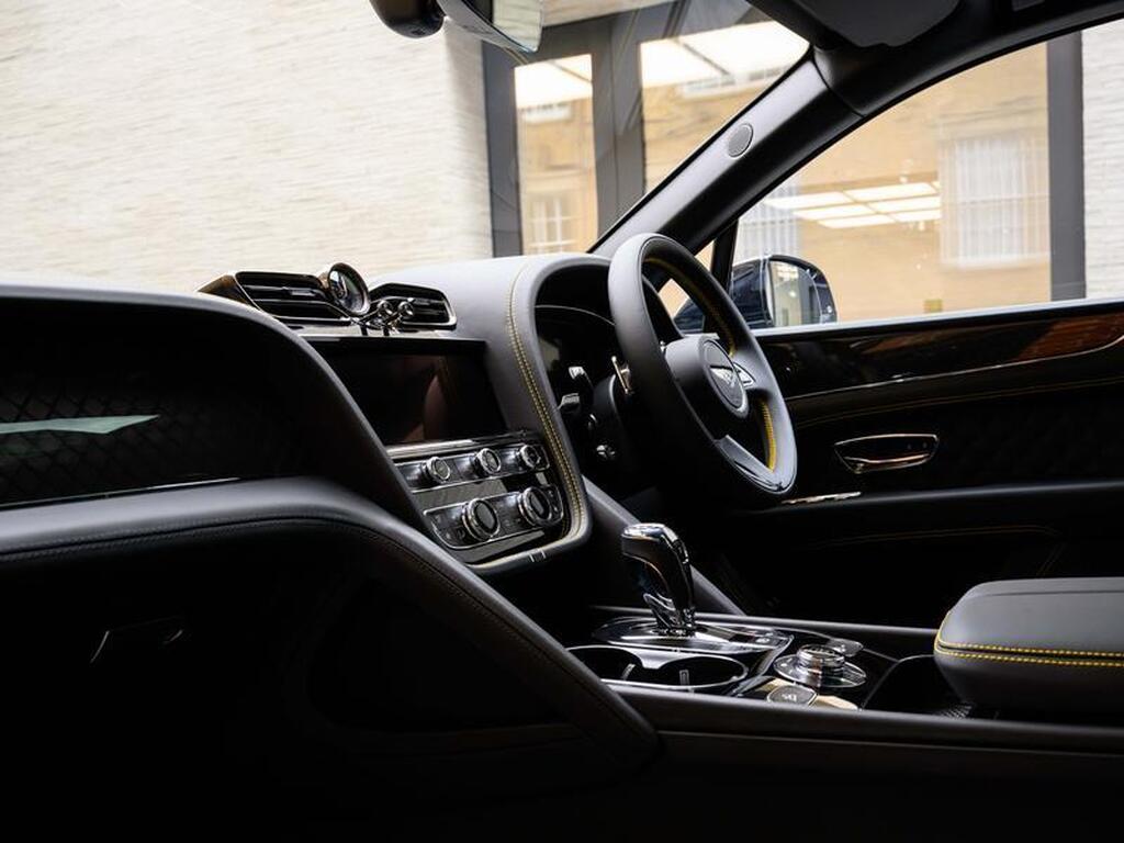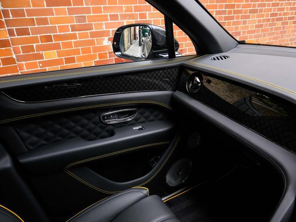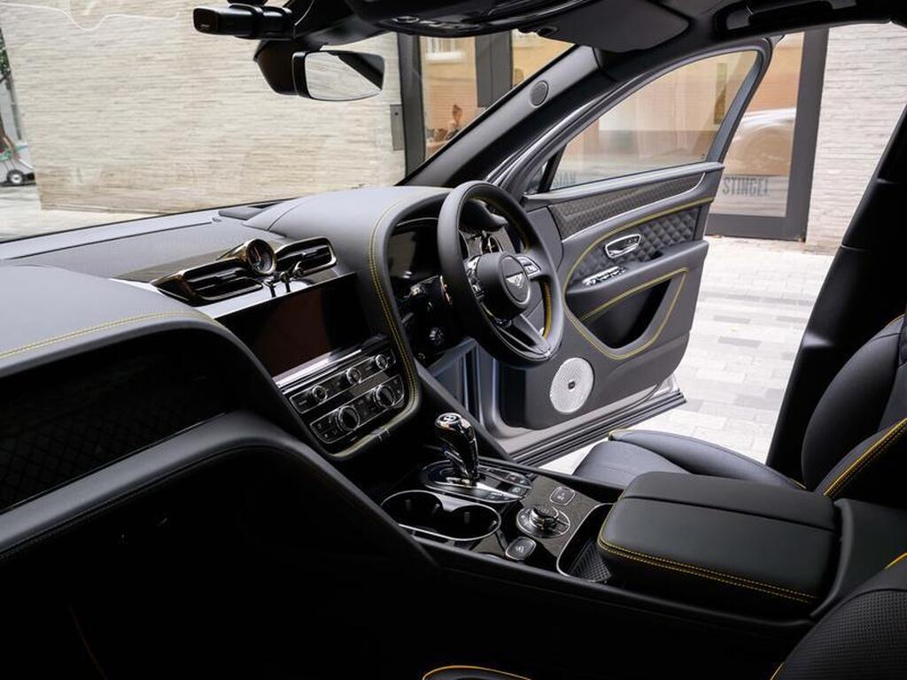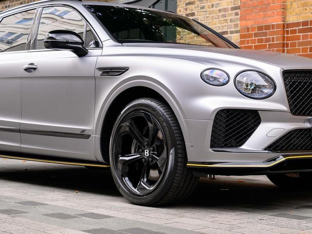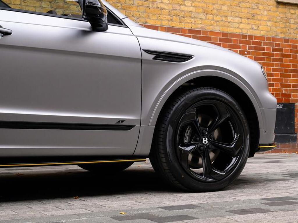 Bentley Bentayga 4.0 V8 S Black Edition Auto 4WD Panoramic Sunroof на 22-дюймовых легкосплавных дисках, комплектация Touring, зарядное устройство для аккумулятора - адаптер для Великобритании, переднее акустическое ИК-обогрев лобового стекла, отделка салона Mulliner - Satin, полностью кожаный салон, акустическая система Naim For Bentley, 3D-система кругового обзора, самовыравнивающаяся эмблема на колесах - от Mulliner, адаптивный круиз-контроль с функцией удержания полосы движения, обогрев рулевого колеса, подогрев и вентиляция сидений.