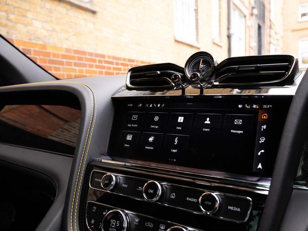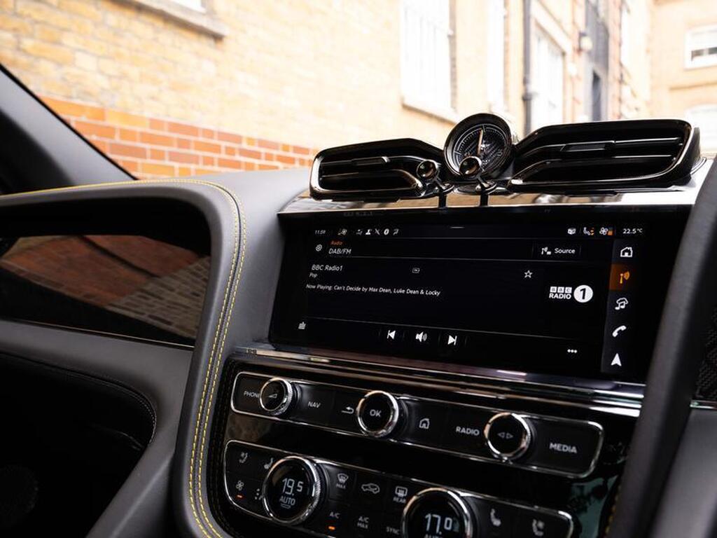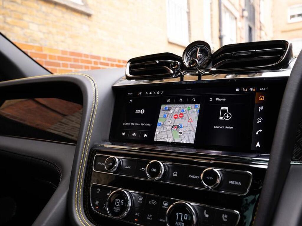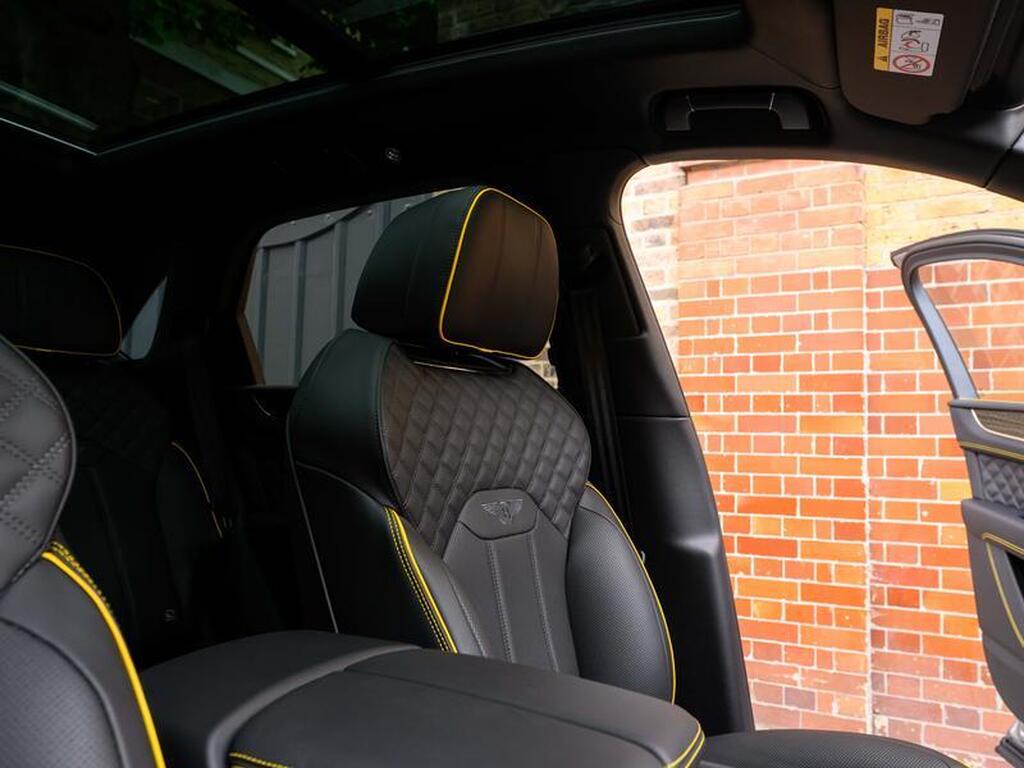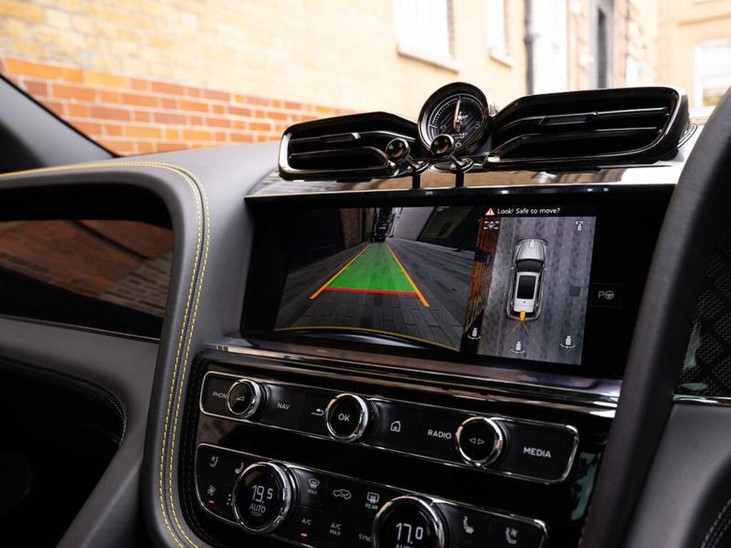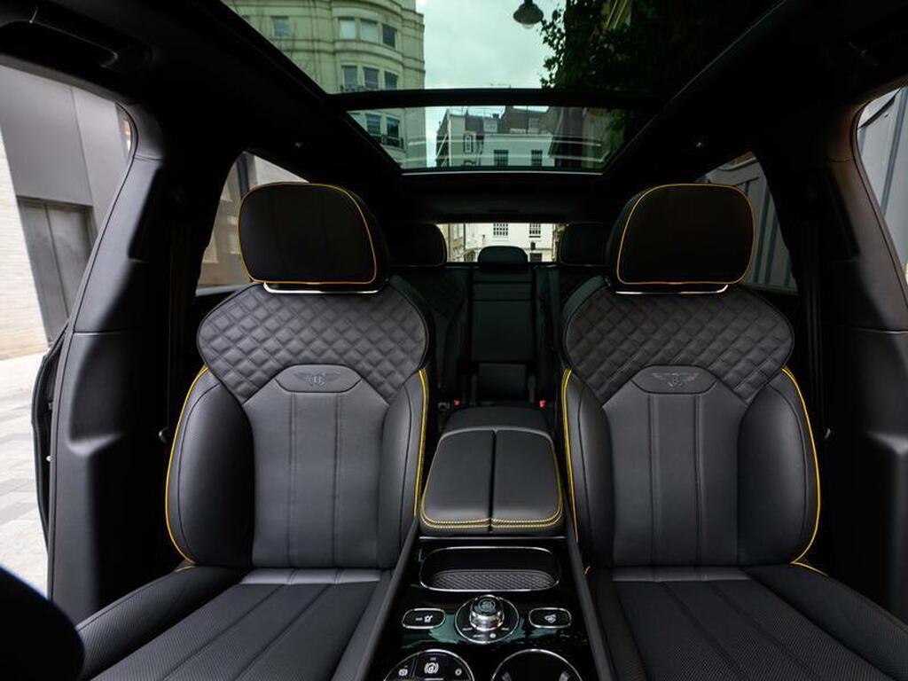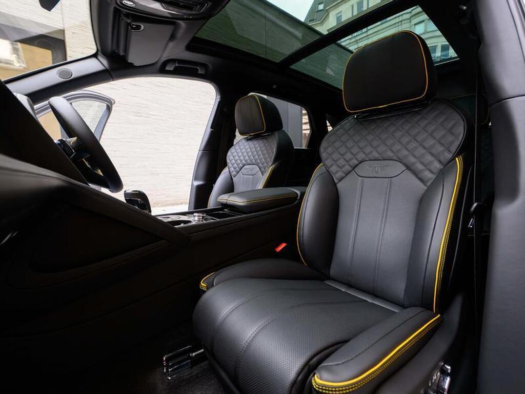 Bentley Bentayga 4.0 V8 S Black Edition Auto 4WD Panoramic Sunroof на 22-дюймовых легкосплавных дисках, комплектация Touring, зарядное устройство для аккумулятора - адаптер для Великобритании, переднее акустическое ИК-обогрев лобового стекла, отделка салона Mulliner - Satin, полностью кожаный салон, акустическая система Naim For Bentley, 3D-система кругового обзора, самовыравнивающаяся эмблема на колесах - от Mulliner, адаптивный круиз-контроль с функцией удержания полосы движения, обогрев рулевого колеса, подогрев и вентиляция сидений.