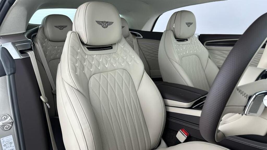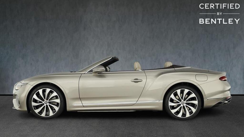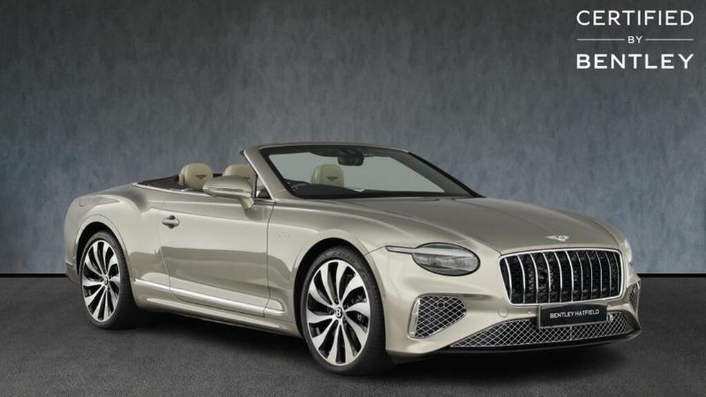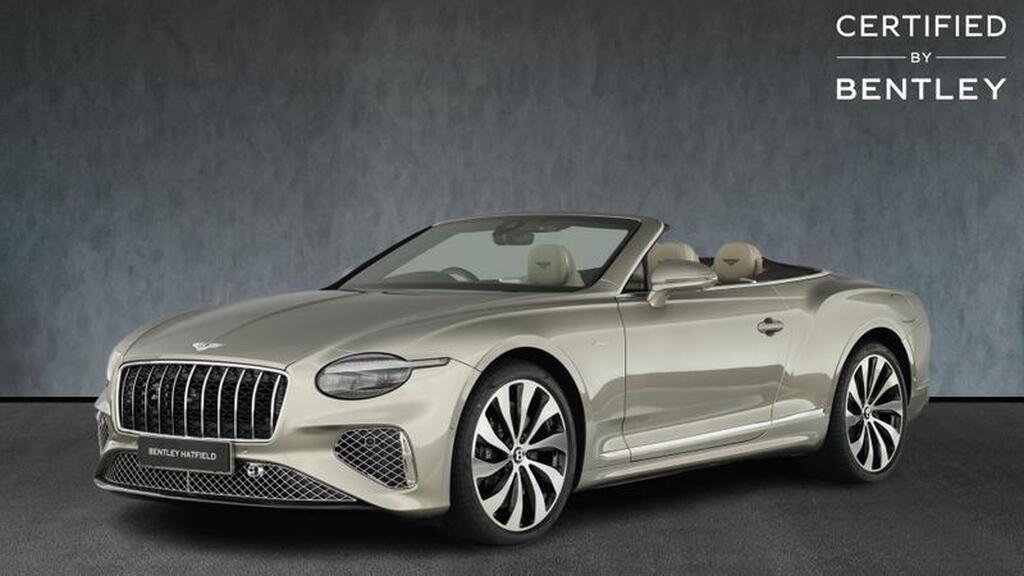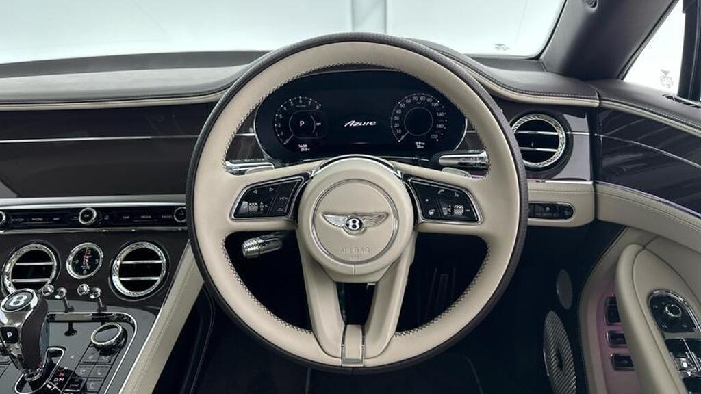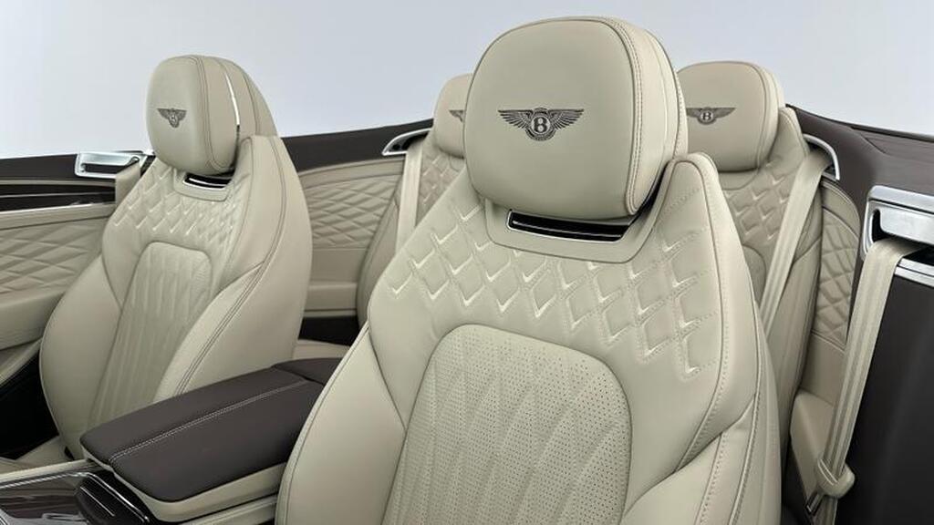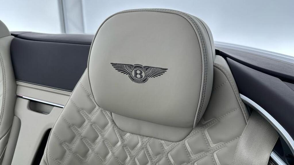 Bentley Continental 4.0 V8 High-Performance 25.9kWh GTC Azure на 22-дюймовых десятиспицевых дисках, окрашенные в черный цвет и обработанные на станке, самовыравнивающаяся эмблема Bentley, контрастный двухцветный руль с подогревом и кожаной отделкой, хромированная ромбовидная насечка, хромированная тонкая полоса на приборной панели и дверных панелях, логотип Naim for Bentley, вращающийся дисплей Bentley.