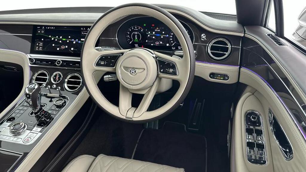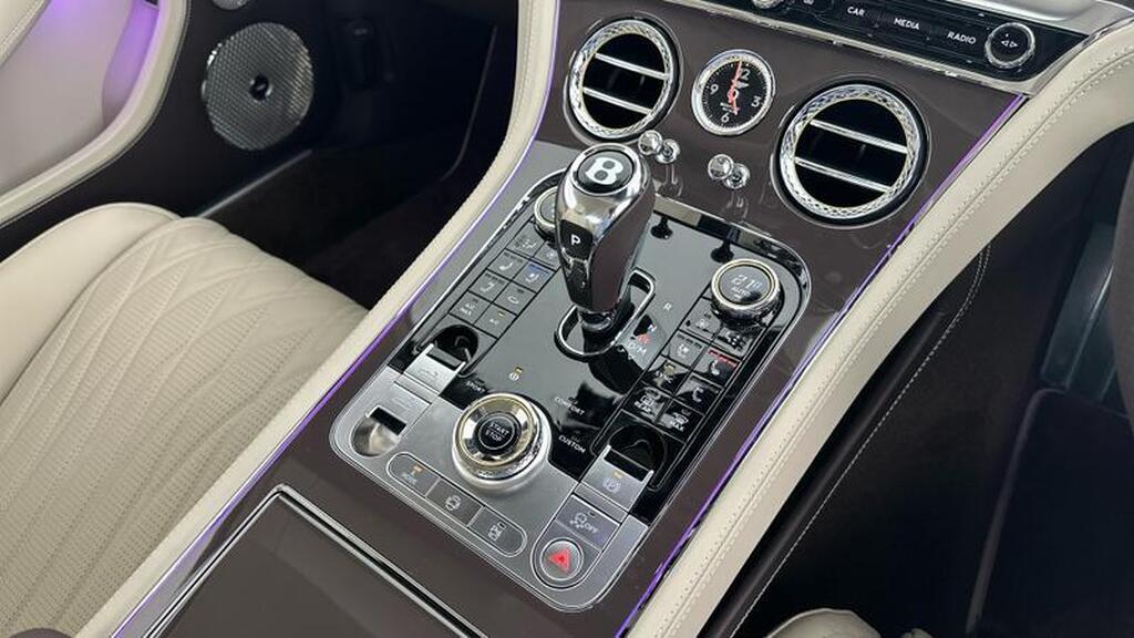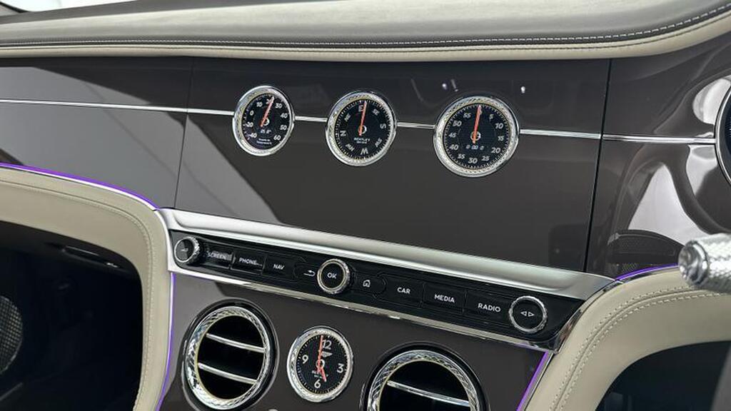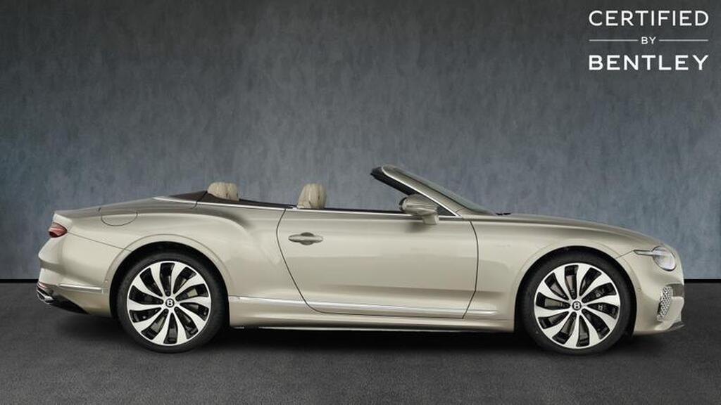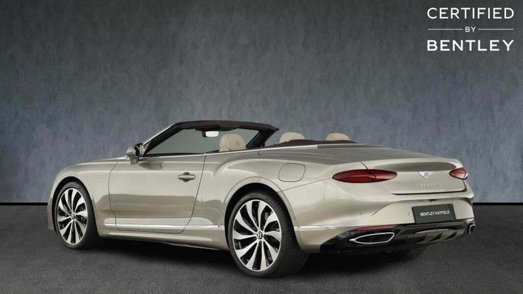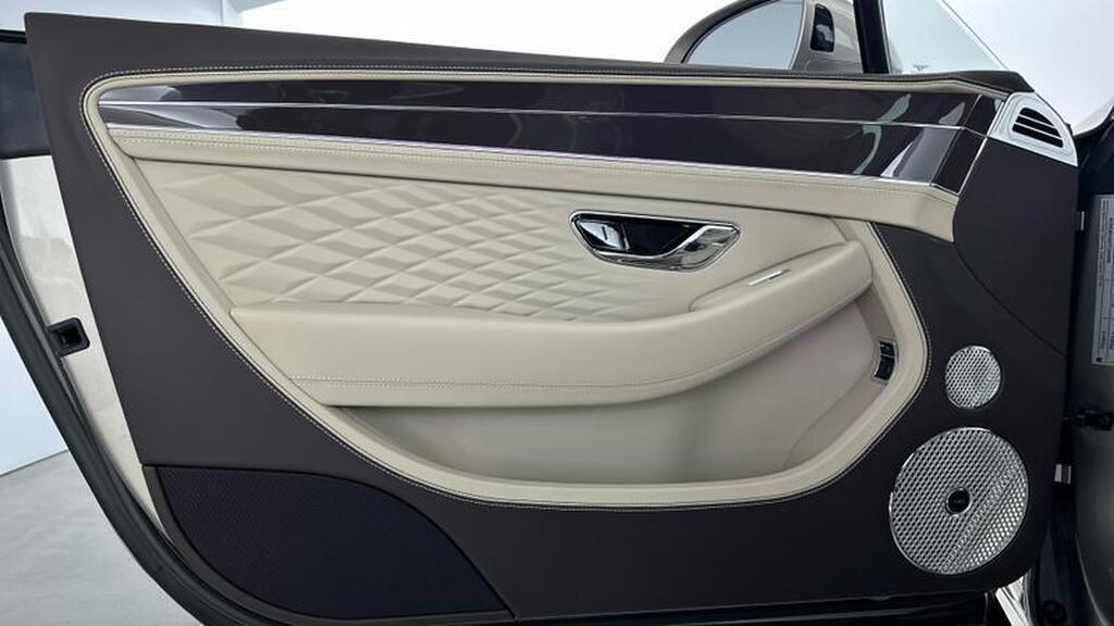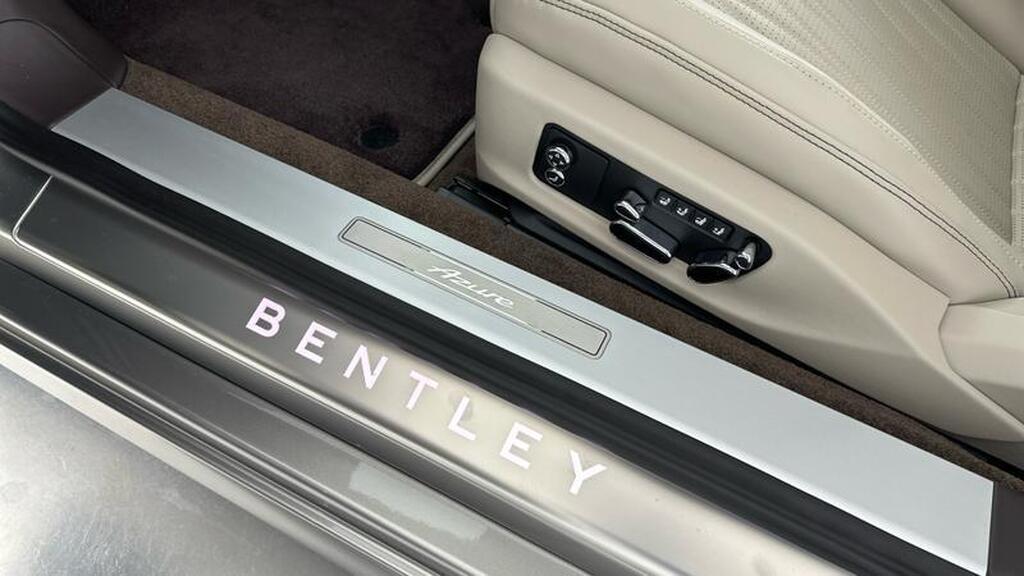 Bentley Continental 4.0 V8 High-Performance 25.9kWh GTC Azure на 22-дюймовых десятиспицевых дисках, окрашенные в черный цвет и обработанные на станке, самовыравнивающаяся эмблема Bentley, контрастный двухцветный руль с подогревом и кожаной отделкой, хромированная ромбовидная насечка, хромированная тонкая полоса на приборной панели и дверных панелях, логотип Naim for Bentley, вращающийся дисплей Bentley.