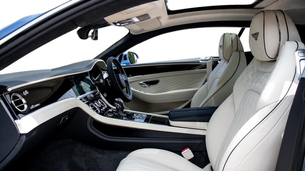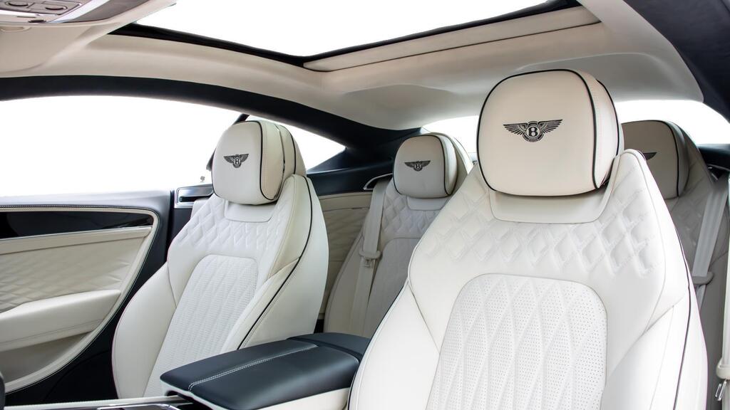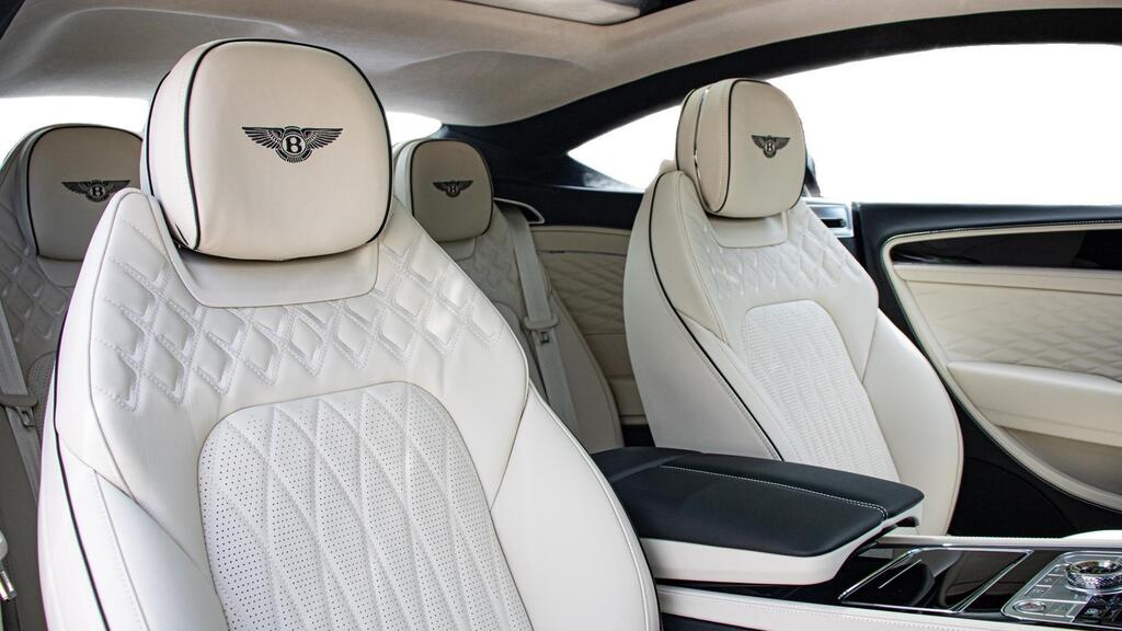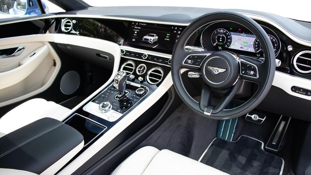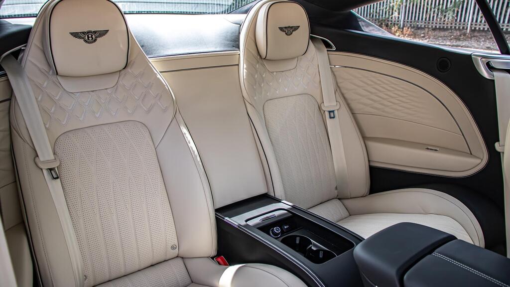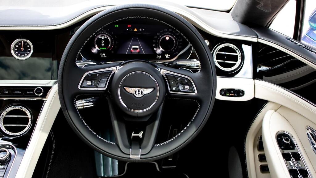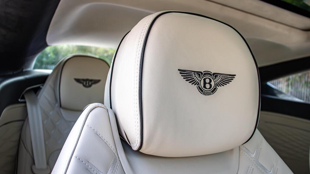 Bentley Continental V8 Hybrid GT Azure Panoramic Sunroof 22-дюймовые легкосплавные диски с десятью спицами, цвет «Металлический пинта» (расширенный диапазон), вращающийся дисплей Bentley, отделка черным рояльным лаком, контрастная строчка, контрастная окантовка сидений, хромированная ромбовидная насечка, обогрев лобового стекла, подсветка «крылья Bentley», обогрев рулевого колеса, контрастная окантовка ковриков, черные тормозные суппорты, крышка маслозаливной горловины Jewel, подсветка салона, обогрев переднего центрального подлокотника, цветовая гамма, подсветка салона, распознавание дорожных знаков, камера кругового обзора, система ночного видения, матричные фары, проекционный дисплей, бесконтактное открывание багажника, подогрев передних сидений, система City Safeguard Plus, спортивные педали.