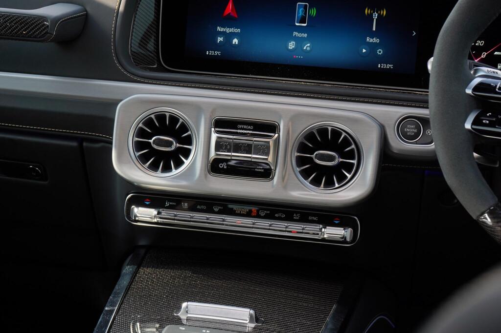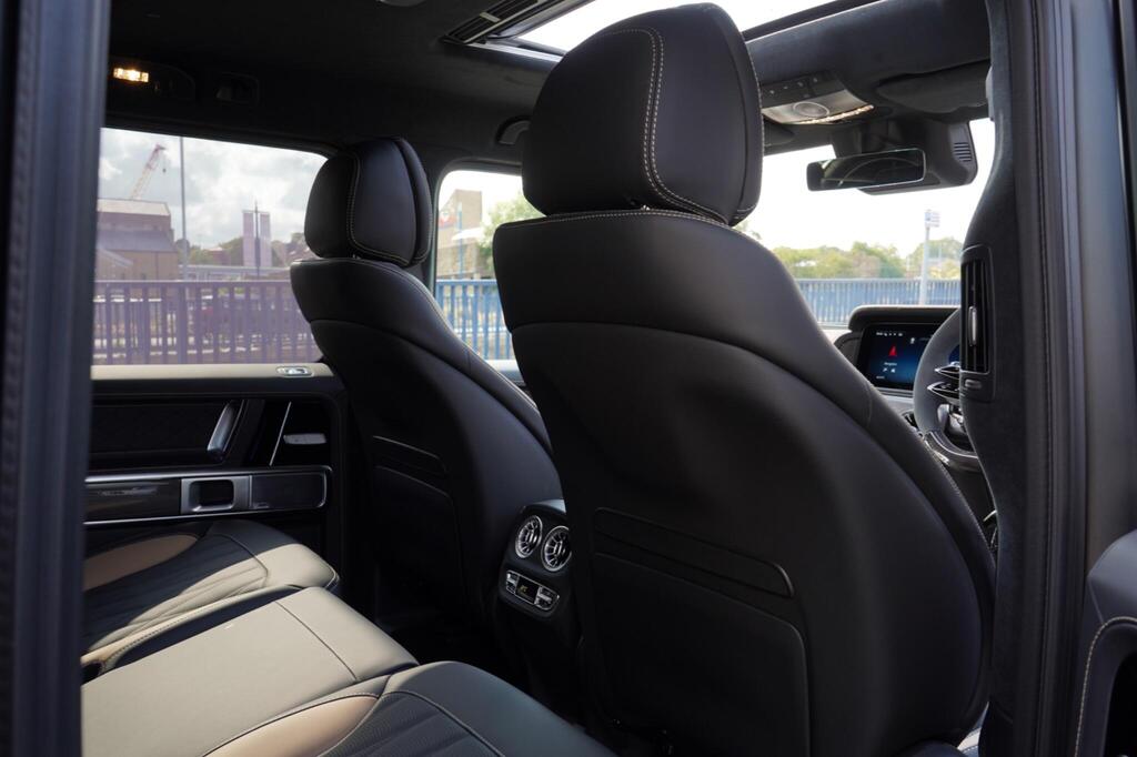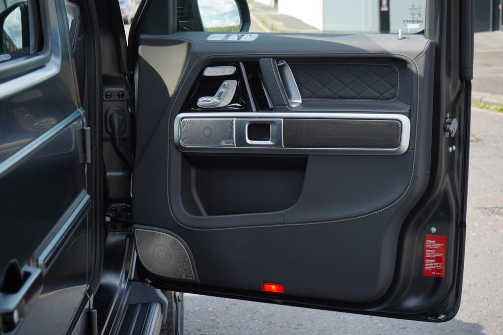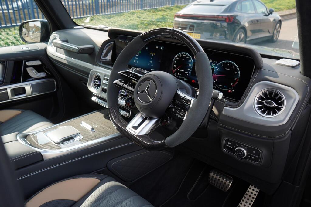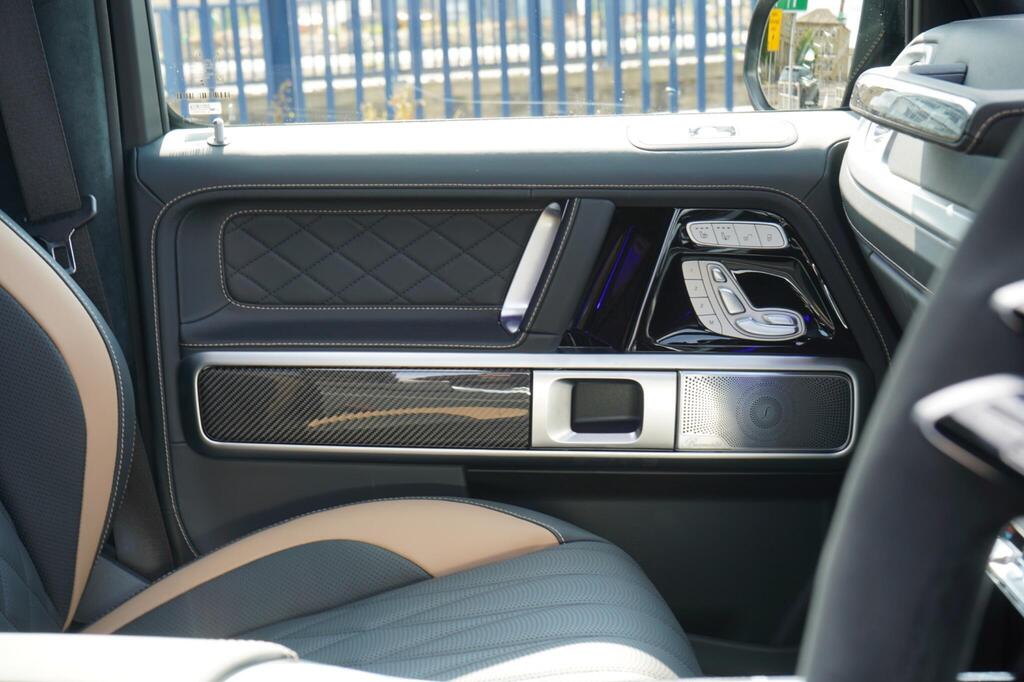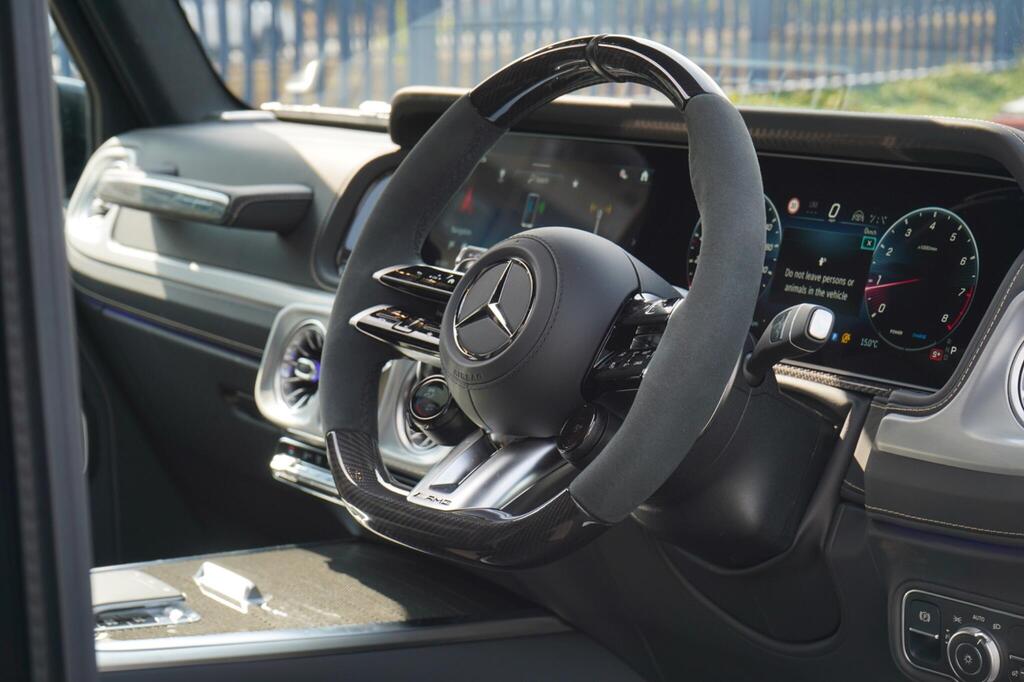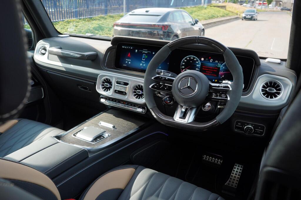 Mercedes-Benz G Class 4.0 G63 V8 BiTurbo MHEV AMG Magno Edition SpdS+9GT 4WD Panoramic Sunroof на 22-дюймовых легкосплавных дисках AMG с коваными перекрестными спицами, окрашенные в матовый черный цвет с глянцевой окантовкой обода, шины 295-40 R 22, рулевое колесо AMG Performance из карбона MICROCUT с 3 спицами, уплощенная нижняя часть, отделка рулевого колеса серебристым хромом с надписью AMG и серебристыми алюминиевыми подрулевыми переключателями, маркировка «12 часов» и сенсорное управление, функция запуска двигателя KEYLESS-GO, передние сиденья с подогревом и электрорегулировкой, задние сиденья с подогревом, рулевое колесо с подогревом, автоматический климат-контроль THERMOTRONIC с тремя зонами и тремя режимами работы: средний, рассеянный и сфокусированный, вентилируемые многоконтурные передние сиденья, активная система контроля слепых зон, активная система помощи при парковке, включая PARKTRONIC, парковочный пакет с камерой кругового обзора 360 градусов, аудиосистема Burmester 3D Surround Sound.