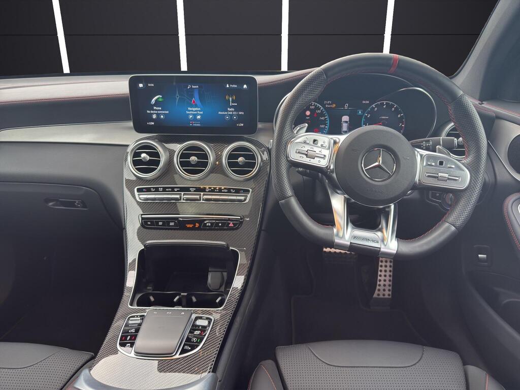Mercedes-Benz GLC43 AMG Premium Plus 3.0 V6 Coupe G-Tronic+ 4MATIC Panoramic Sunroof на 21-дюймовых легкосплавных дисках AMG с 5 сдвоенными спицами, окрашенные в черный цвет с глянцевым покрытием, тормозные суппорты с надписью Mercedes-Benz и перфорированными передними тормозными дисками, система запуска двигателя KEYLESS-GO, передние сиденья с подогревом, руль с подогревом, многофункциональный спортивный руль из черной кожи Nappa с уплощенной нижней частью, система кругового обзора 360 градусов, система помощи водителю ATTENTION Assist, активная система помощи при парковке, включая PARKTRONIC, система распознавания дорожных знаков.