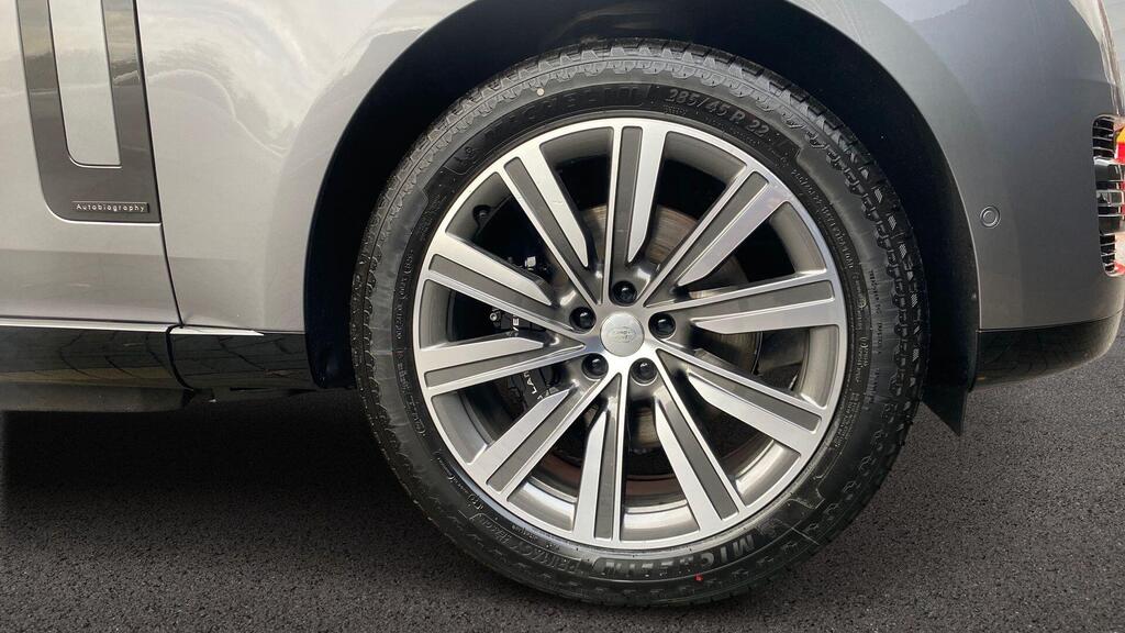 Land Rover Range Rover 3.0 P460e 38.2kWh Autobiography Panoramic Sunroof на 22-дюймовых легкосплавных дисках — 1073 Style Diamond Turned — глянцевая темно-серая контрастная отделка, черные тормозные суппорты, 24-позиционные передние сиденья с подогревом и вентиляцией, электропривод массажа, задние сиденья Exclusive Class, четырехзонный климат-контроль, потолок — SV Bespoke Duo Tone Ebony-Perlino Leather, доводчик дверей, рулевое колесо с подогревом, 3D-камера кругового обзора, адаптивный круиз-контроль с функцией помощи при рулевом управлении, система контроля слепых зон, система помощи при парковке, Apple CarPlay, аудиосистема Meridian Signature.