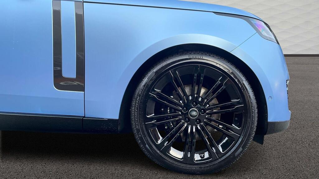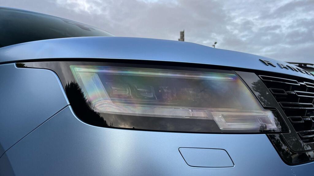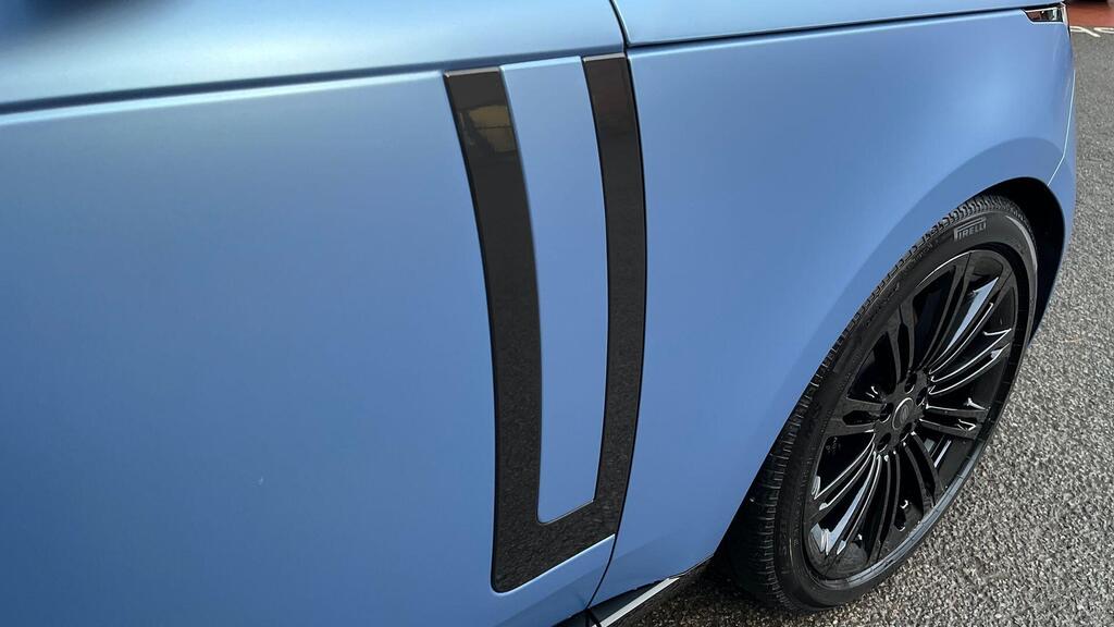 Land Rover Range Rover 3.0 D300 MHEV Edition Panoramic Sunroof на 23-дюймовых легкосплавных дисках - стиль 1075 - глянцево-черный, Topaz Satin Sky Blue PPF, черные тормозные суппорты, 20-позиционные передние сиденья с подогревом и электроприводом наклона спинки, подогрев задних сидений, доводчик дверей, подогрев рулевого колеса, трехзонный климат-контроль, 3D-камера кругового обзора, адаптивный круиз-контроль с функцией помощи при рулевом управлении, система контроля слепых зон, система помощи при парковке, система распознавания дорожных знаков и адаптивный ограничитель скорости, аудиосистема Meridian, Apple CarPlay.