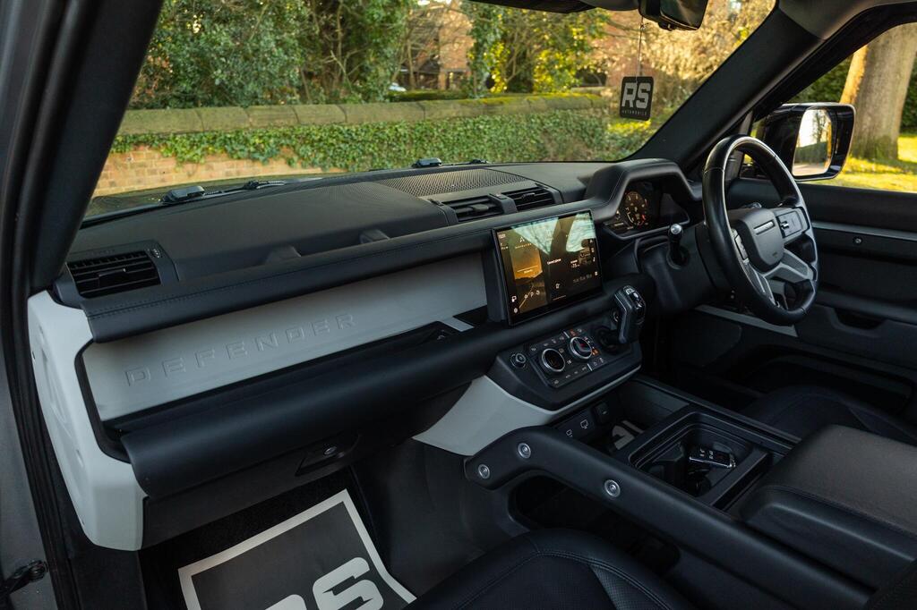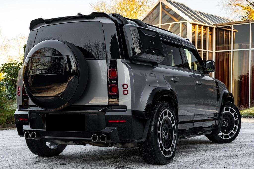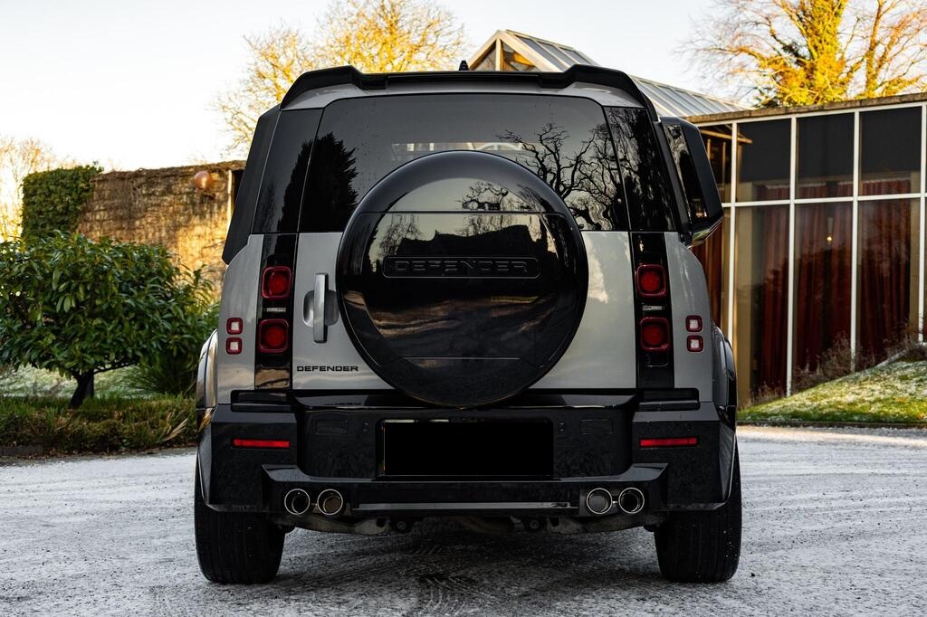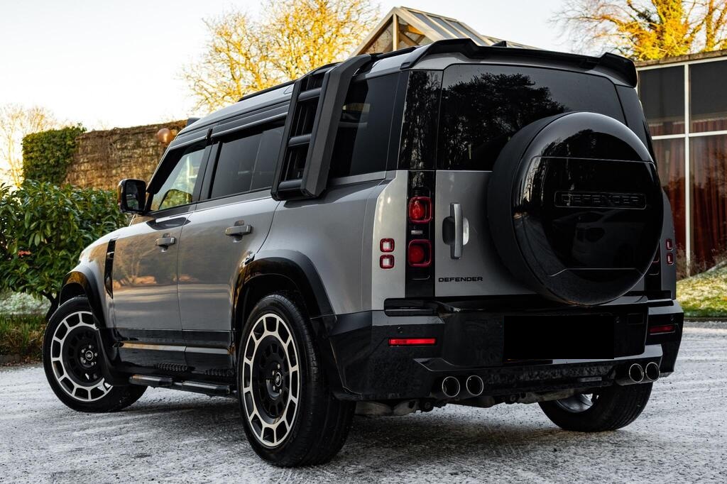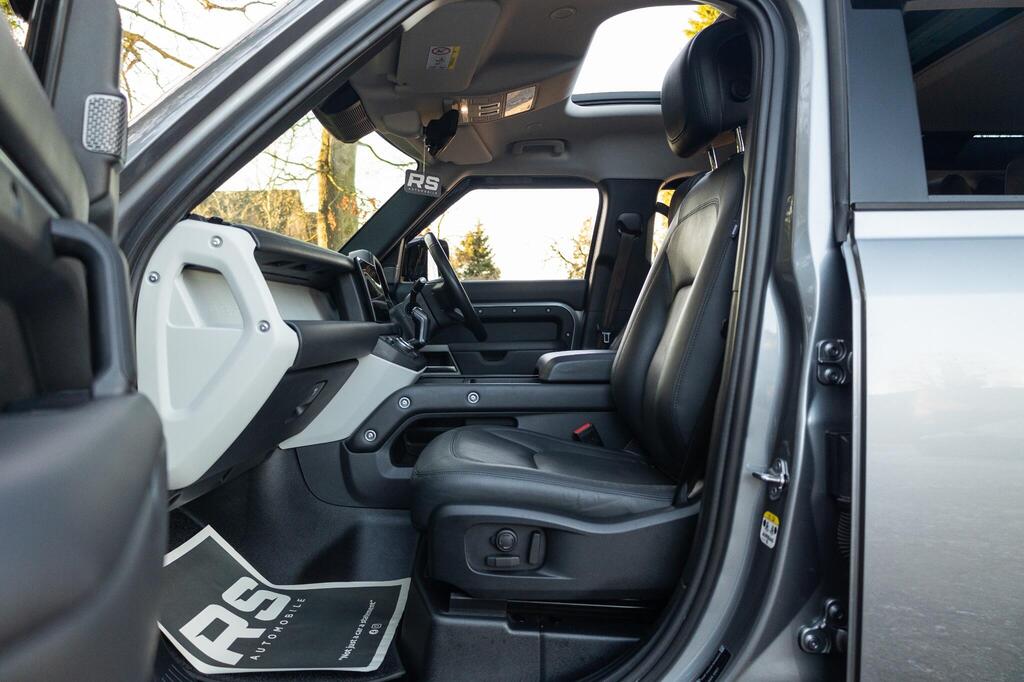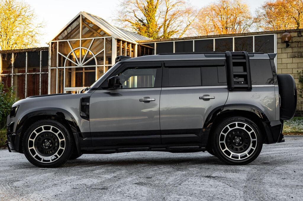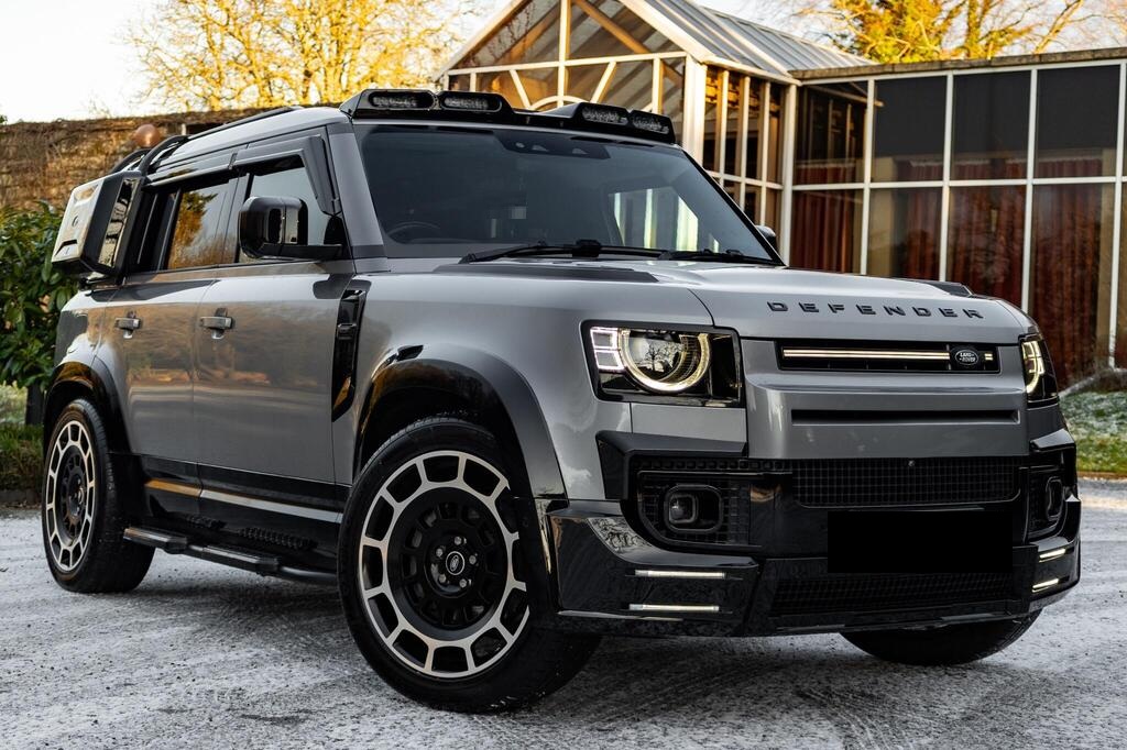 Land Rover Defender 110 3.0 D300 MHEV X-Dynamic HSE Panoramic Sunroof на 22-дюймовых легкосплавных дисках - стиль 5098 - 5 спиц - глянцевый серебристый цвет, черная контрастная крыша, расширенный черный пакет экстерьера, электрически выдвижной фаркоп, внедорожные шины, 14-позиционные передние сиденья с подогревом и вентиляцией, электроприводом и памятью, а также 4-позиционными ручными подголовниками, двухзонный автоматический климат-контроль, датчик качества воздуха, пакет для холодного климата, семейный комфортный пакет, обогрев рулевого колеса, кожаный руль, трехзонный климат-контроль с функцией охлаждения задних пассажиров, система помощи при парковке 360 градусов, 3D-камера кругового обзора, адаптивный круиз-контроль, система контроля слепых зон, распознавание дорожных знаков и адаптивный ограничитель скорости, аудиосистема Meridian, Apple CarPlay.